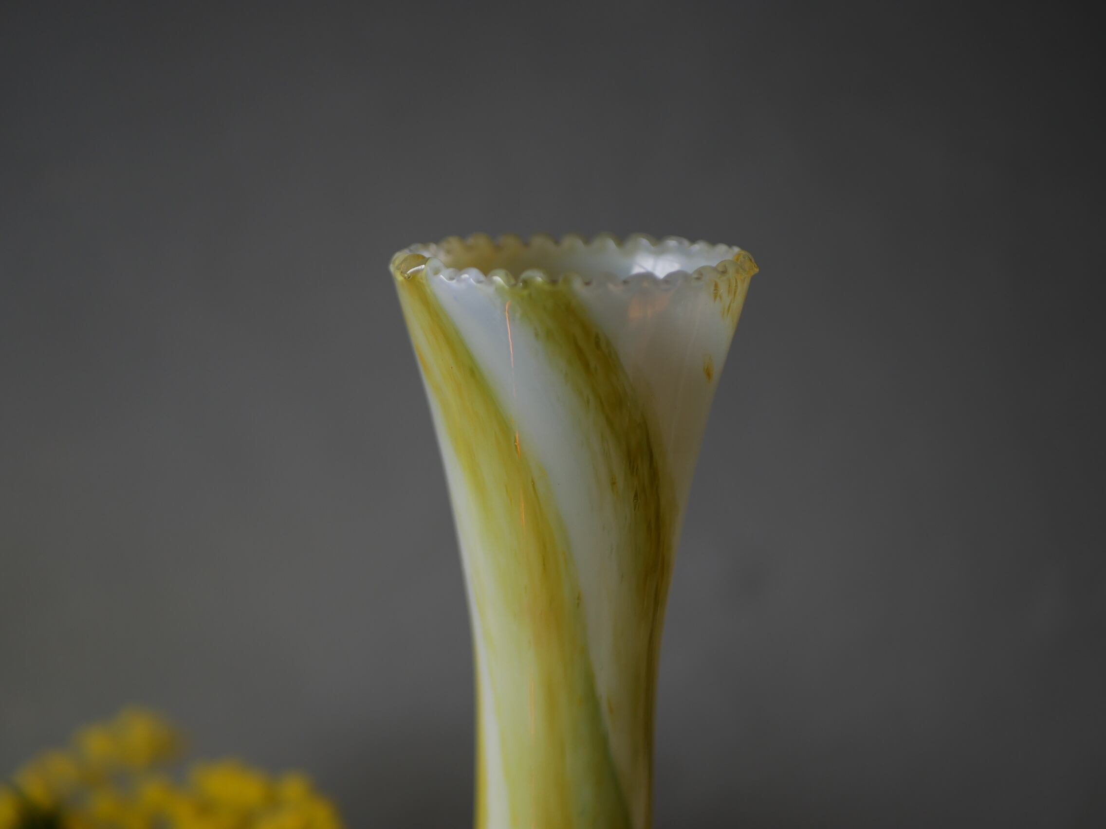マーブルなイエローが美しいオパリンのフラワーベース。
