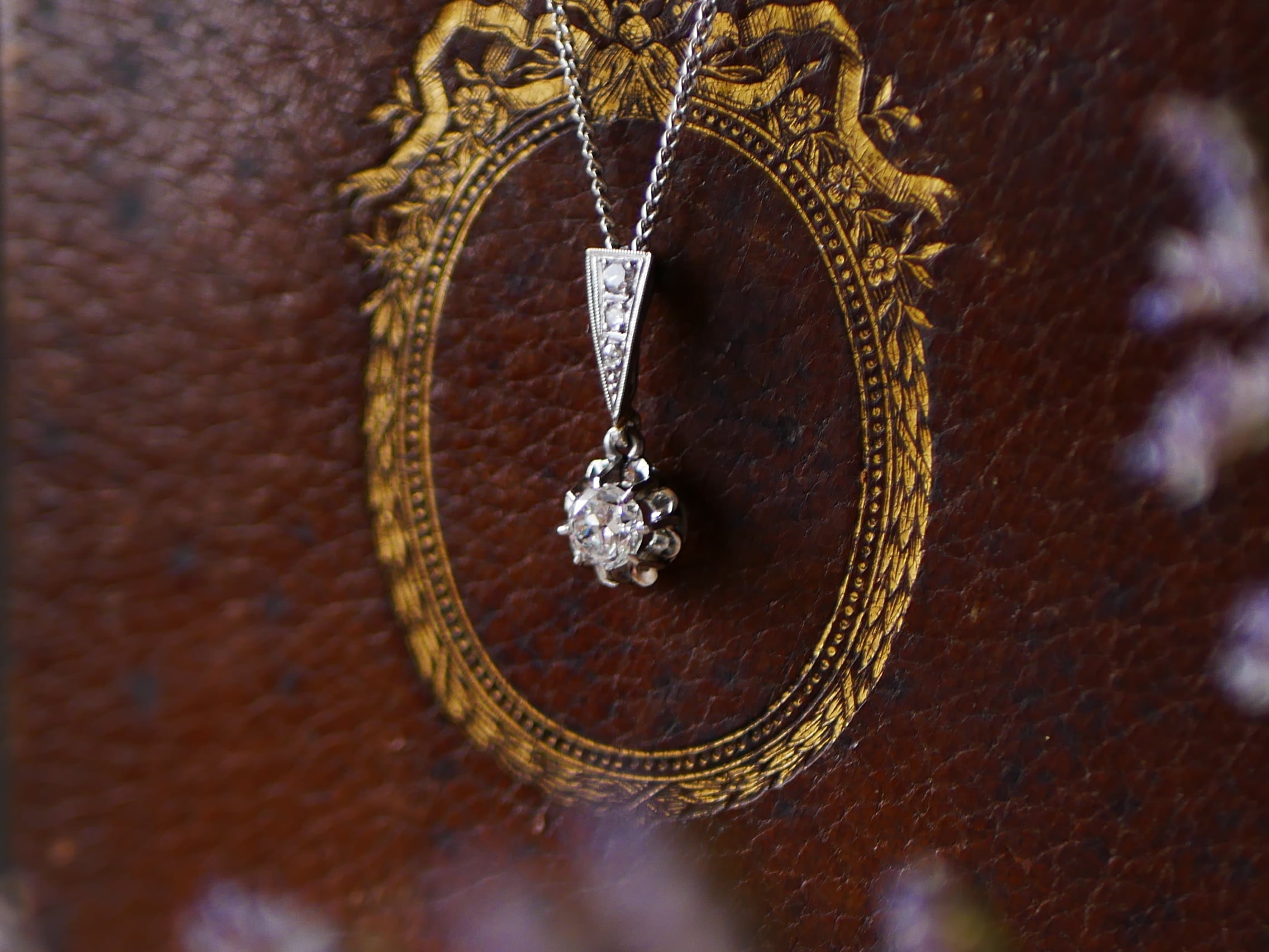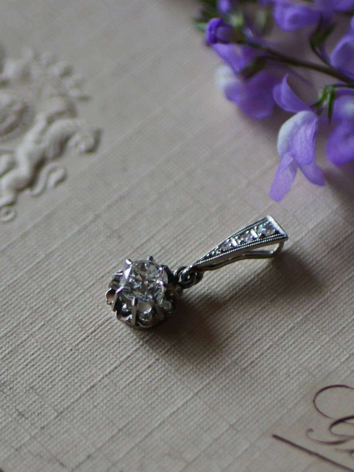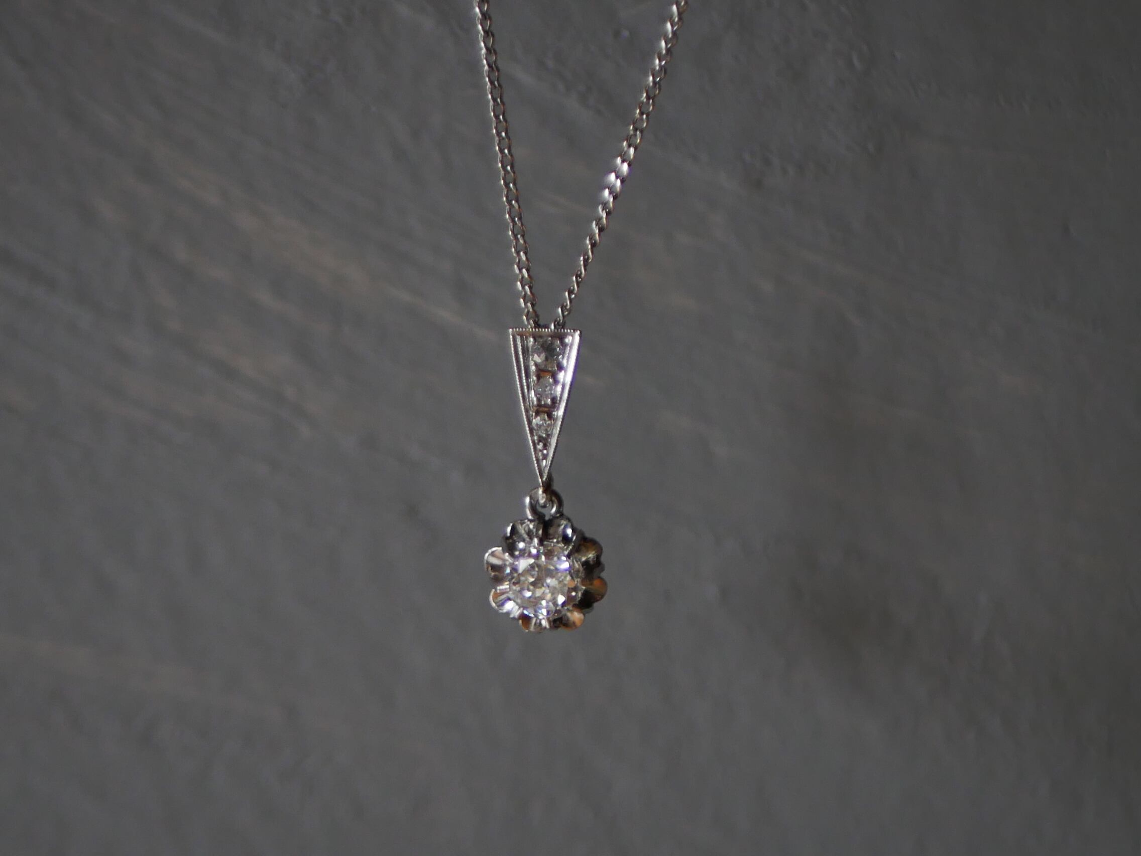 【FN-15】 天然ダイヤモンド K18 ペンダントトップ フランスアンティーク アンティークジュエリー