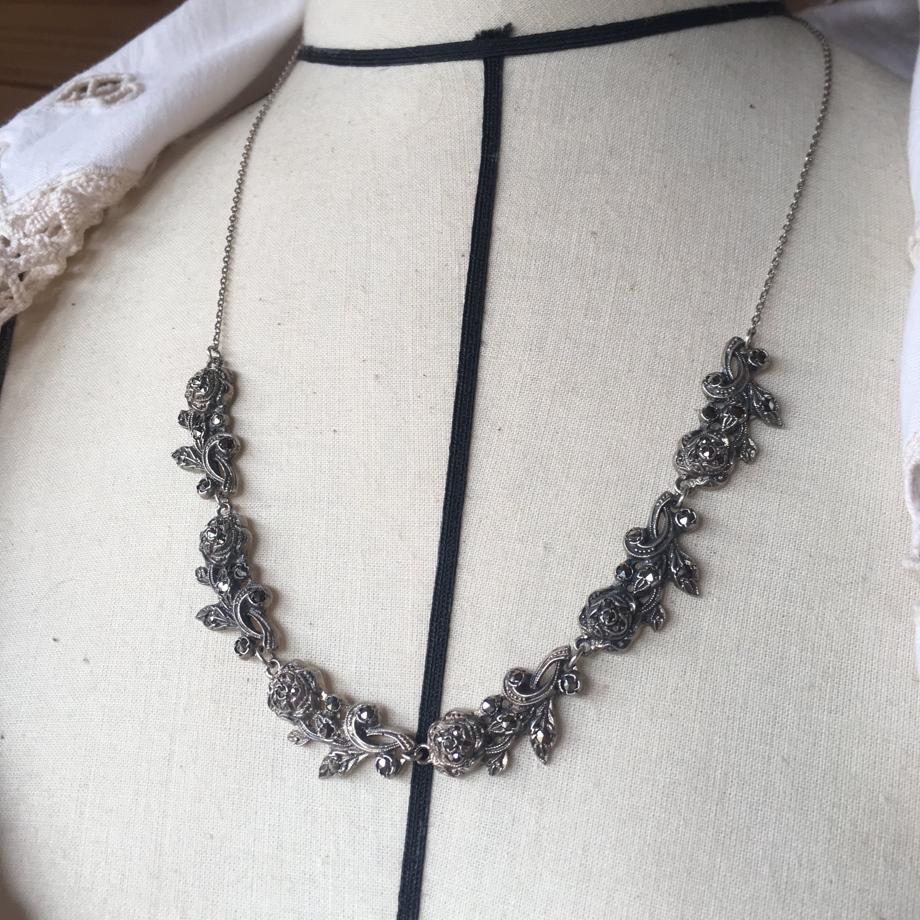 イギリス ヴィンテージ シルバー ネックレス マーカサイト