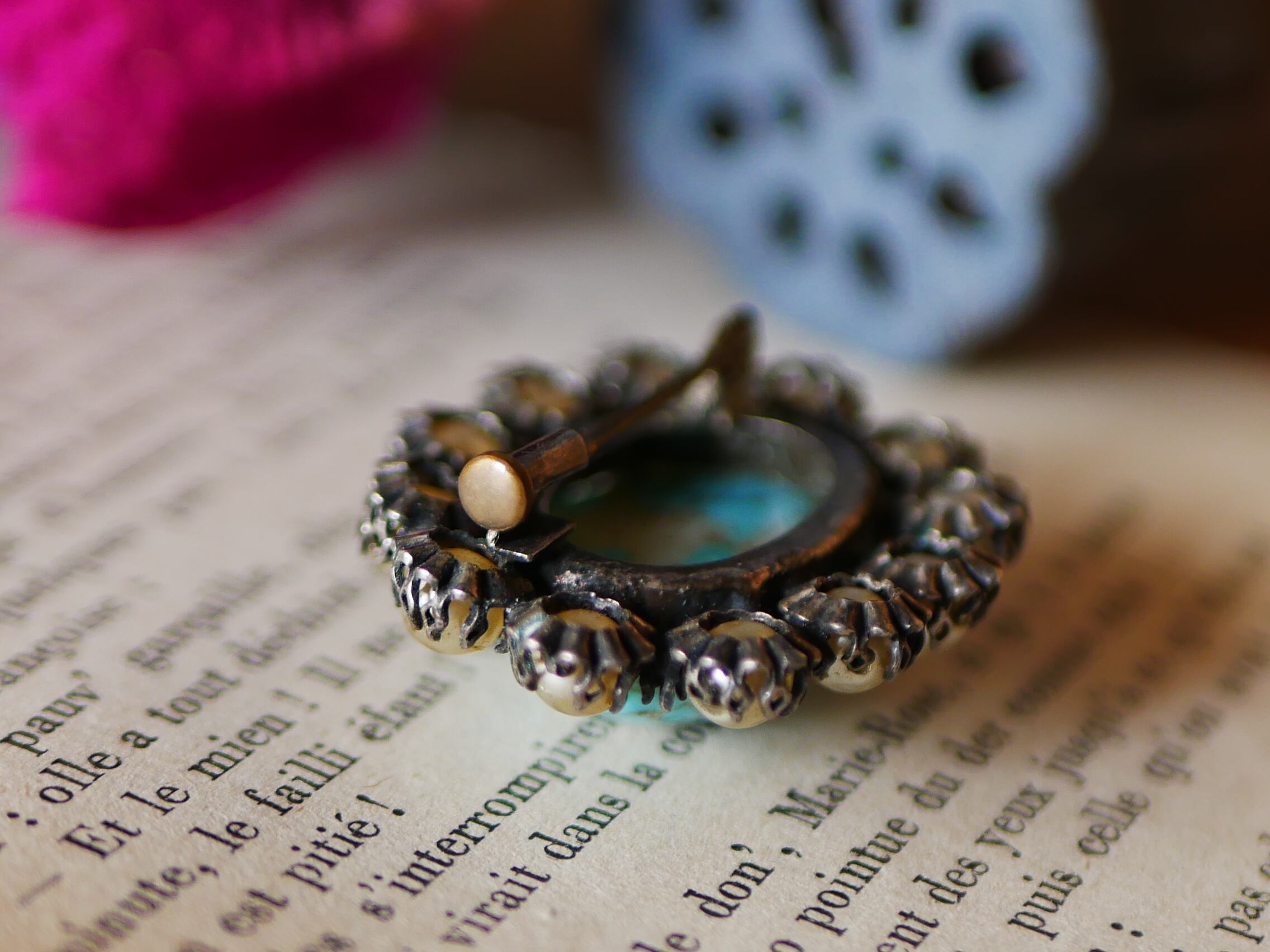 ブルーのマーブルストーン ヴィンテージブローチ フランスヴィンテージ ブロカント
