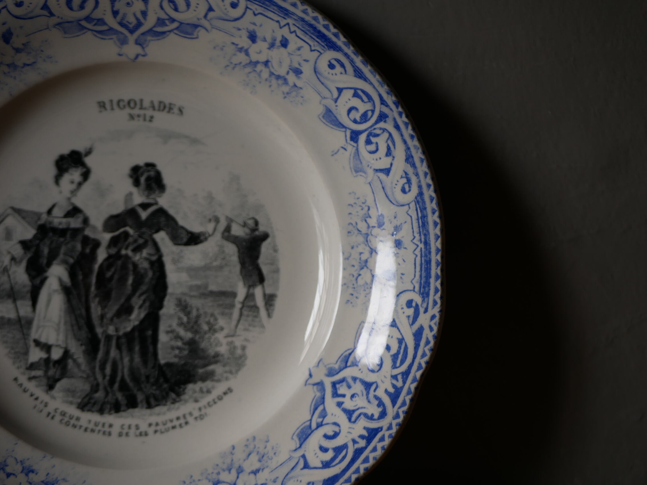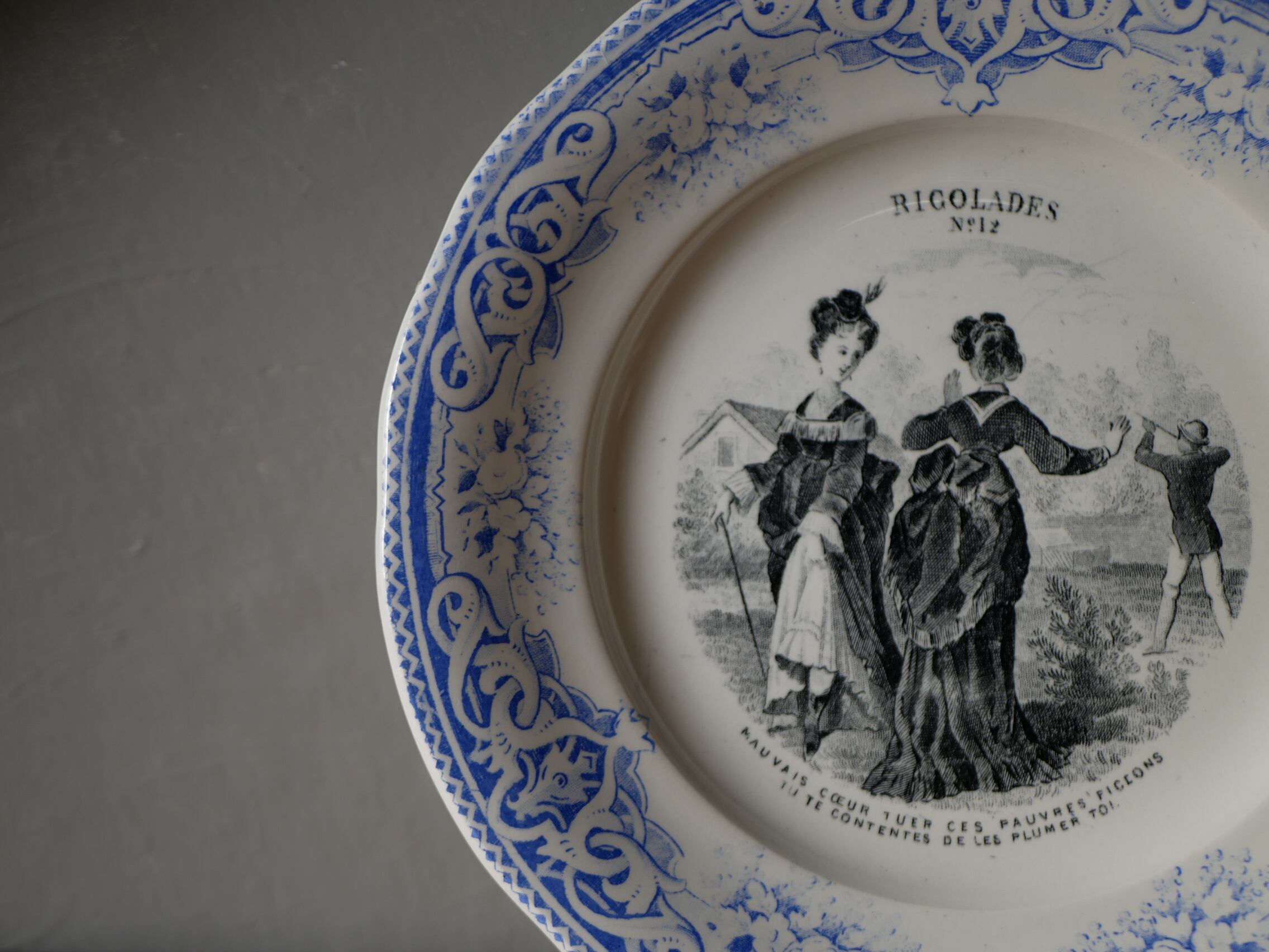 Creil et Montereau クレイユモントロー アンティークプレート ブルー フランスアンティーク
