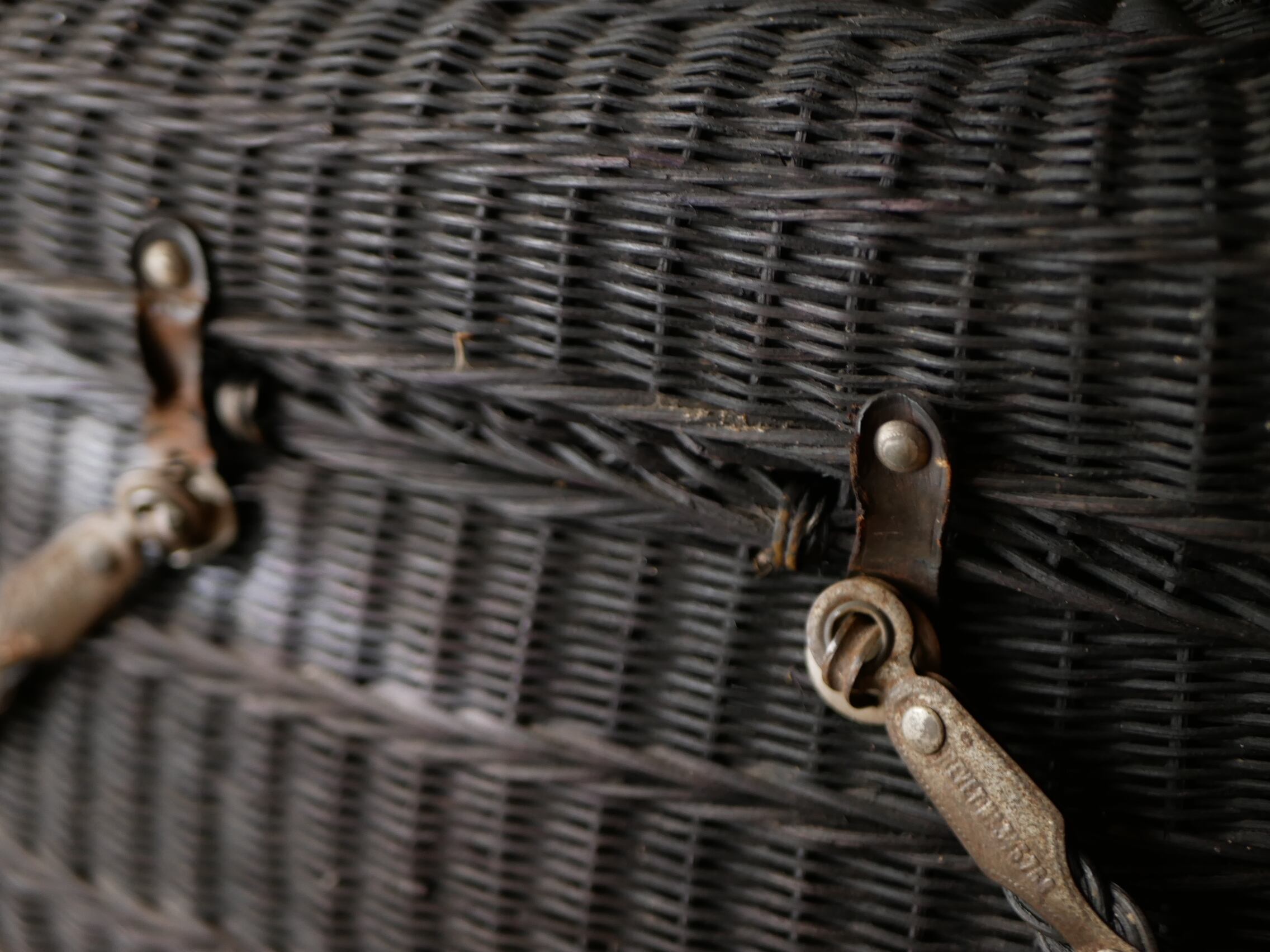 留め具のレザーが切れてなくなっていますが、ハンドルの金具がかっこいいです。