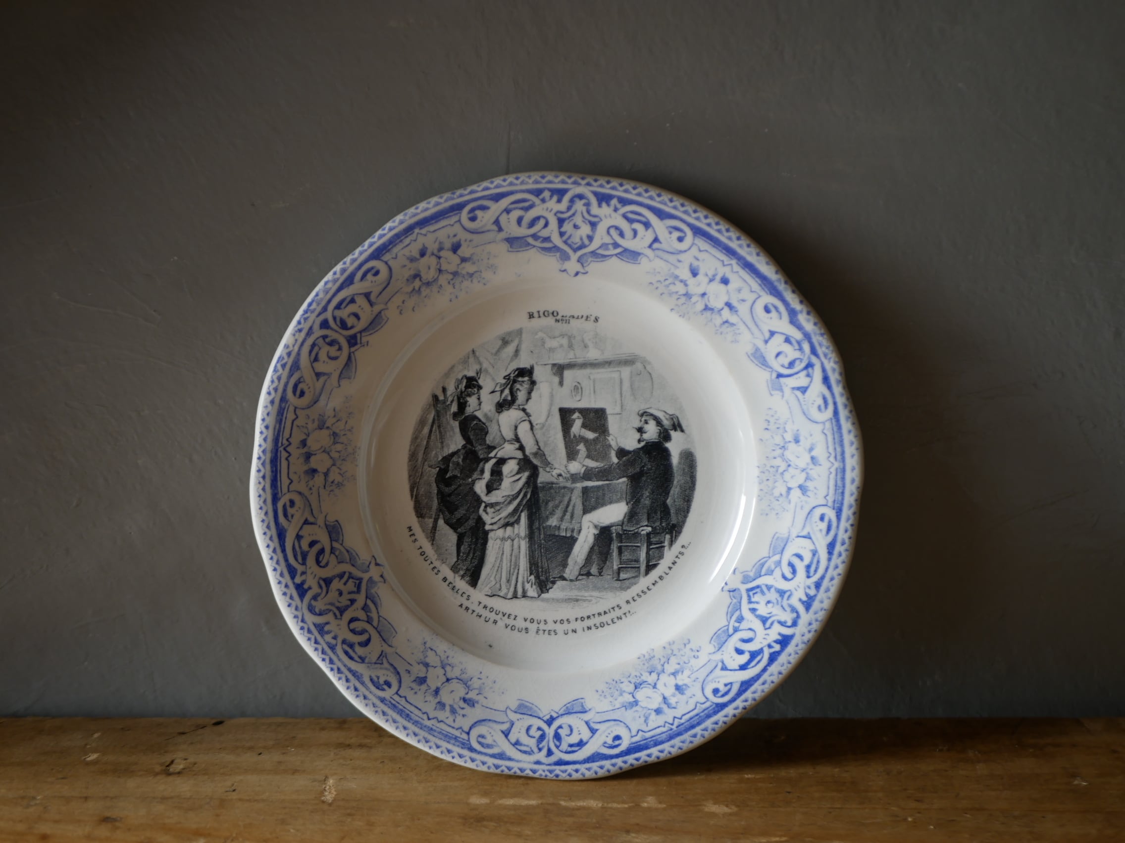 Creil et Montereau クレイユモントロー アンティークプレート ブルー フランスアンティーク
