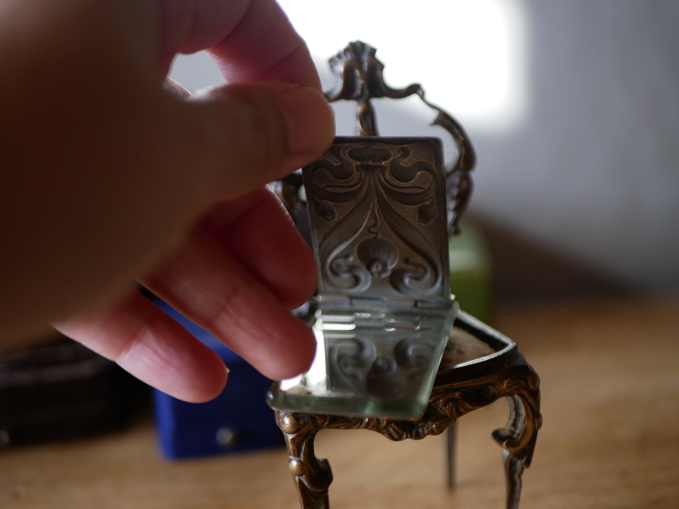 カルネドバルの形をしたコンパクトミラー ミラー シャトレーン フランスアンティーク アンティークのある暮らし