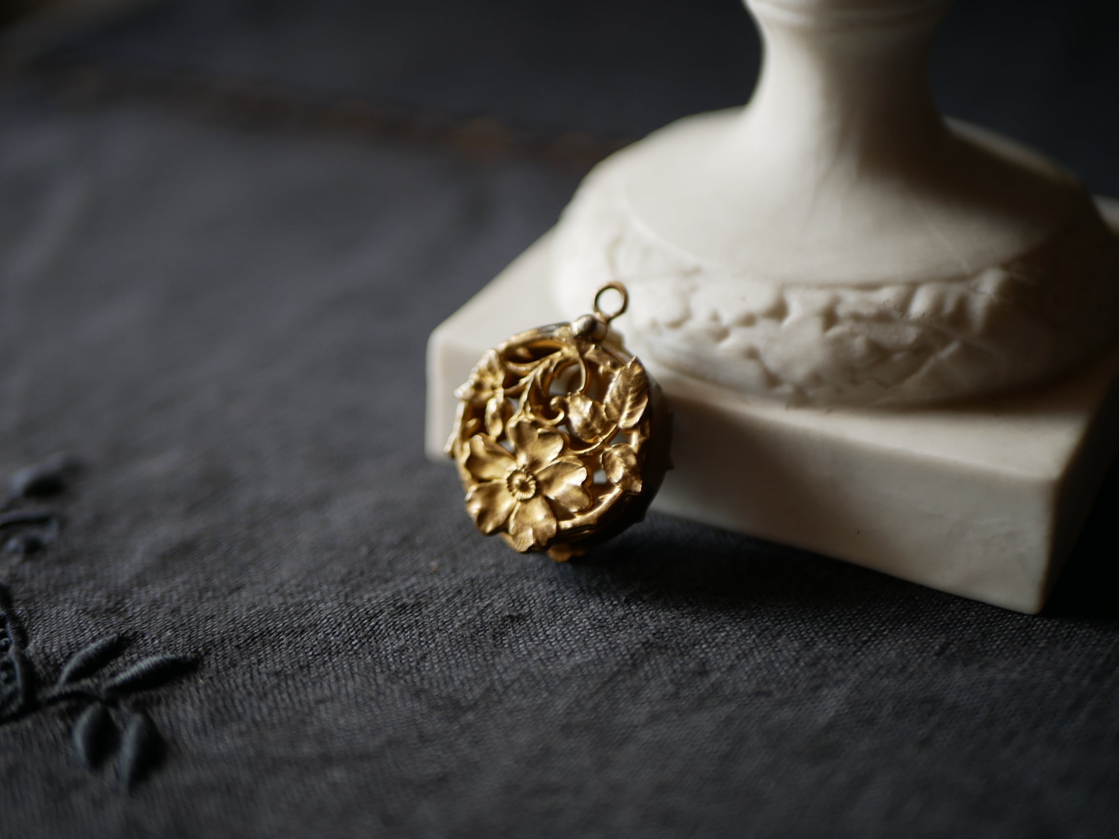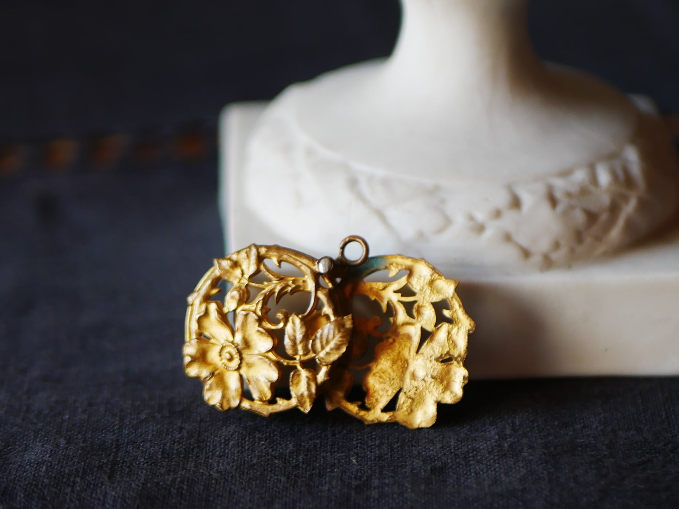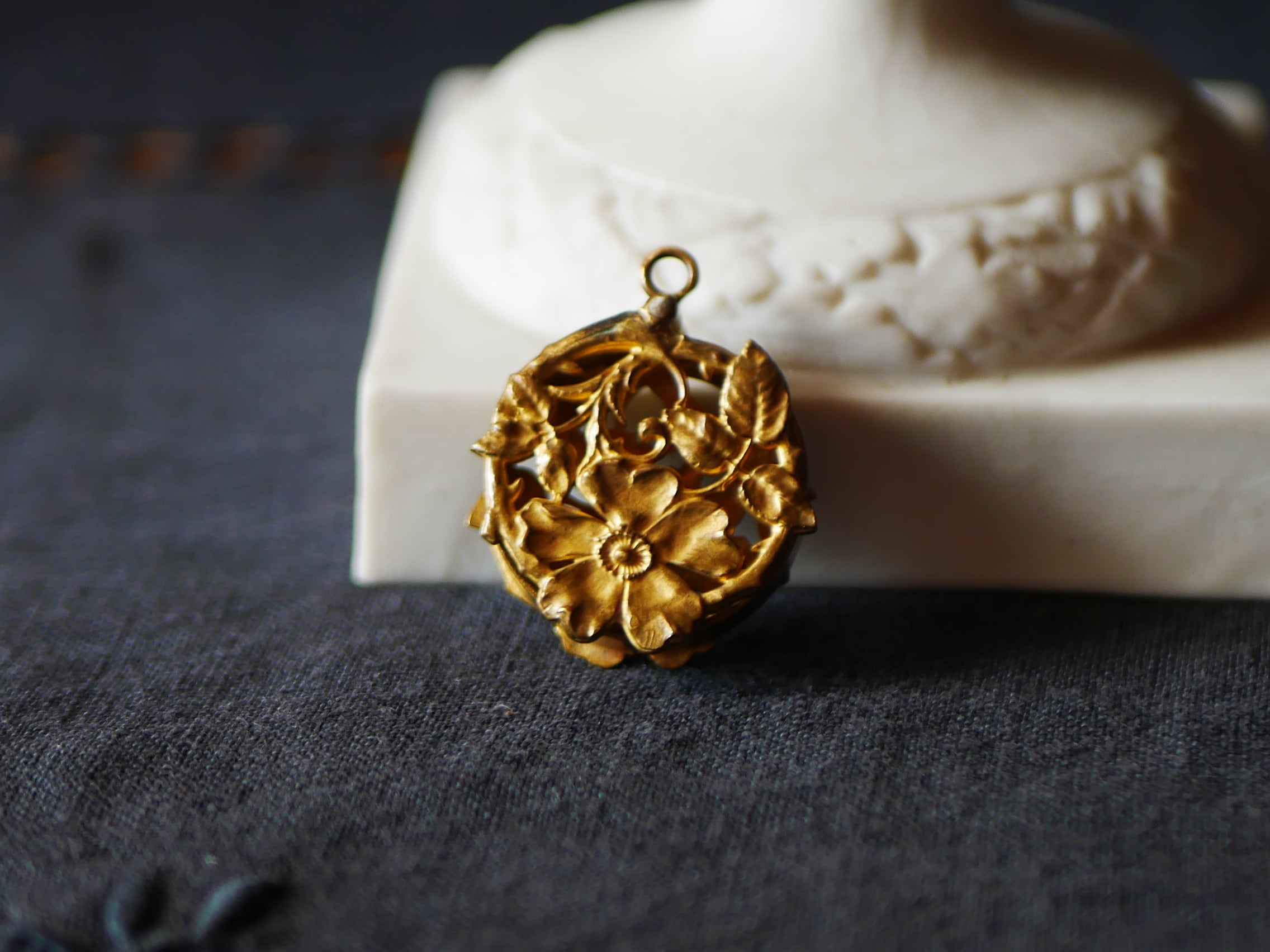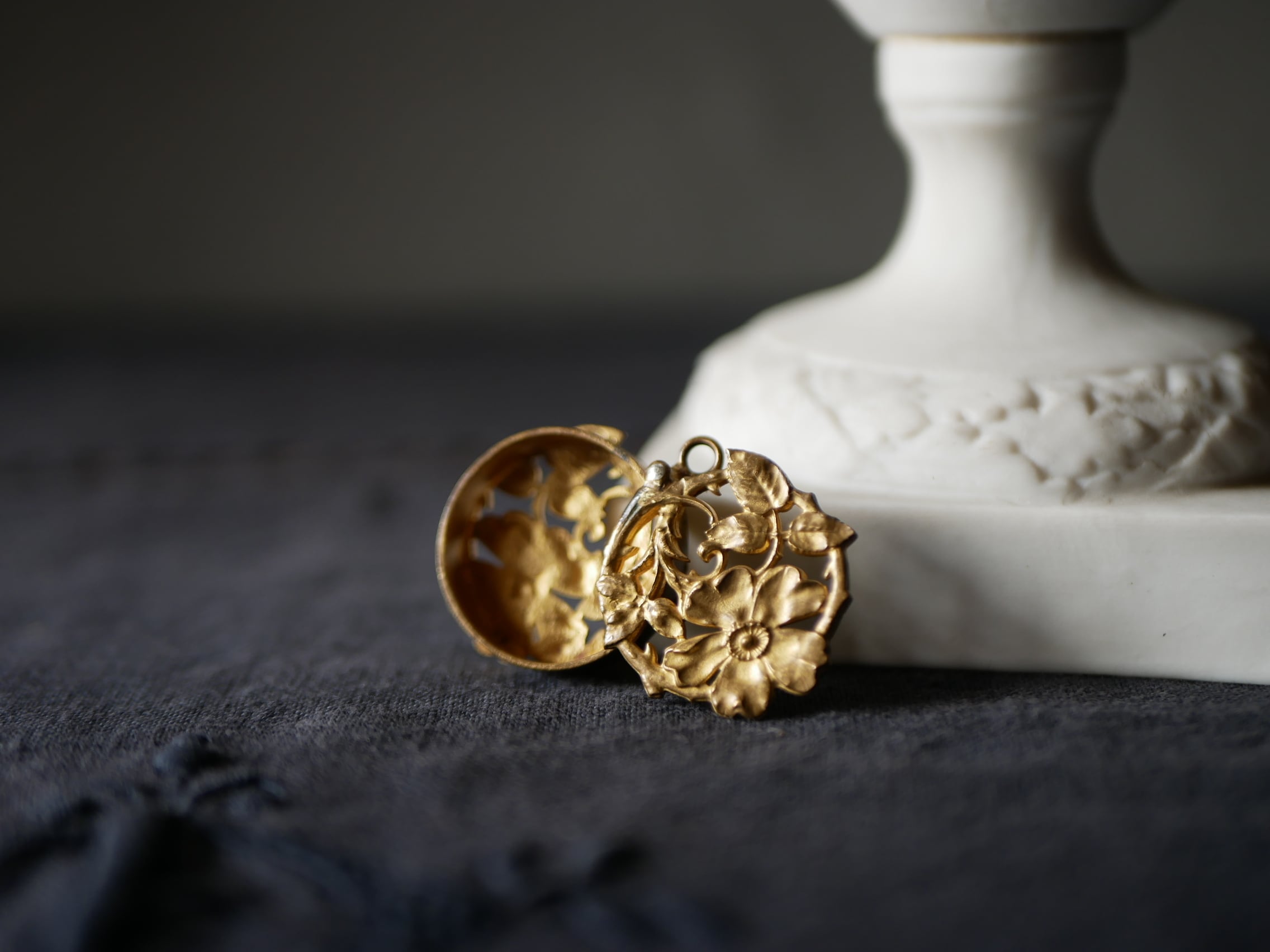 透かし細工の花 アンティークチャーム ペンダントトップ フランスアンティーク アンティークのある暮らし