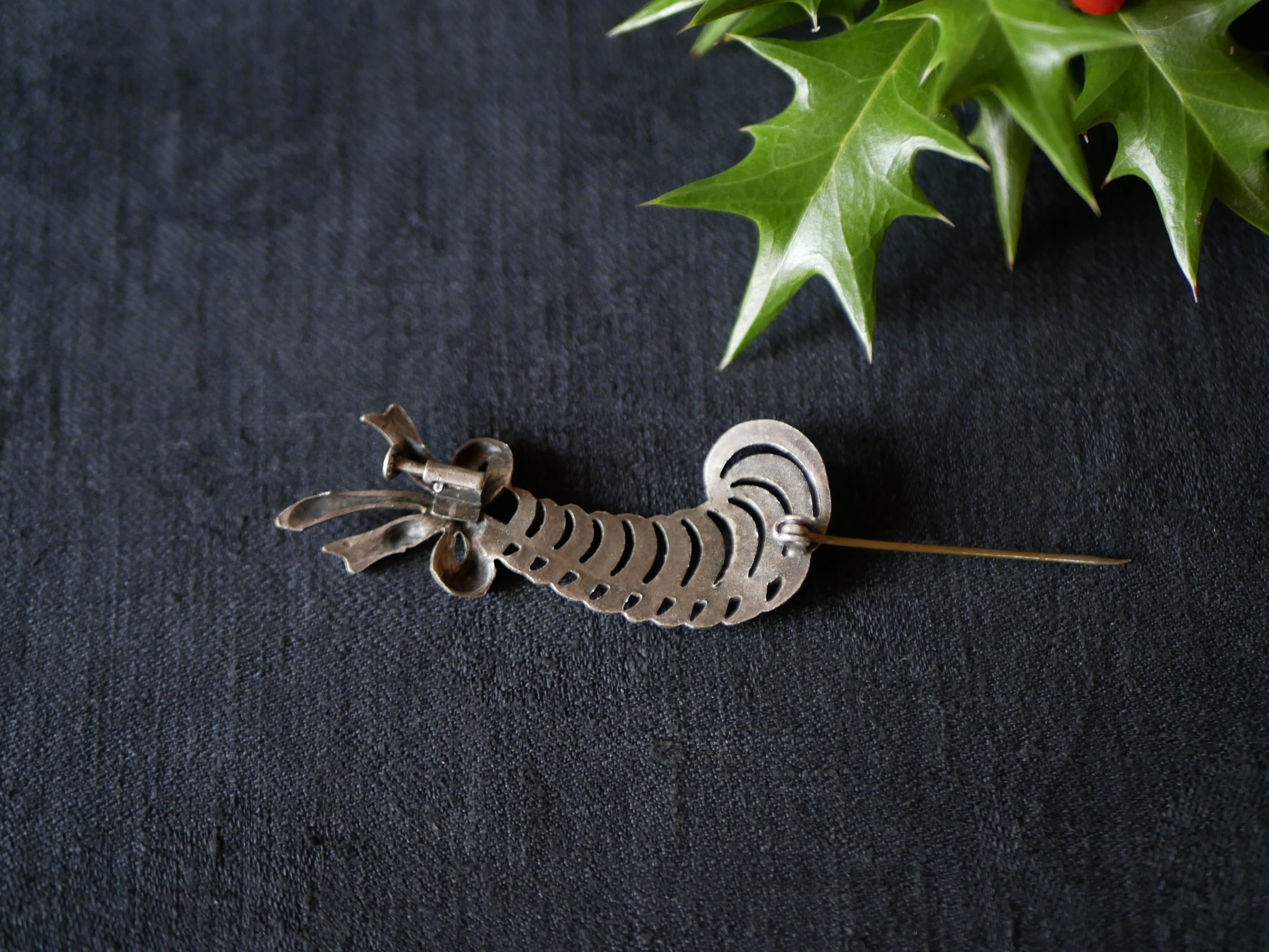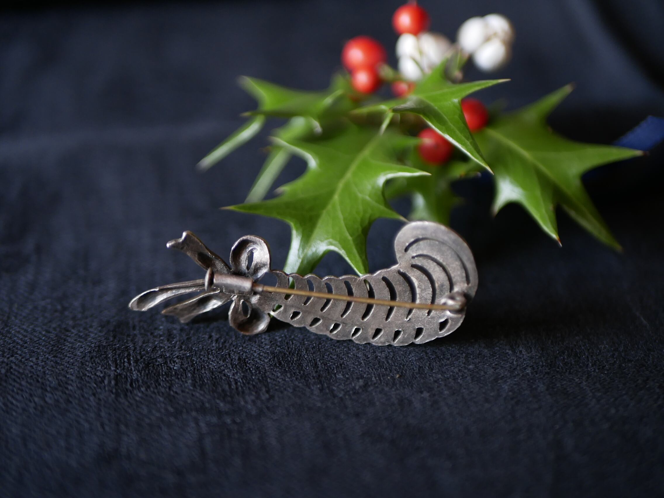 羽根の形をしたヴィンテージブローチ フランスヴィンテージ ブロカントのある暮らし