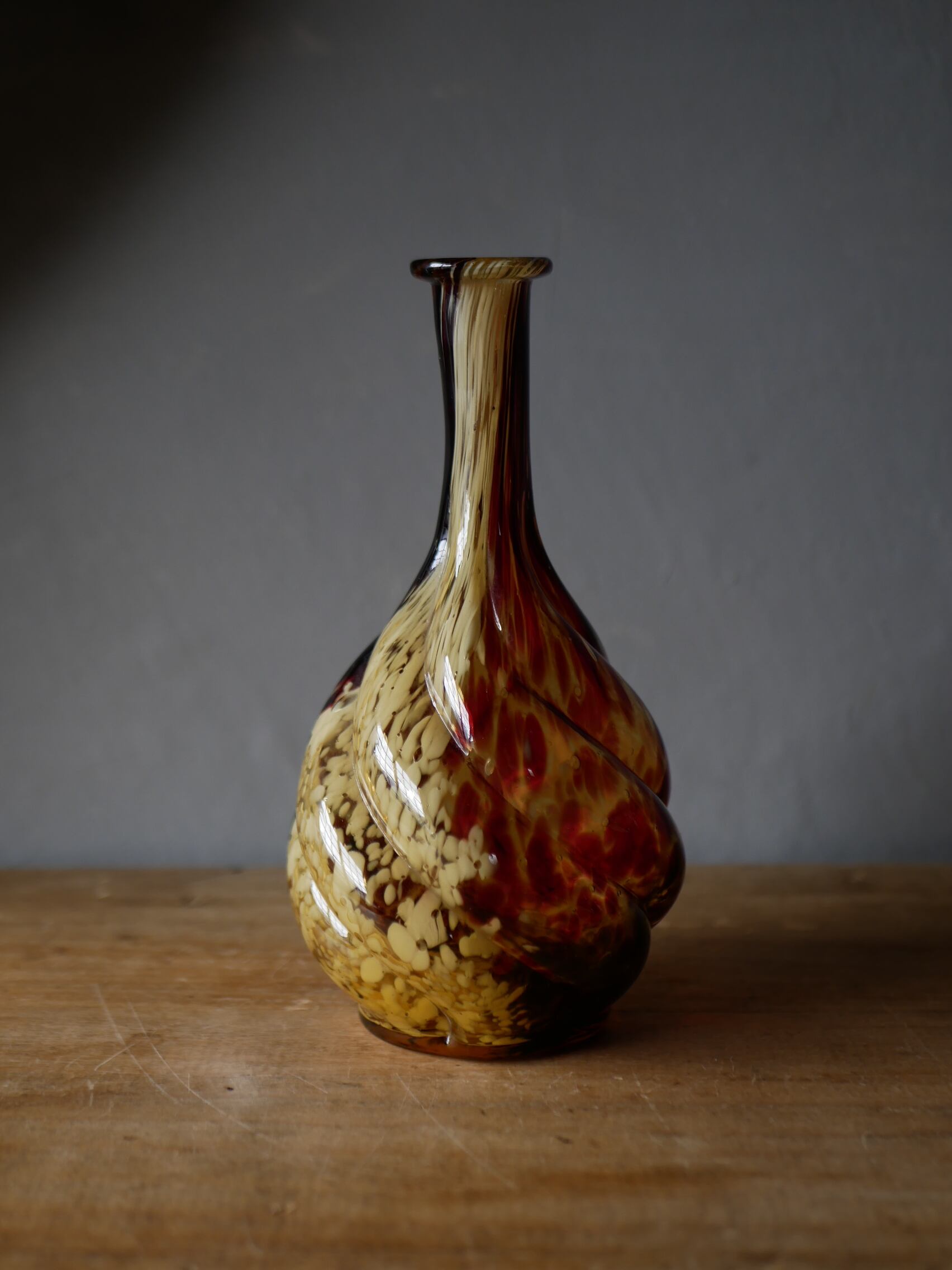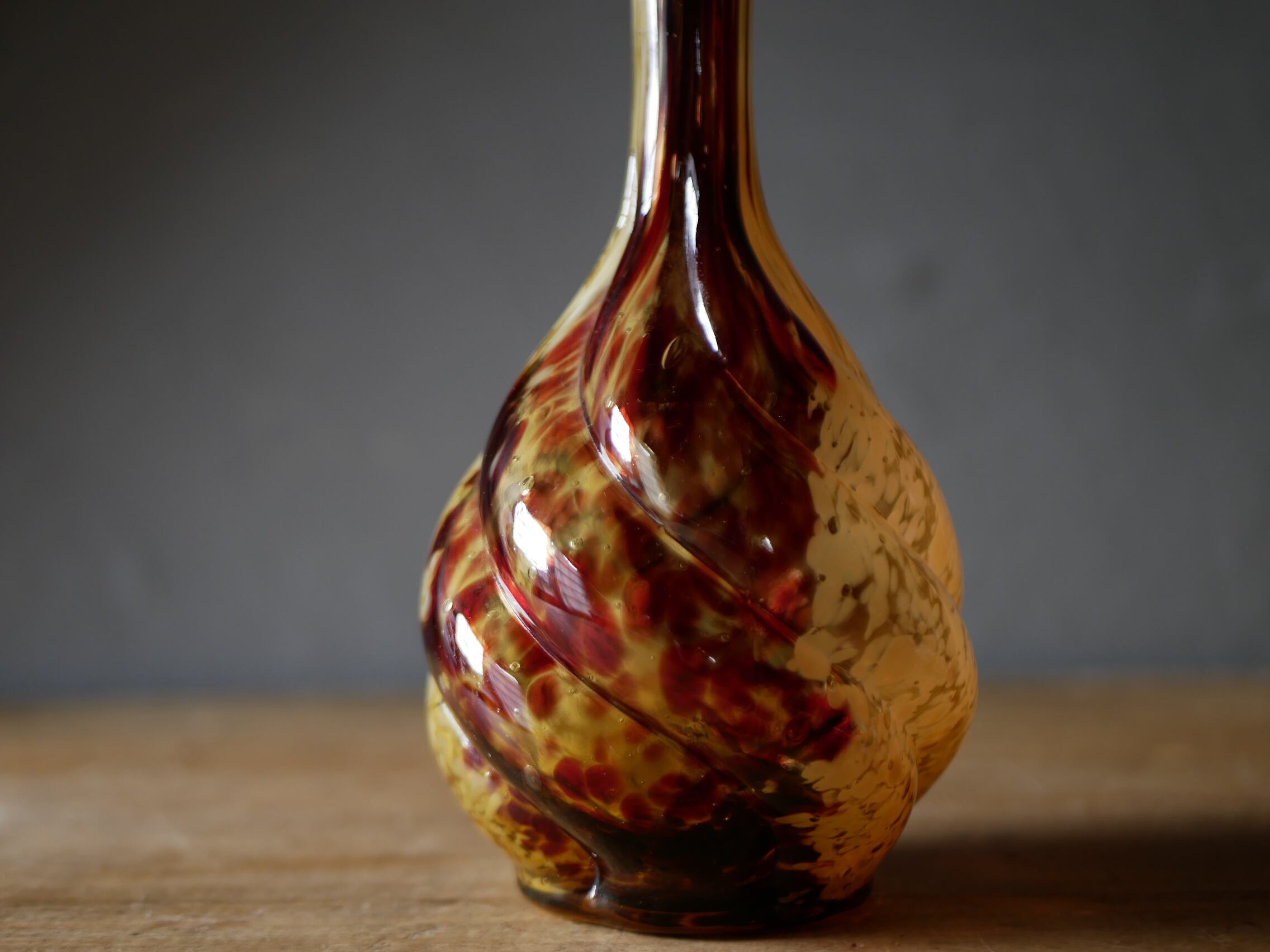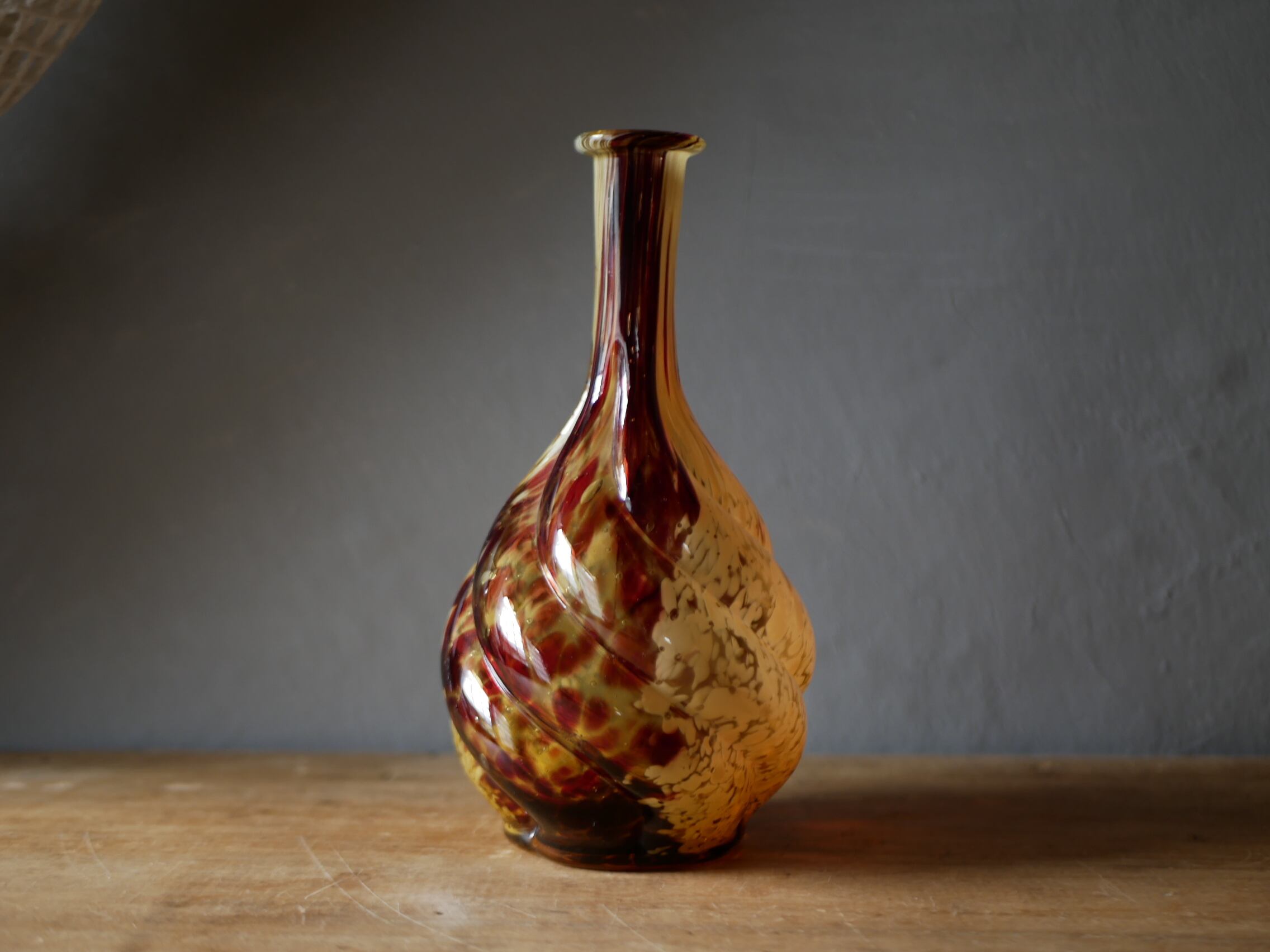 クリシー Brown × Yellow オパリンガラス フラワーベース フランスヴィンテージ