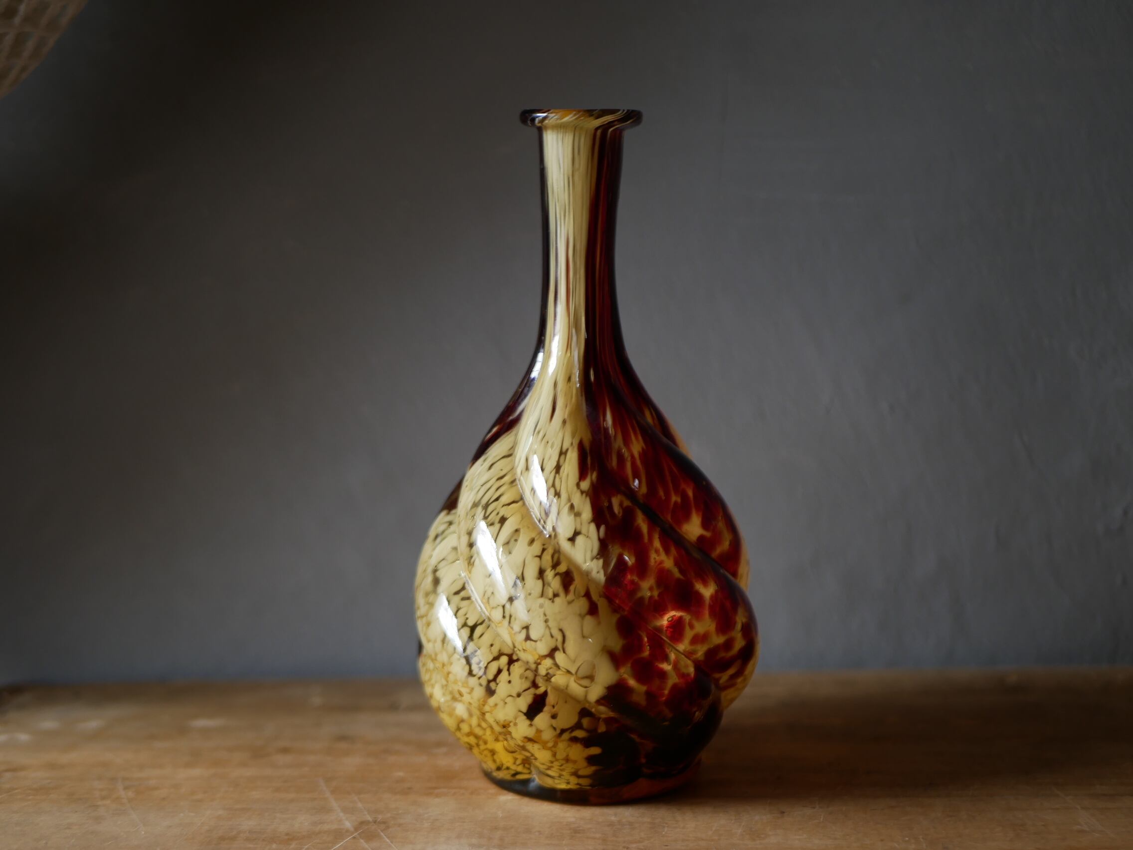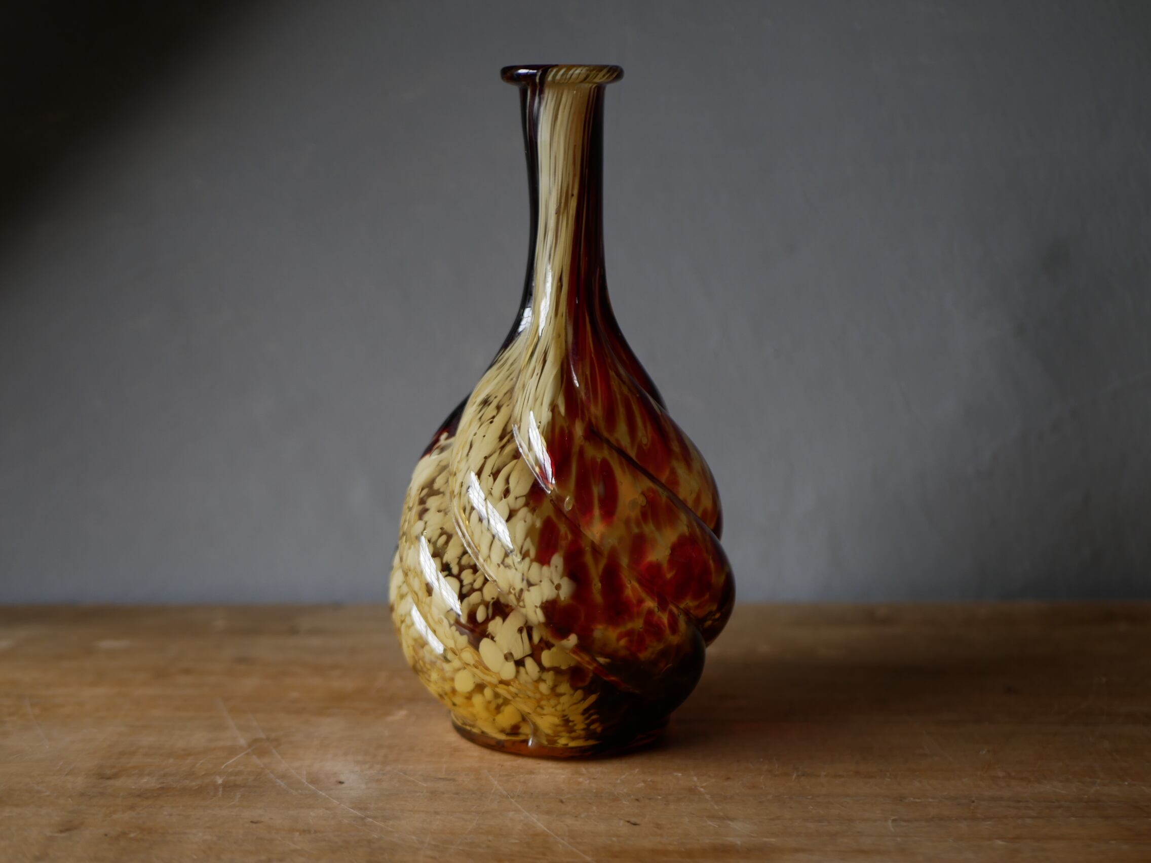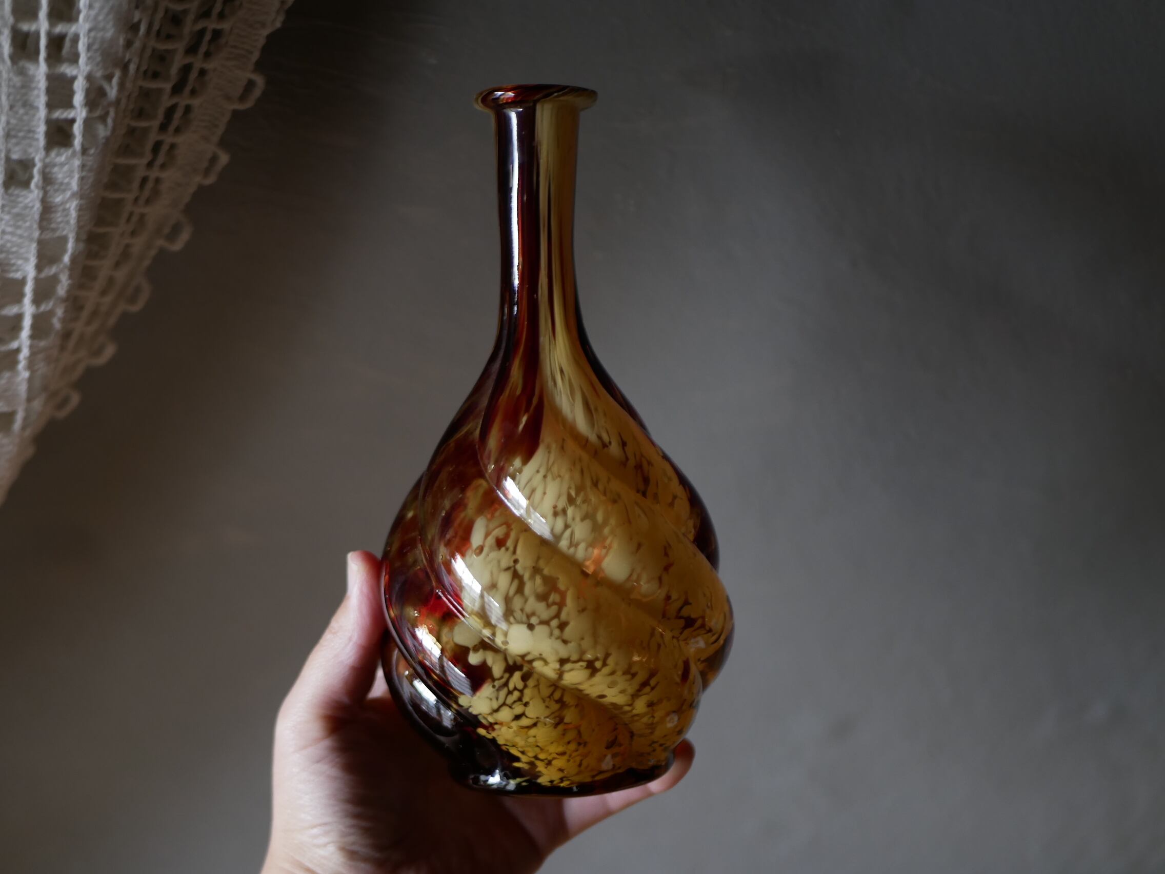 クリシー Brown × Yellow オパリンガラス フラワーベース フランスヴィンテージ