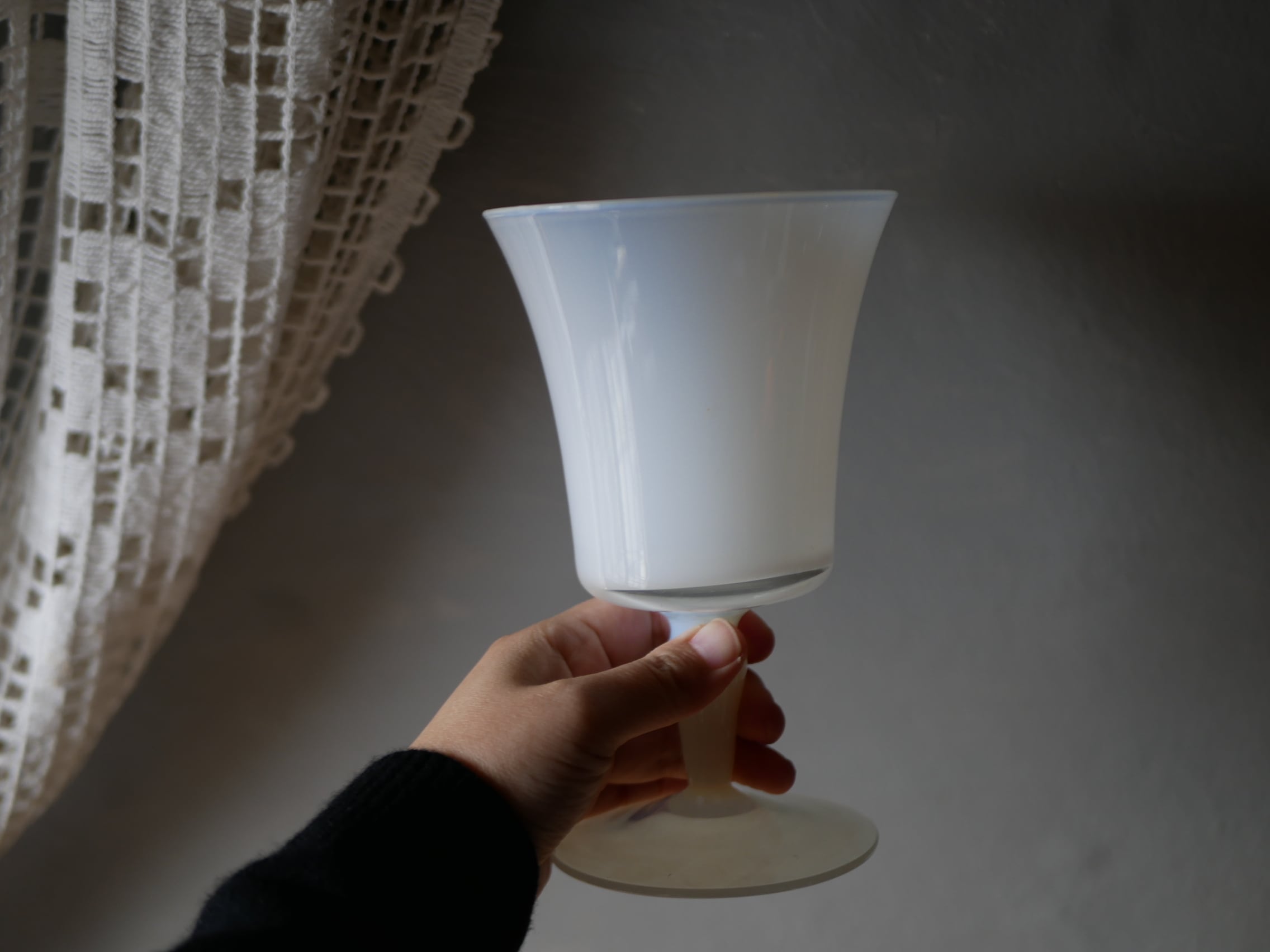 ホワイト オパリンガラス フラワーベース フランスヴィンテージ ブロカントのある暮らし
