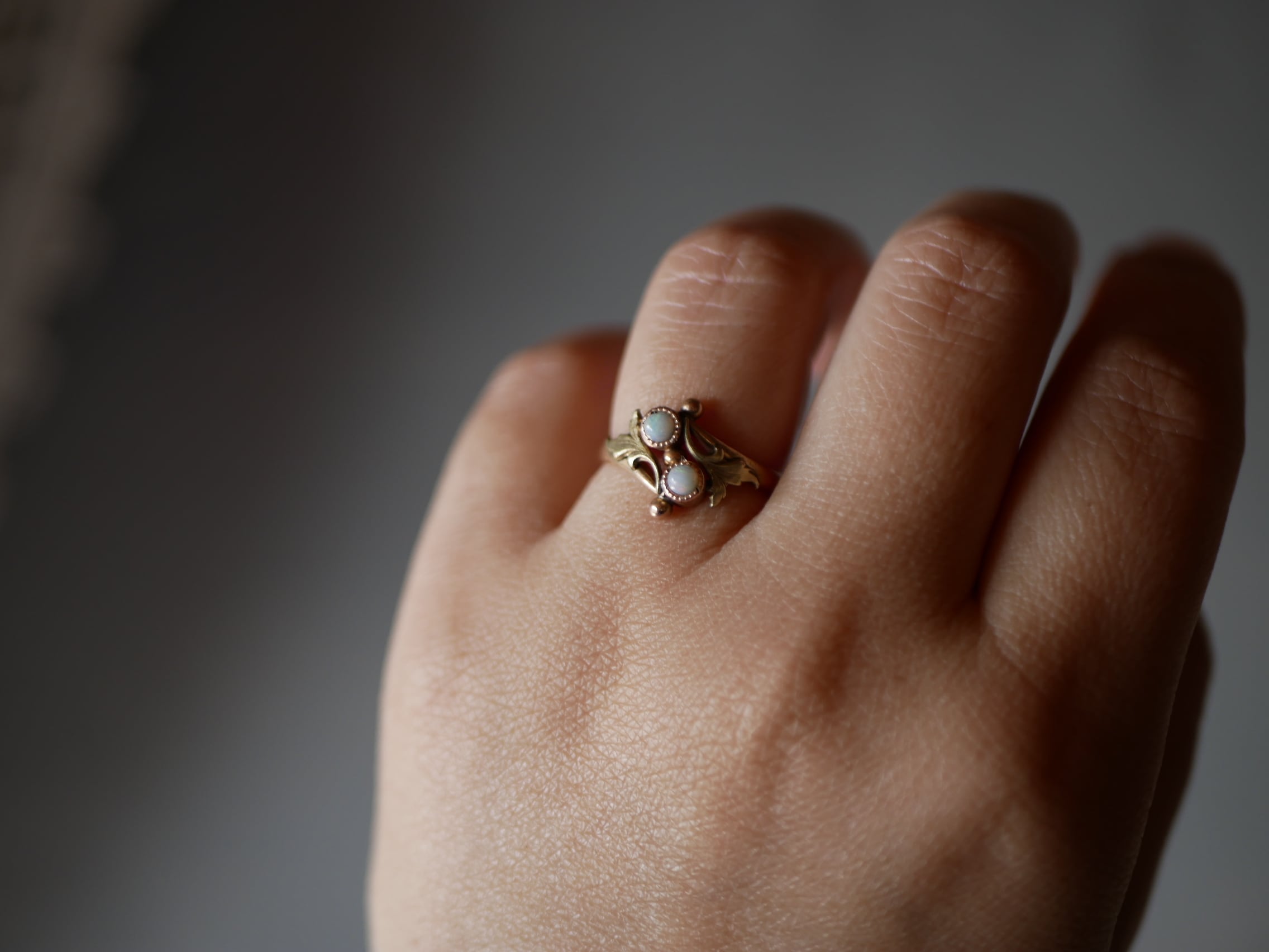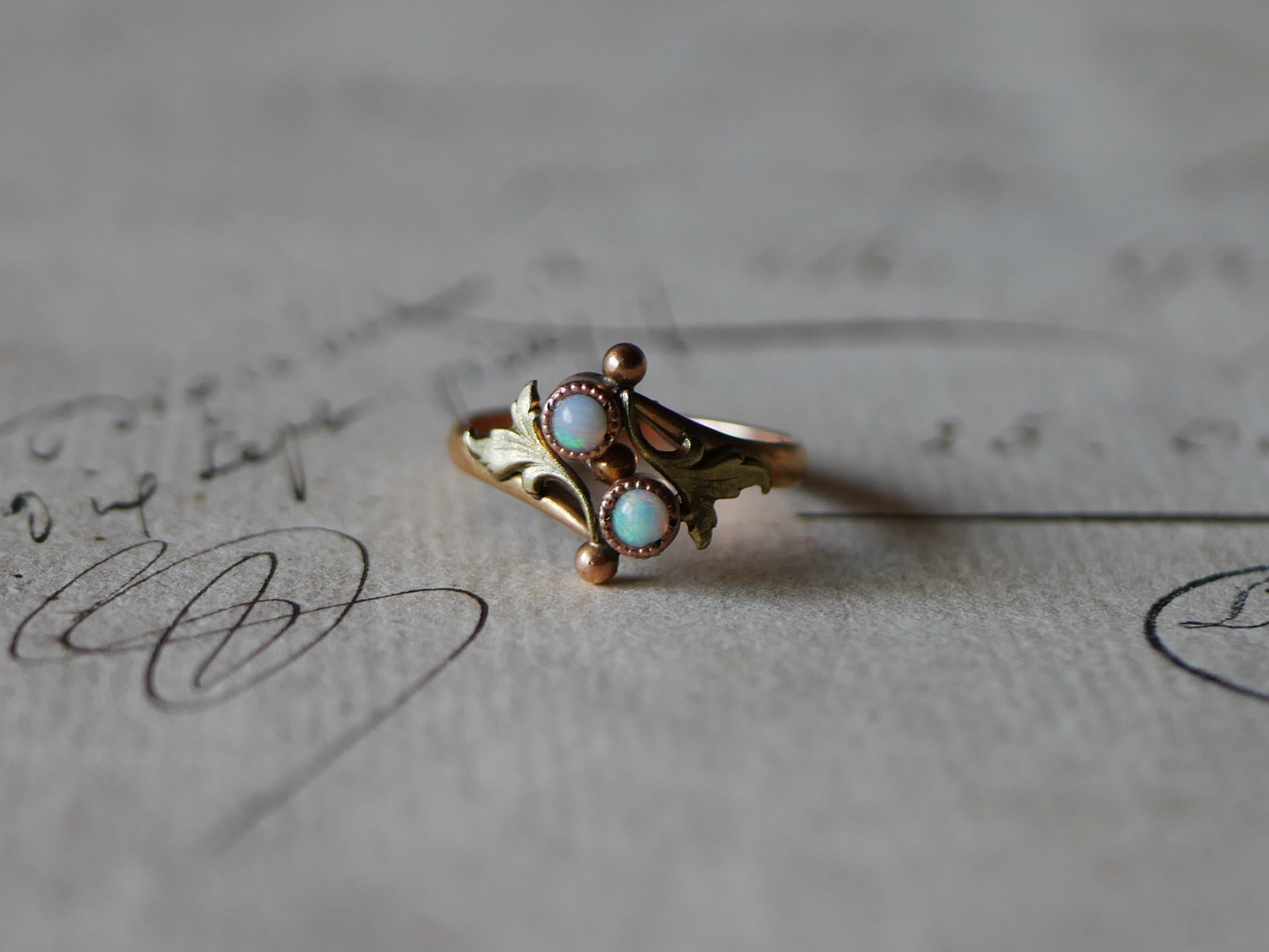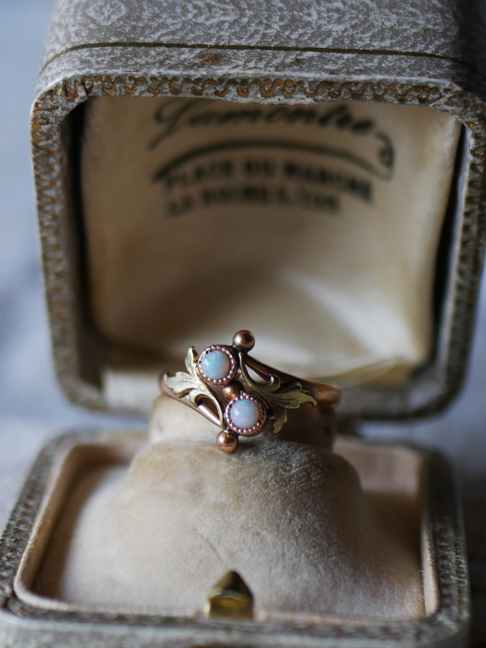 ボタニカルなレリーフとオパールが相性の良いアンティークリングに出会いました。