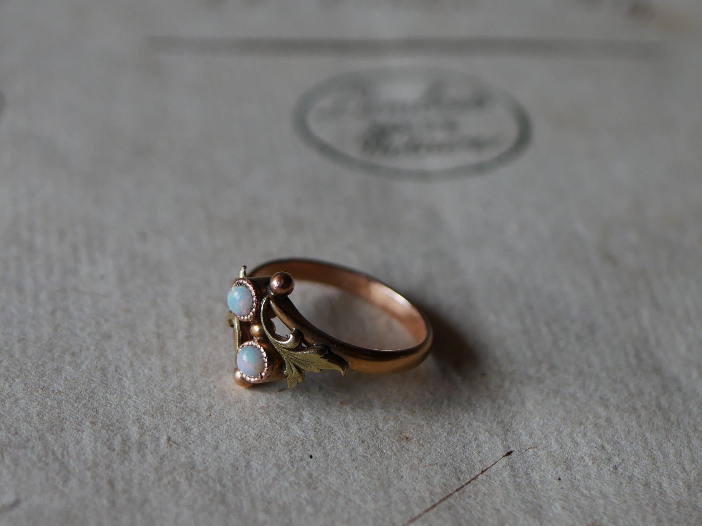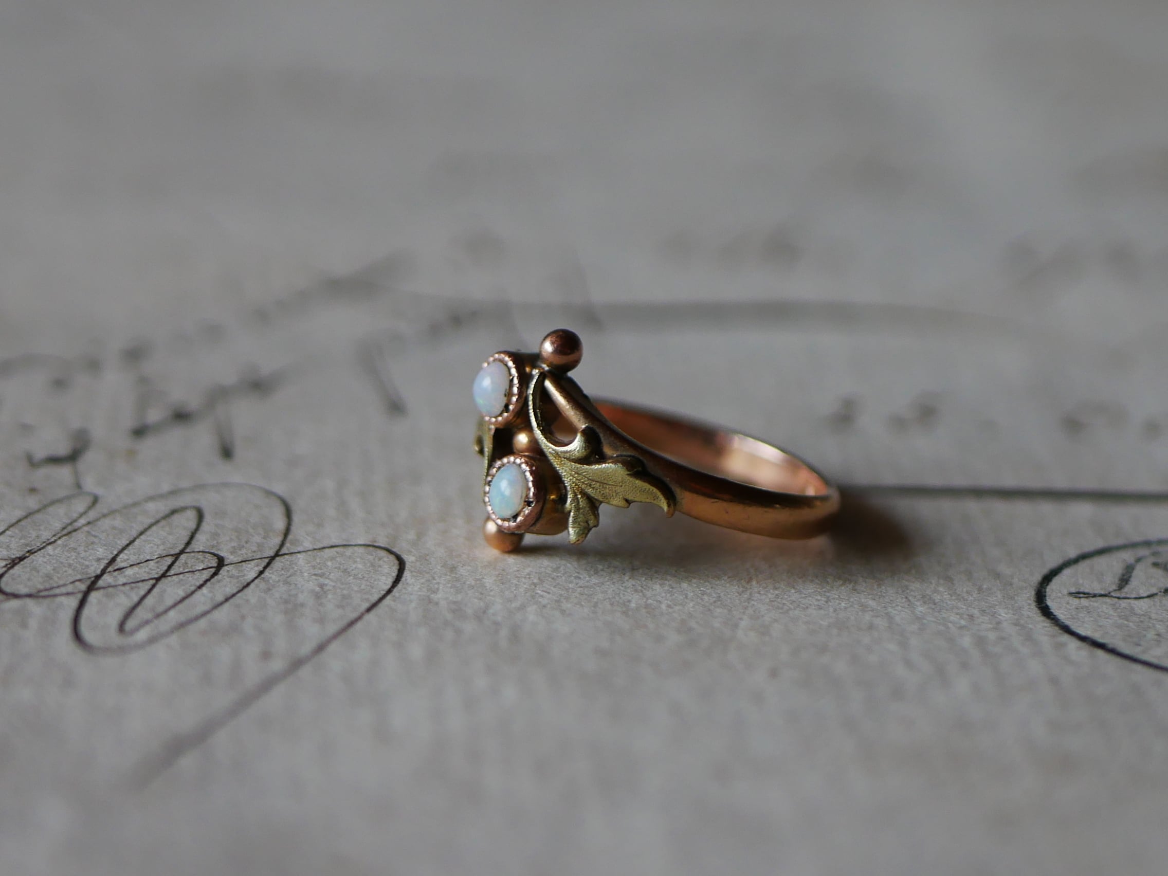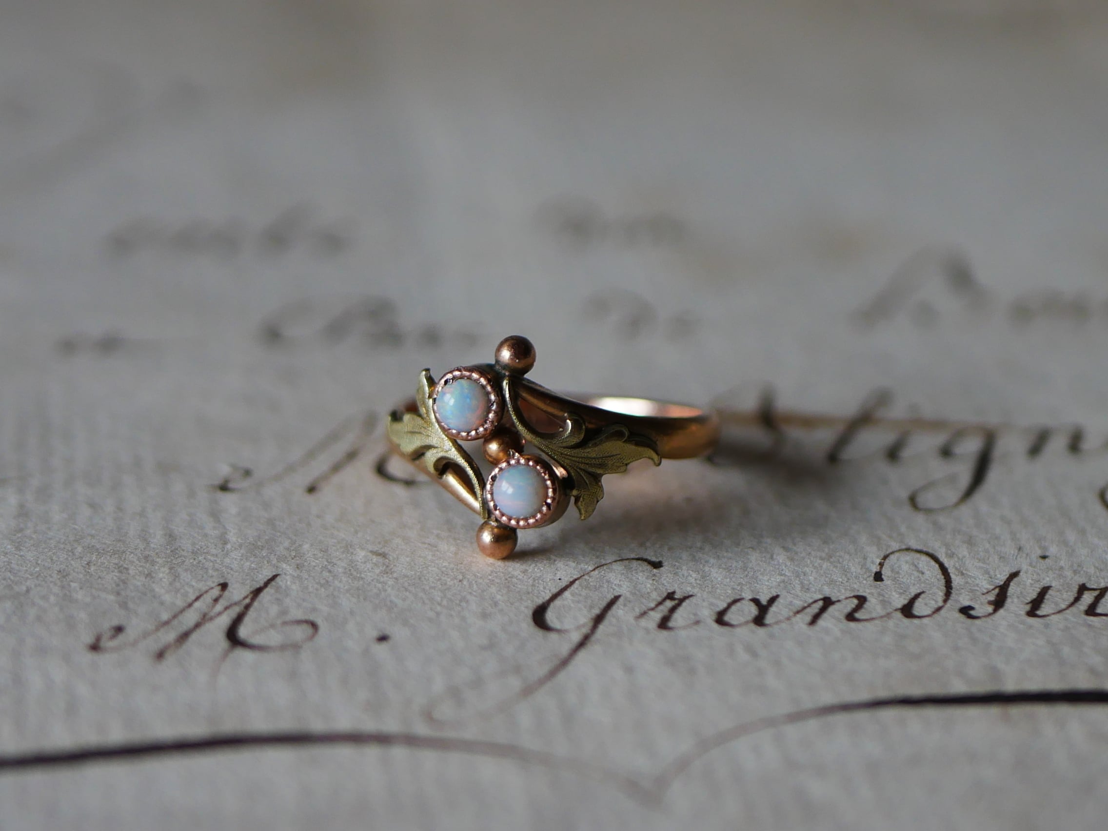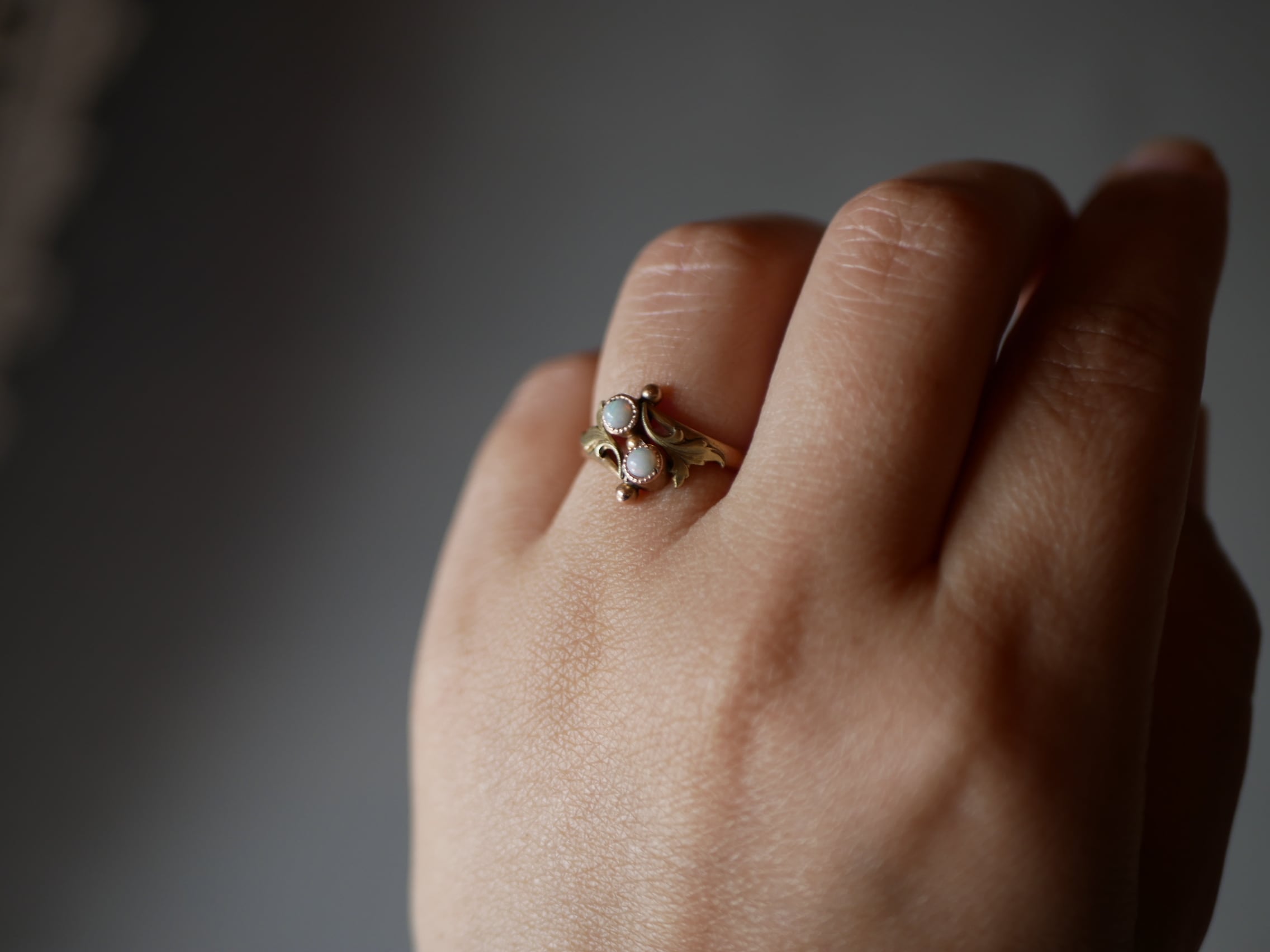 ボタニカルなレリーフとオパールが相性の良いアンティークリングに出会いました。