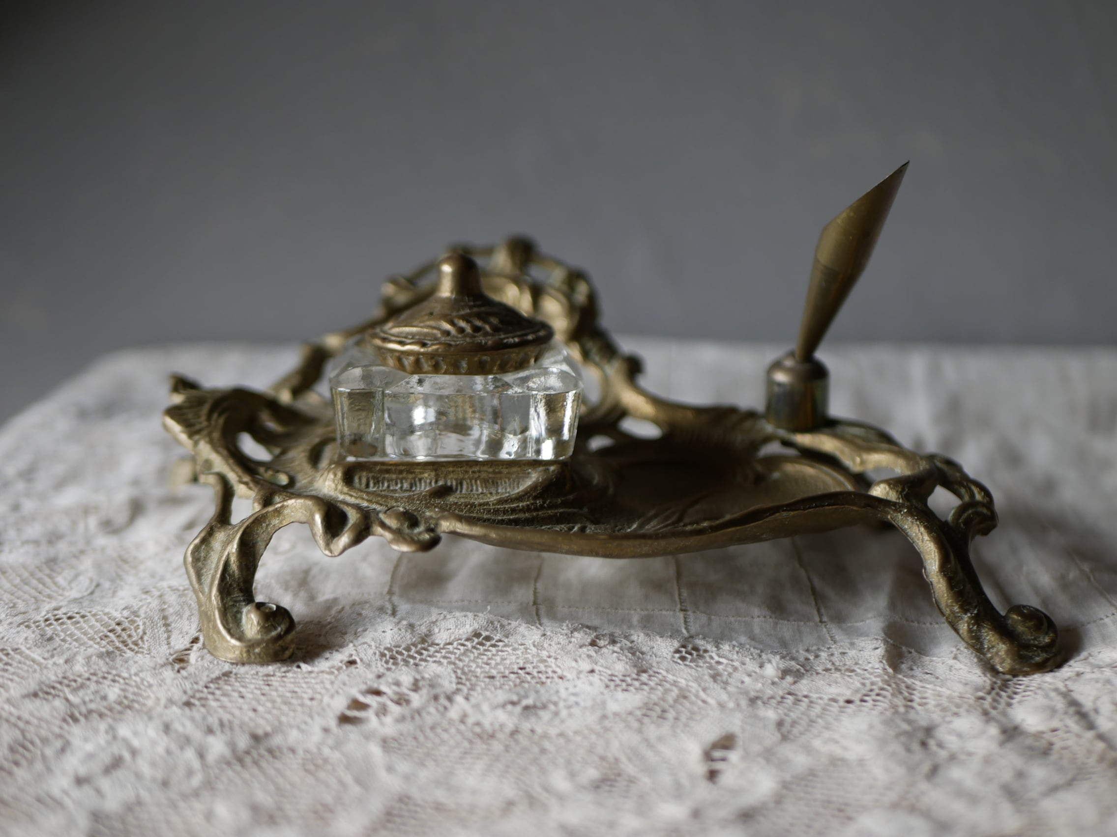 どこを切り取っても絵になる素晴らしいアールヌーヴォーのアンクリエ、インクスタンドです。