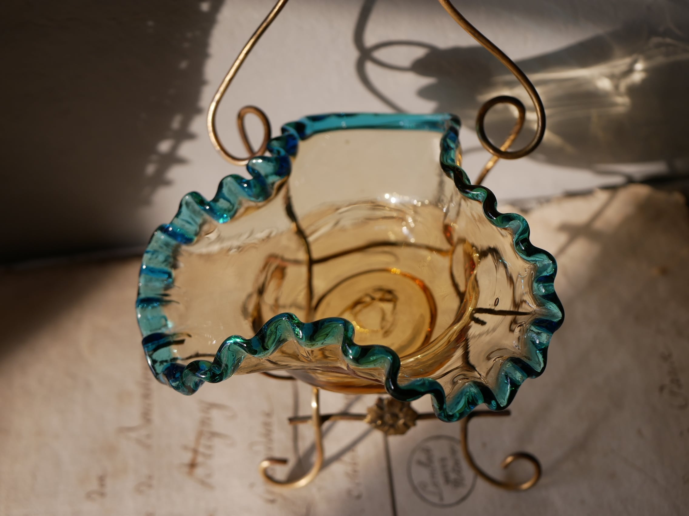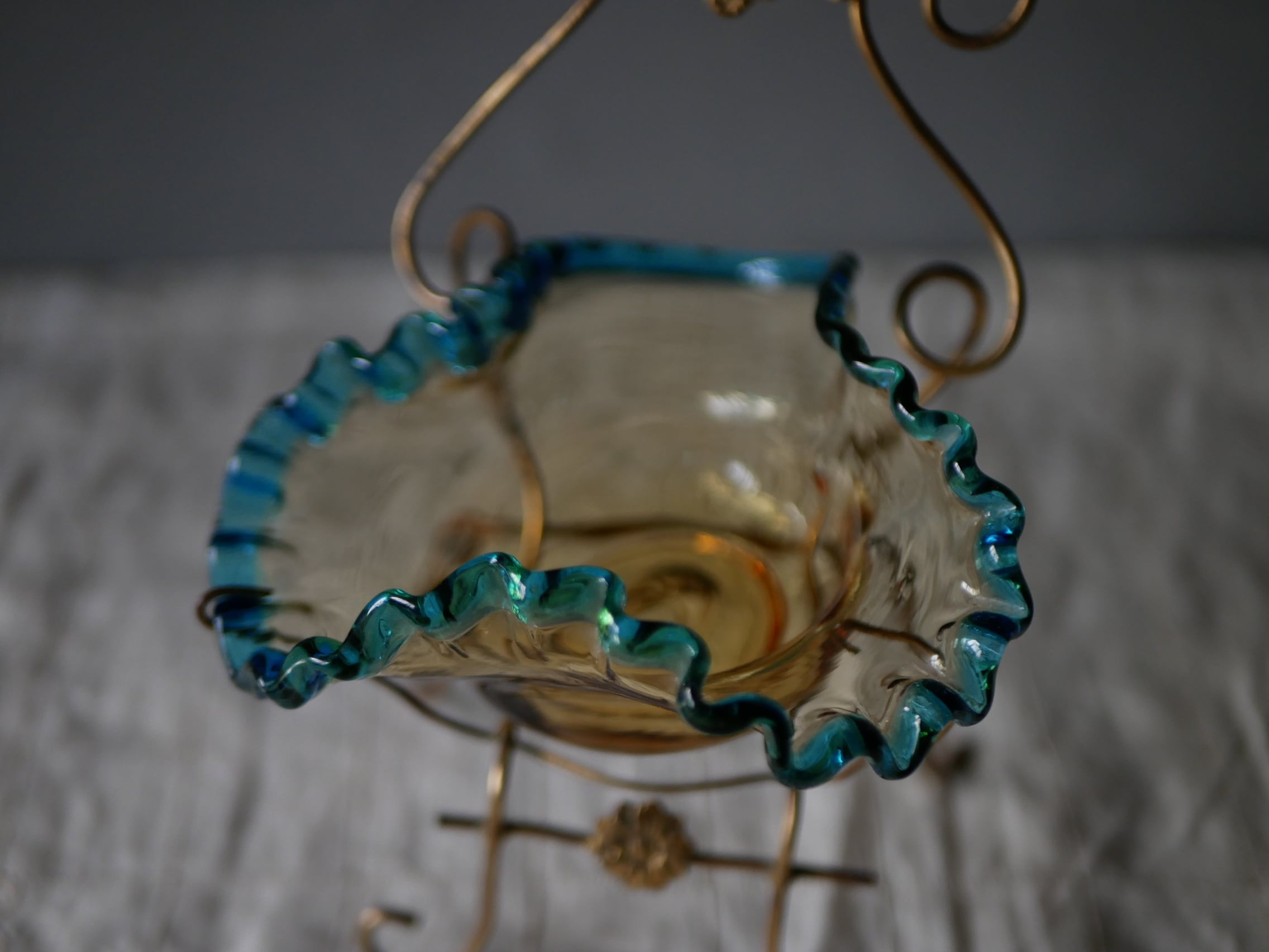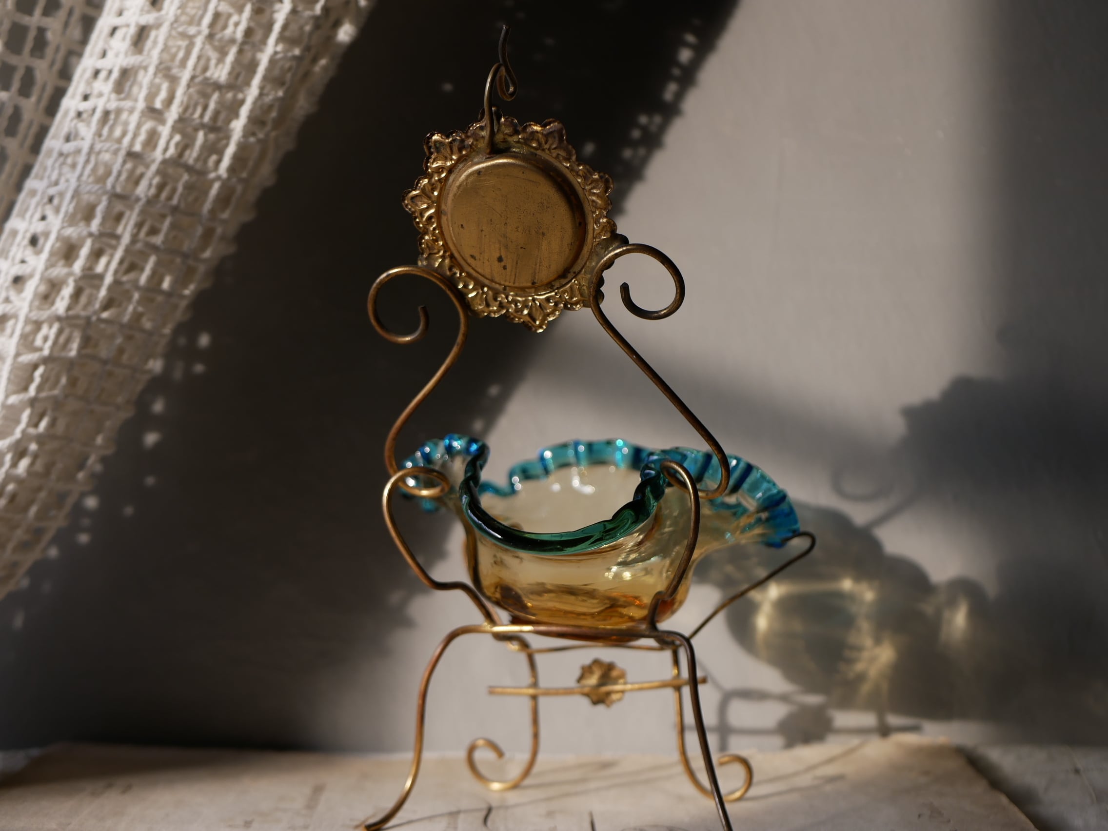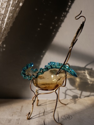 今回は19世紀にフランスで活躍した小説家、ジョルジュ・サンドが好んだ色で、ブルー×ブラウンのガラスのスタンドです。