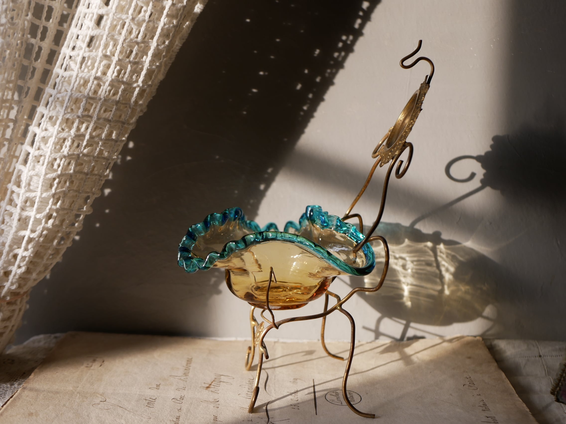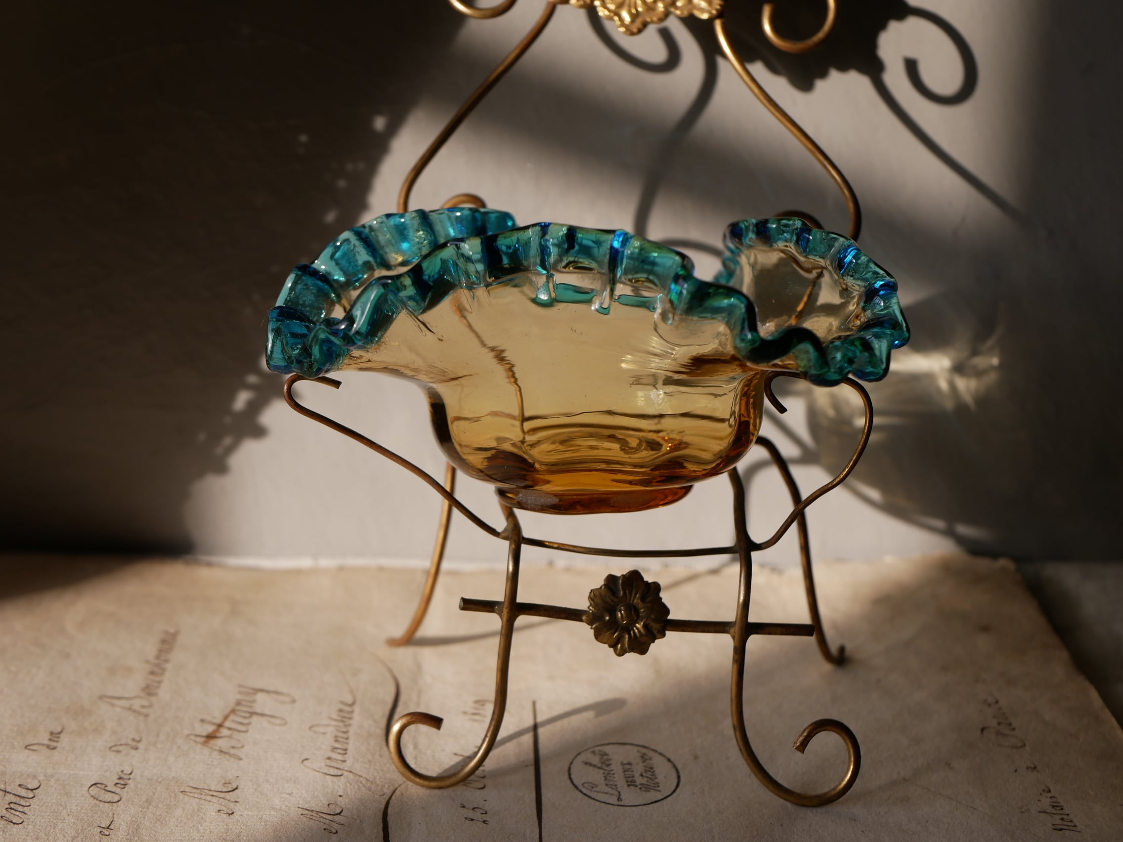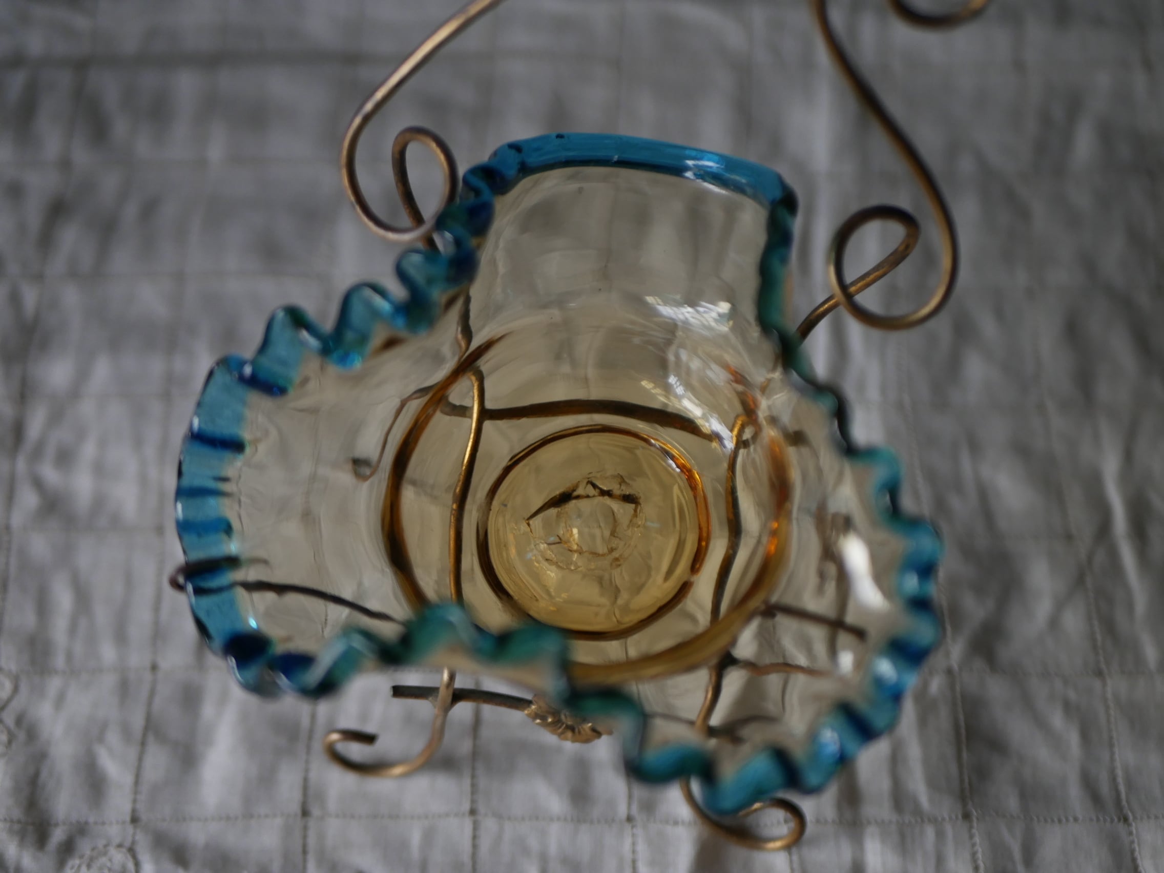 今回は19世紀にフランスで活躍した小説家、ジョルジュ・サンドが好んだ色で、ブルー×ブラウンのガラスのスタンドです。