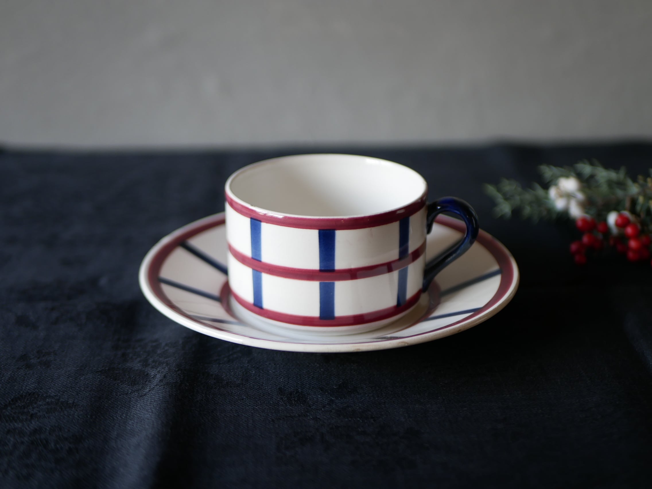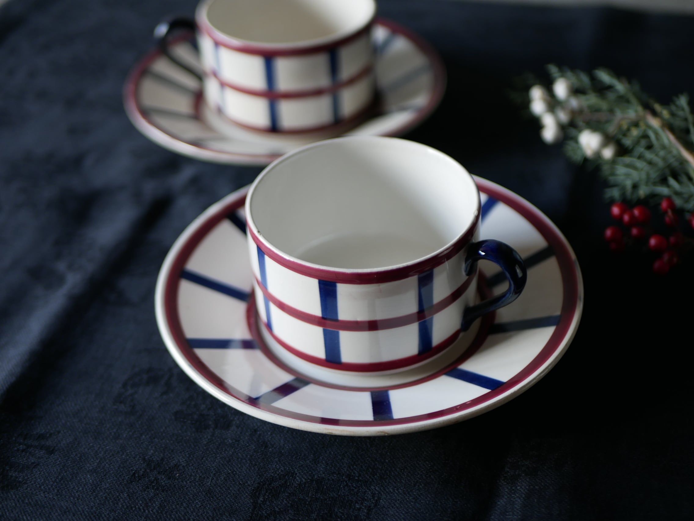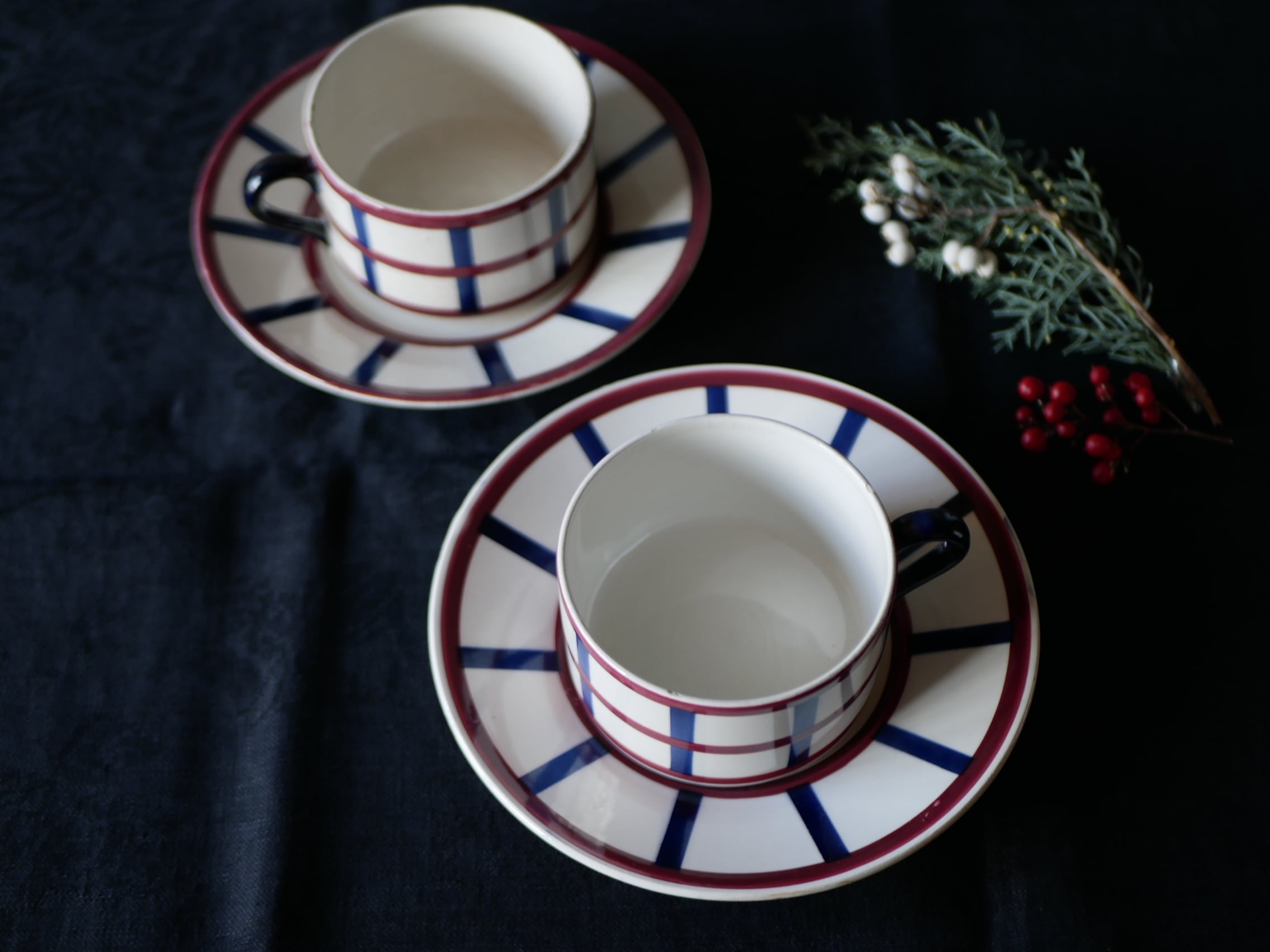 2 バスク柄 ティーカップ&ソーサー フランスアンティーク ブロカント アンティークのある暮らし