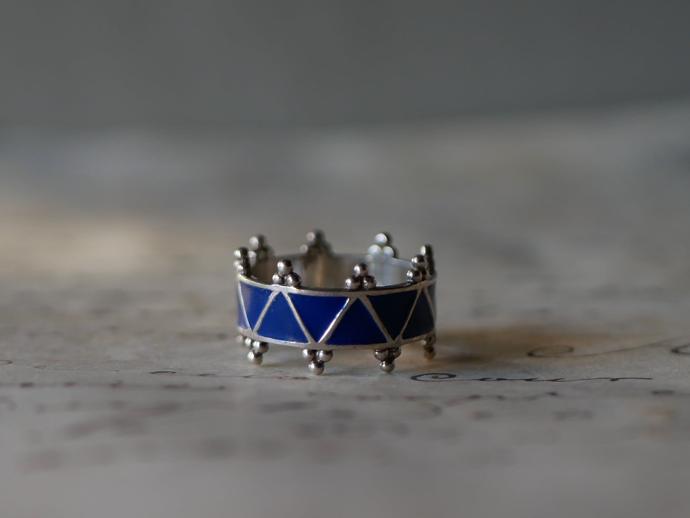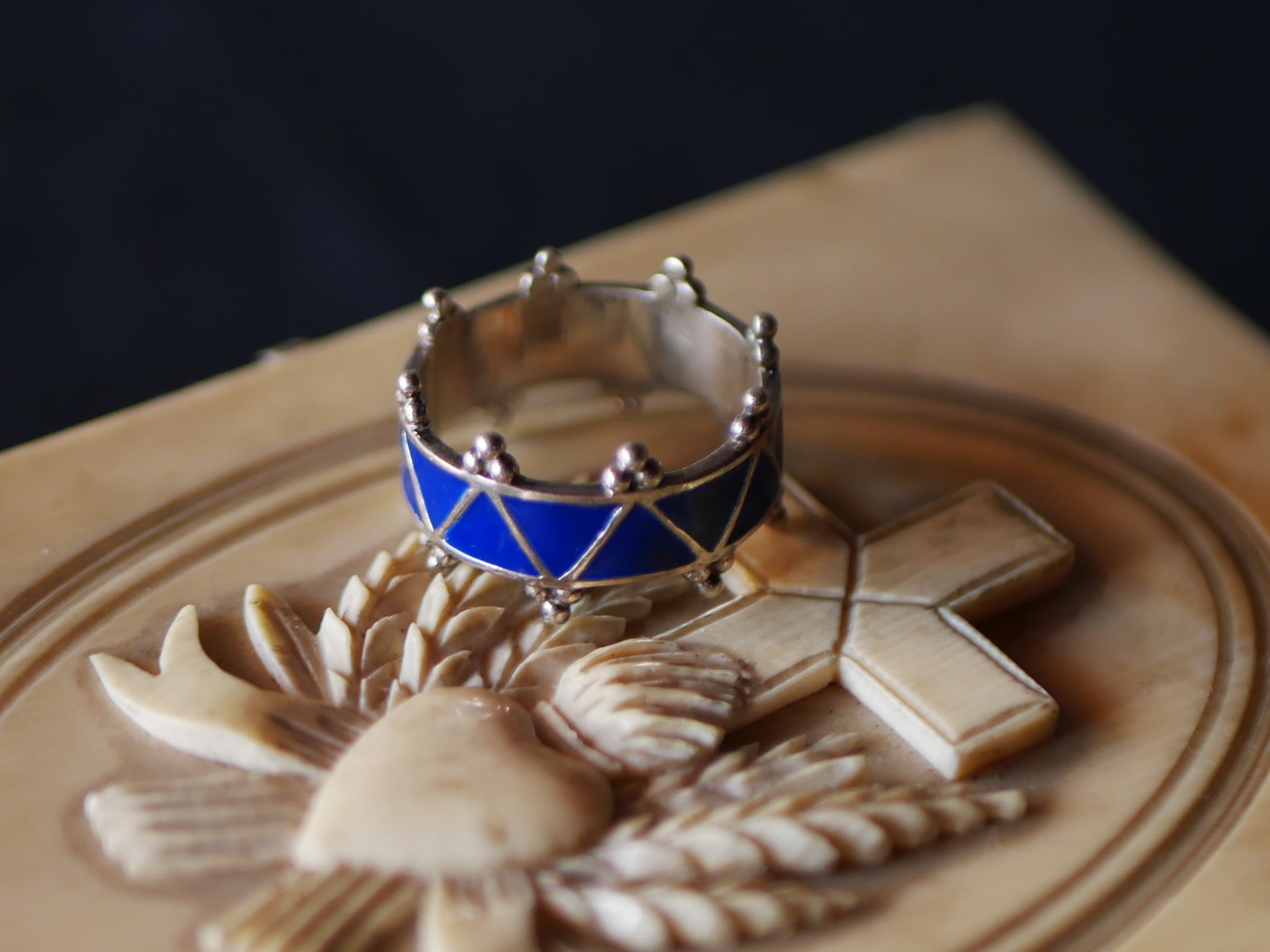 ブルーエナメル クラウン シルバーリング フランスヴィンテージ ヴィンテージアクセサリー