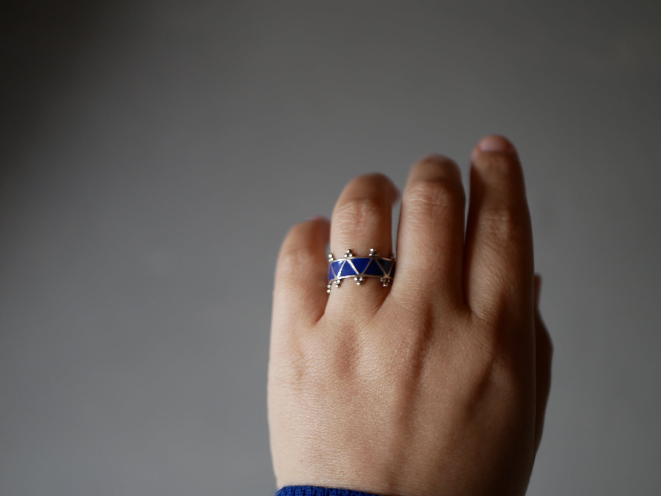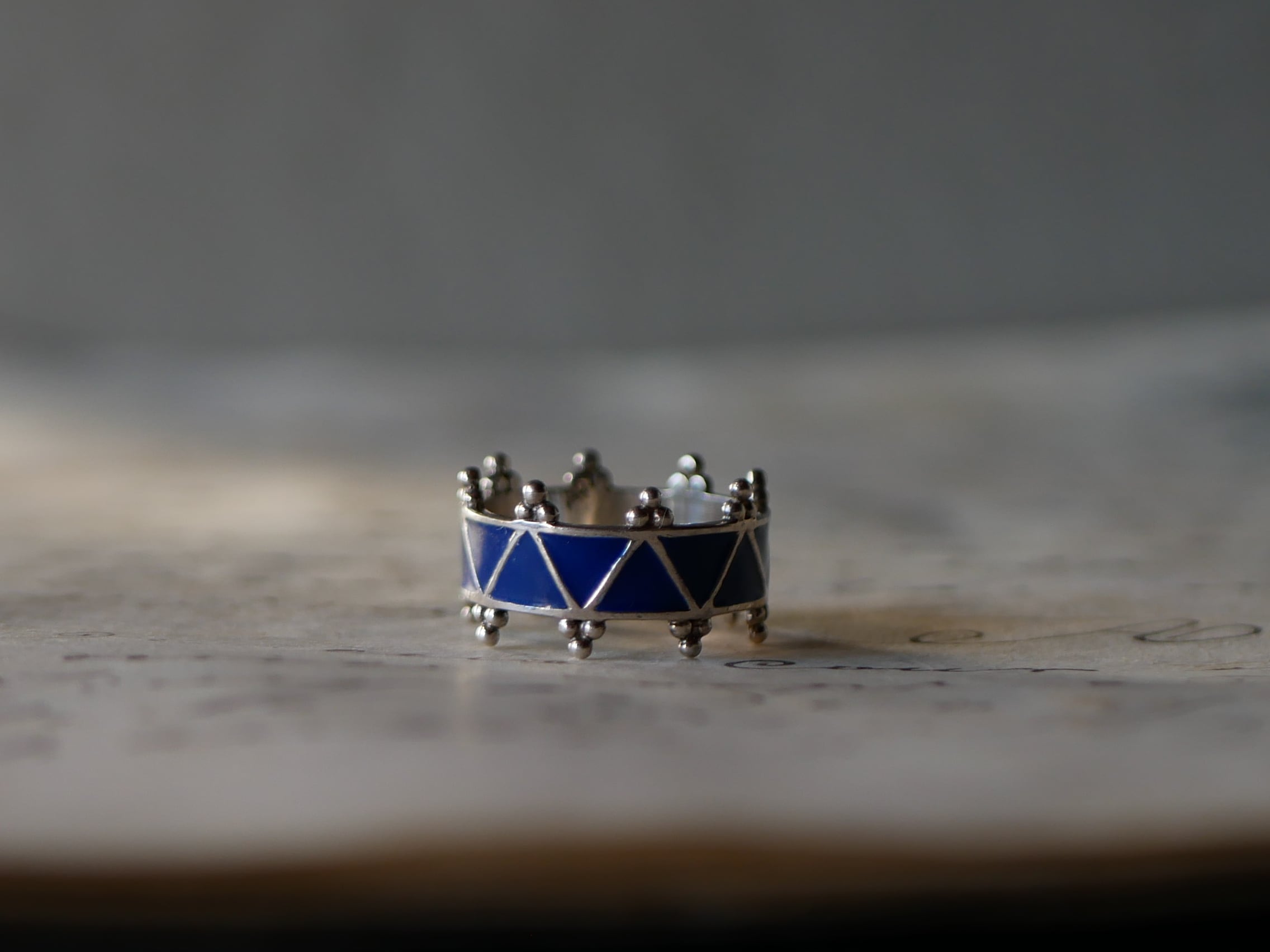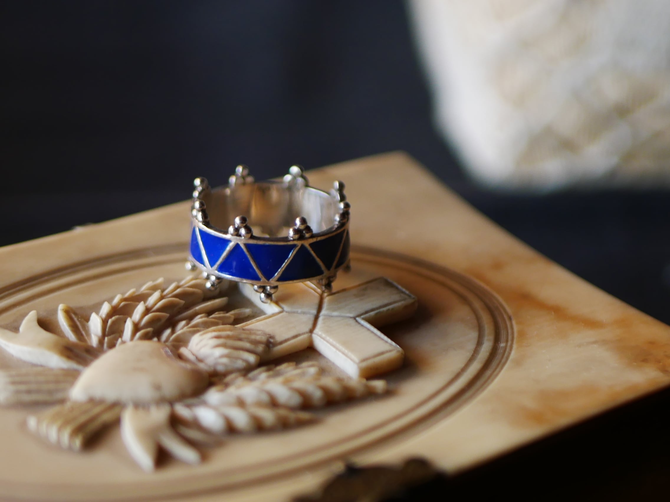 ブルーエナメルが綺麗なヴィンテージリングです。