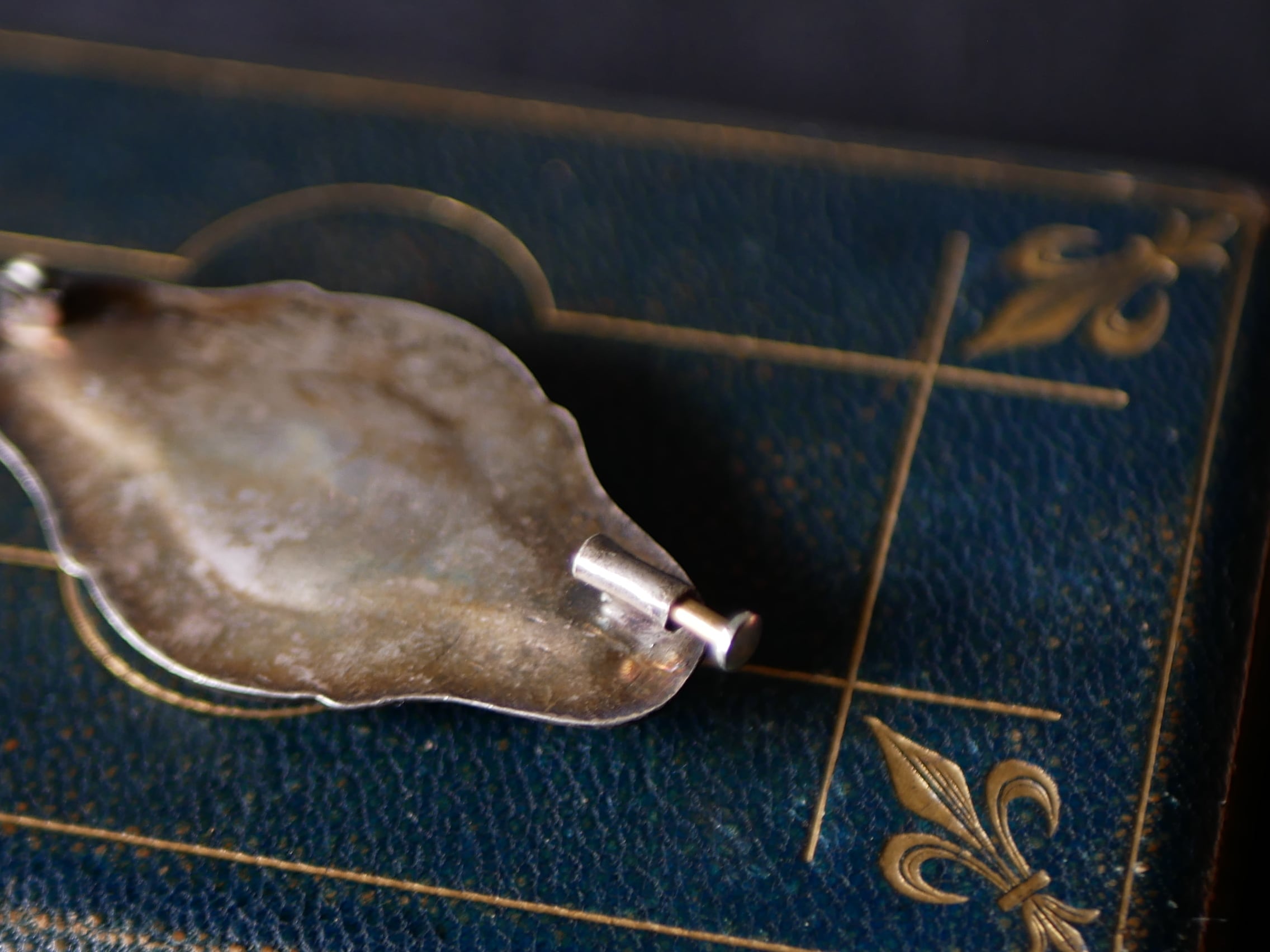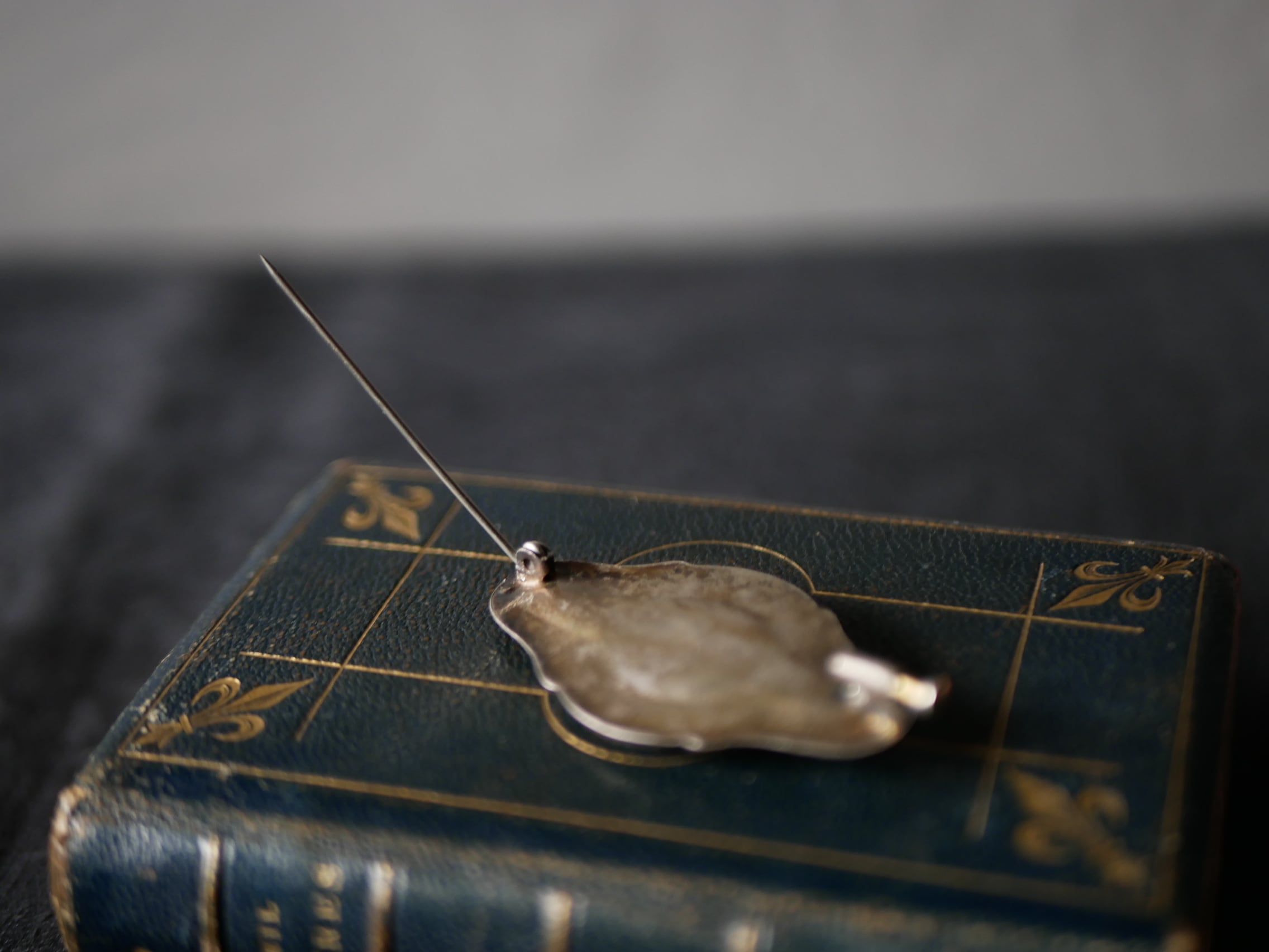 ほんの少しですが、石とブローチ本体の間に接着剤のようなものが見られます。