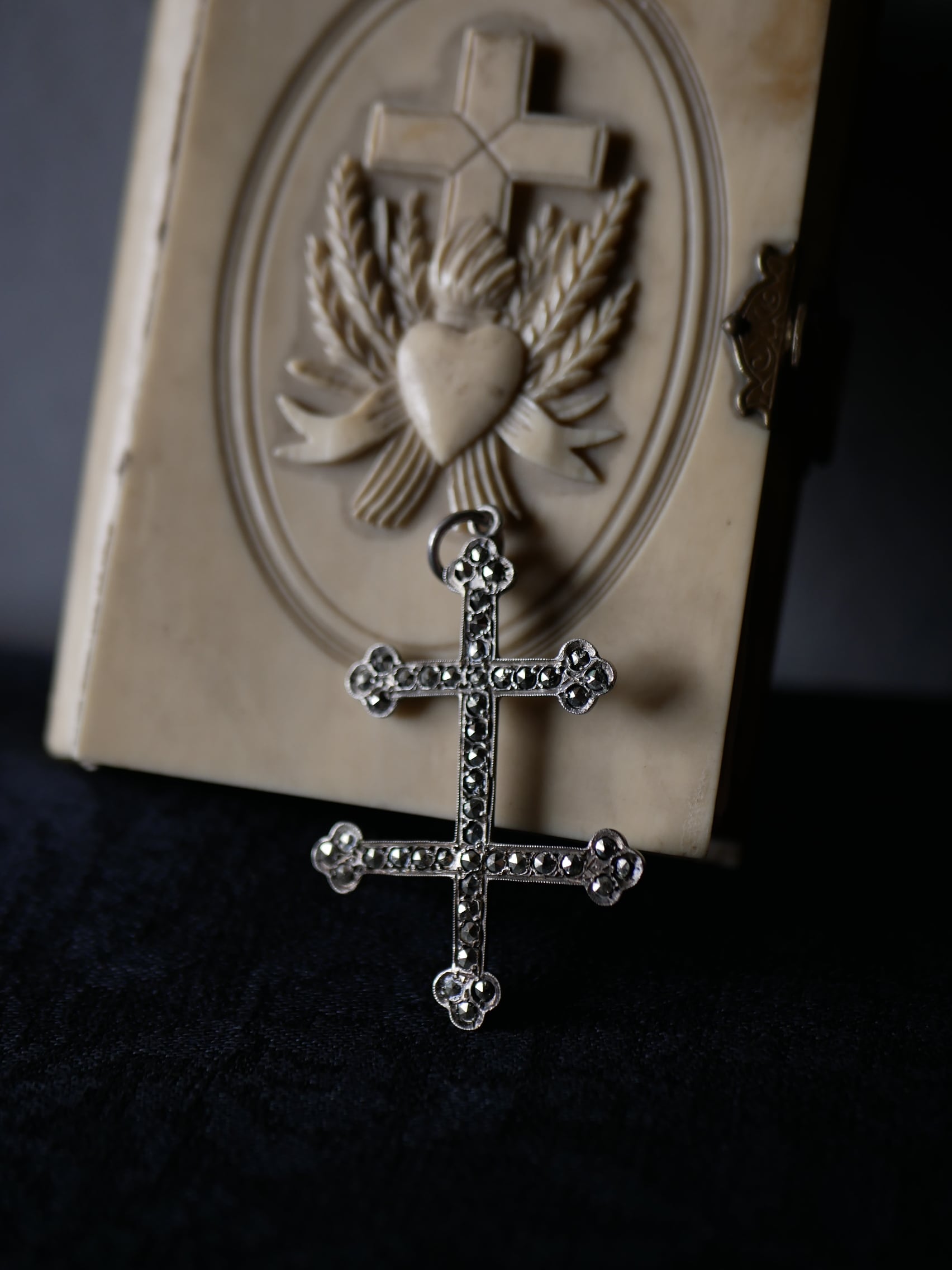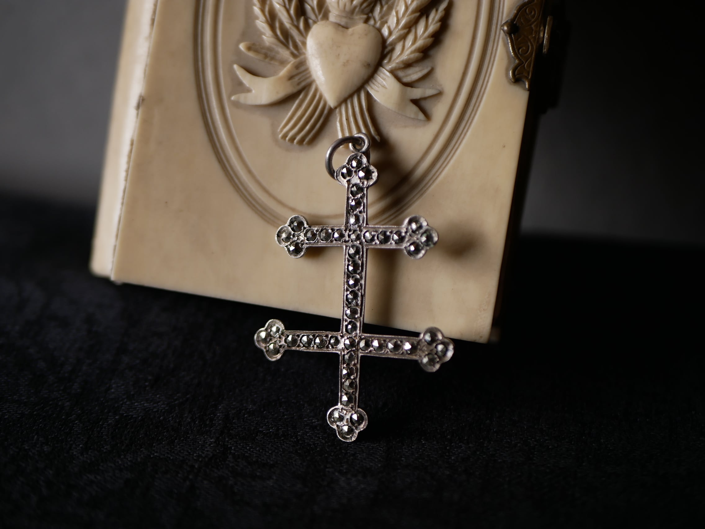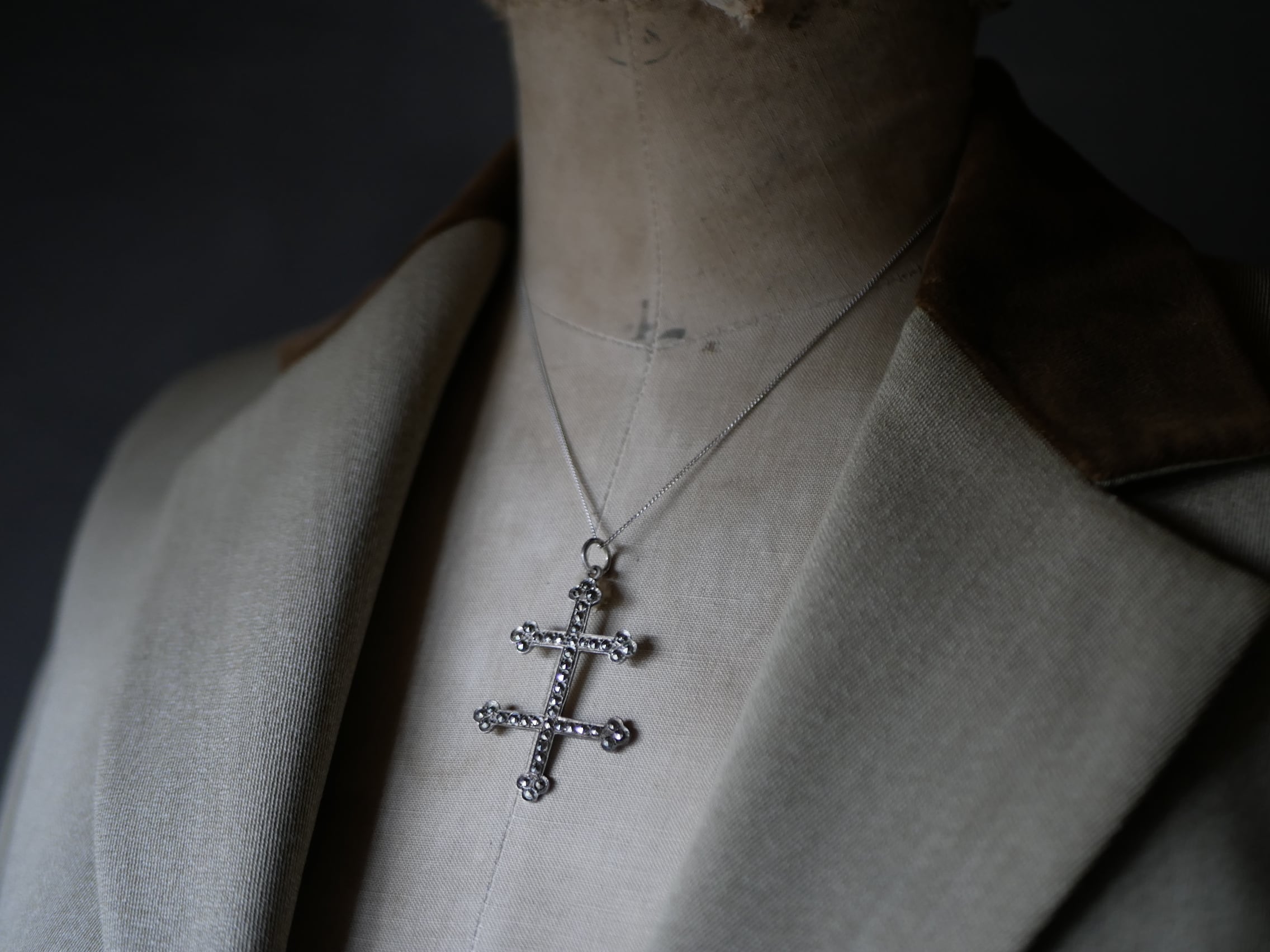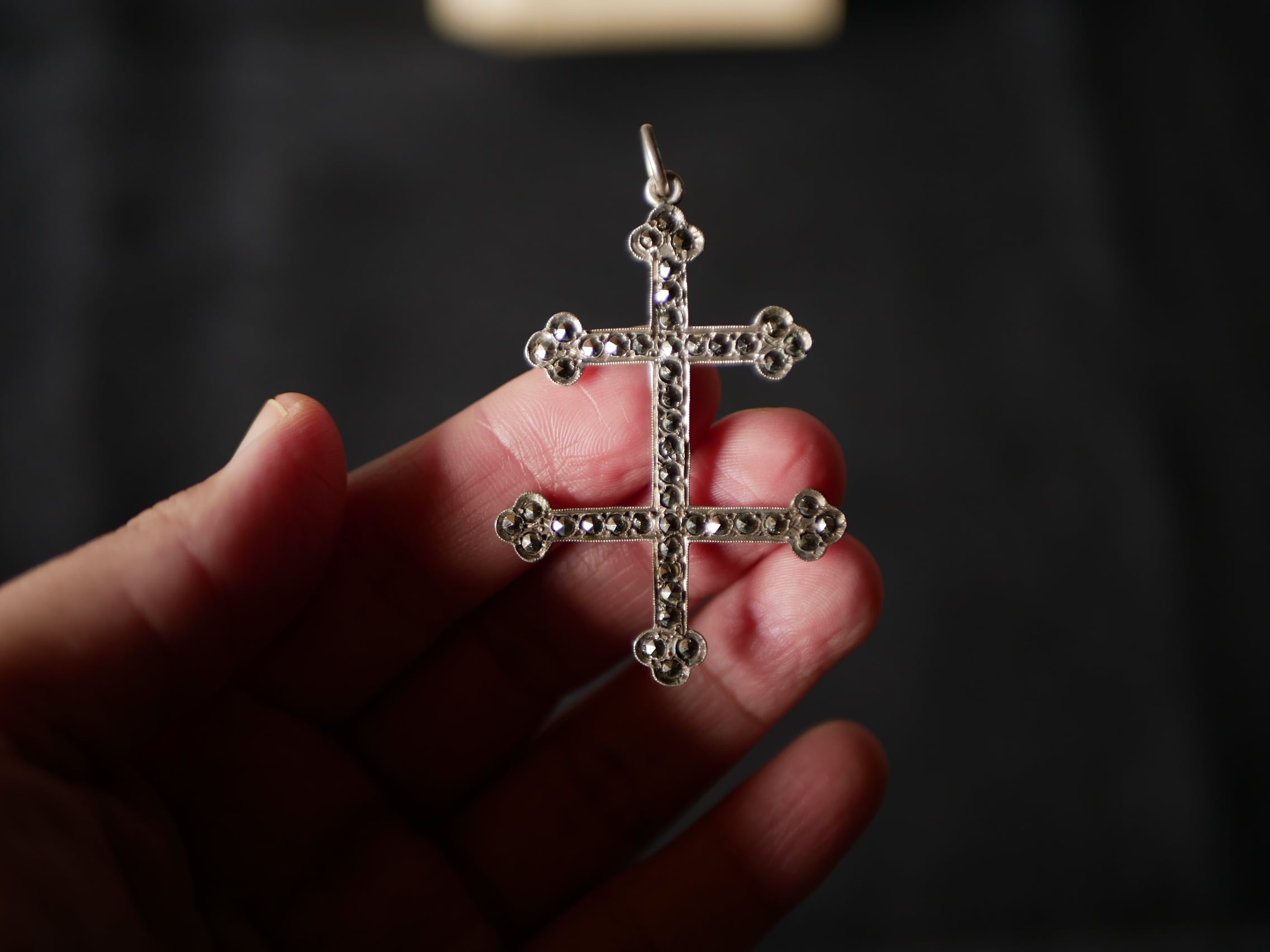 ロレーヌ十字がマーカサイトで輝く美しいクロスペンダントです。