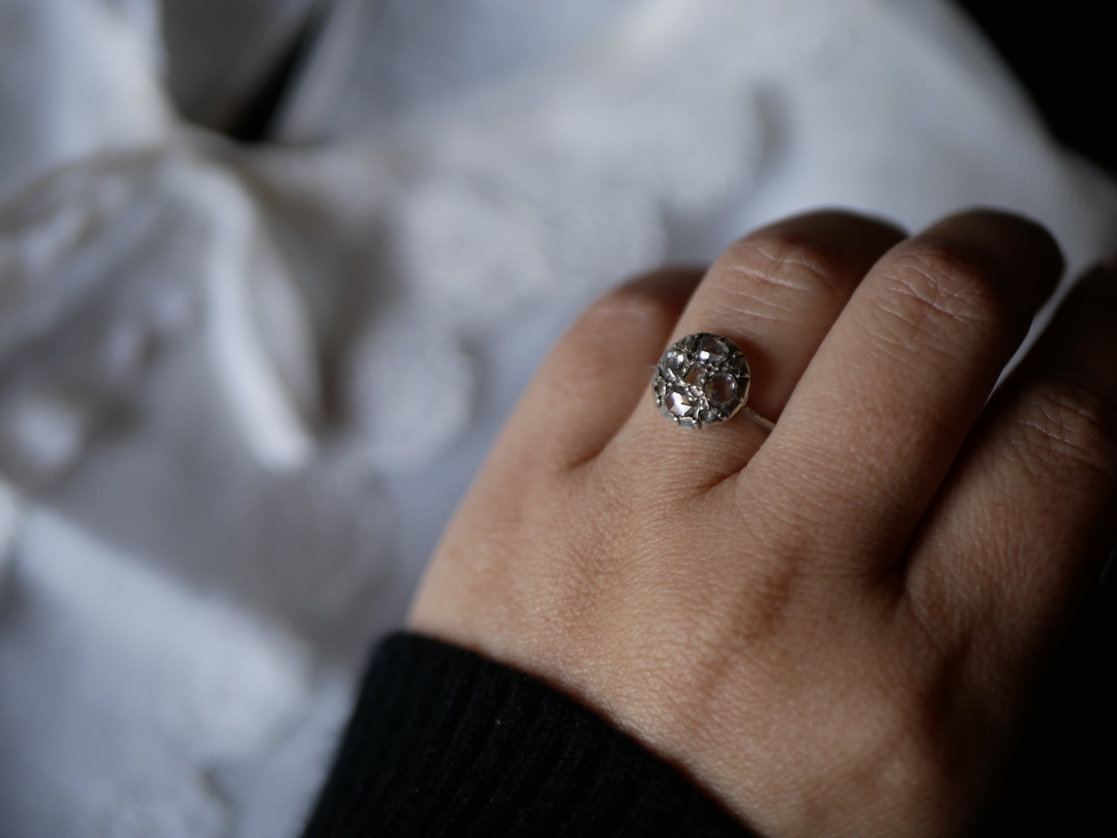 ローズカットダイヤモンド シルバーリング フランスアンティーク アンティークジュエリー