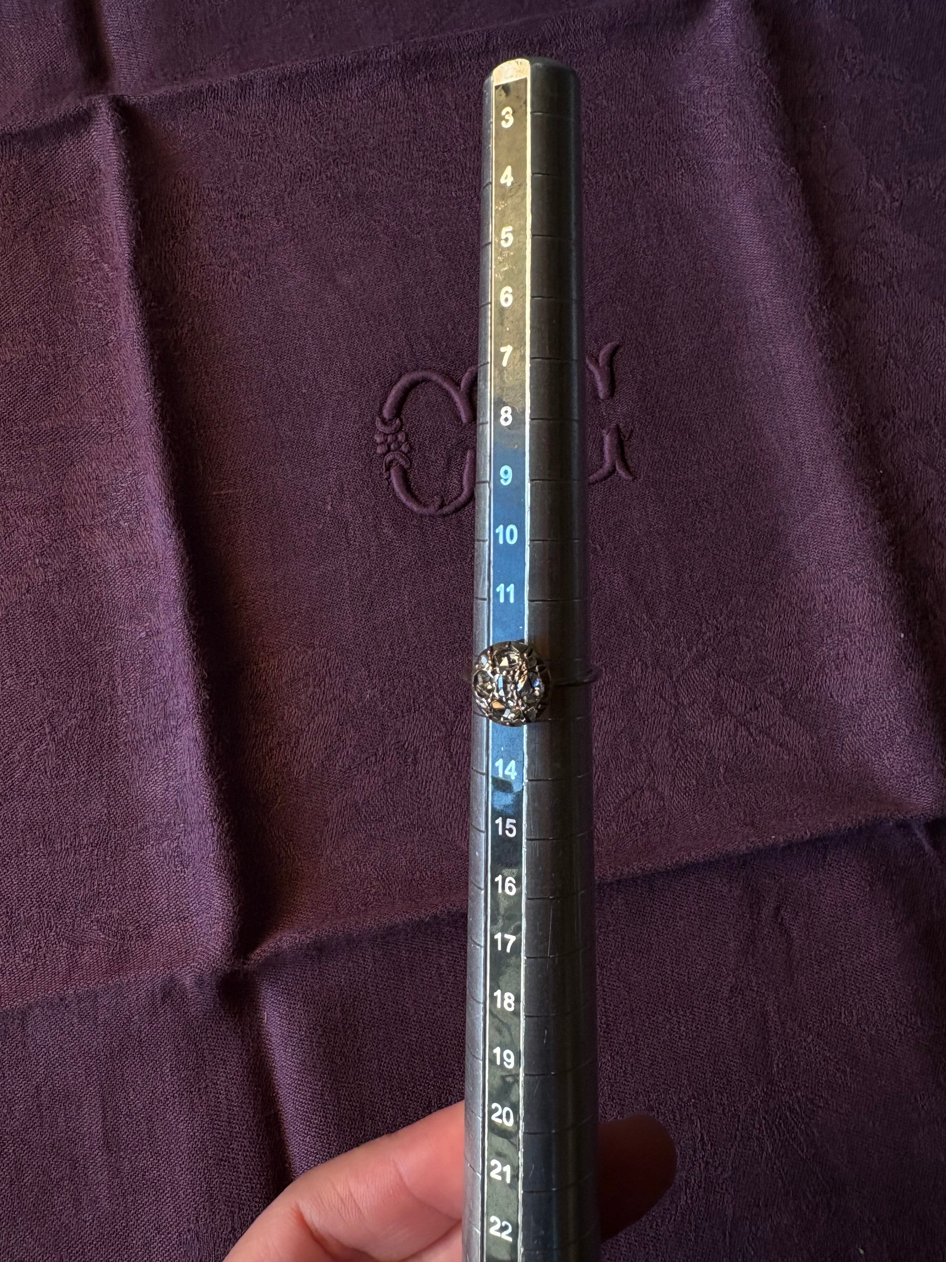ハンドカットのローズカットダイヤモンドがちりばめられた個性的なアンティークリング。