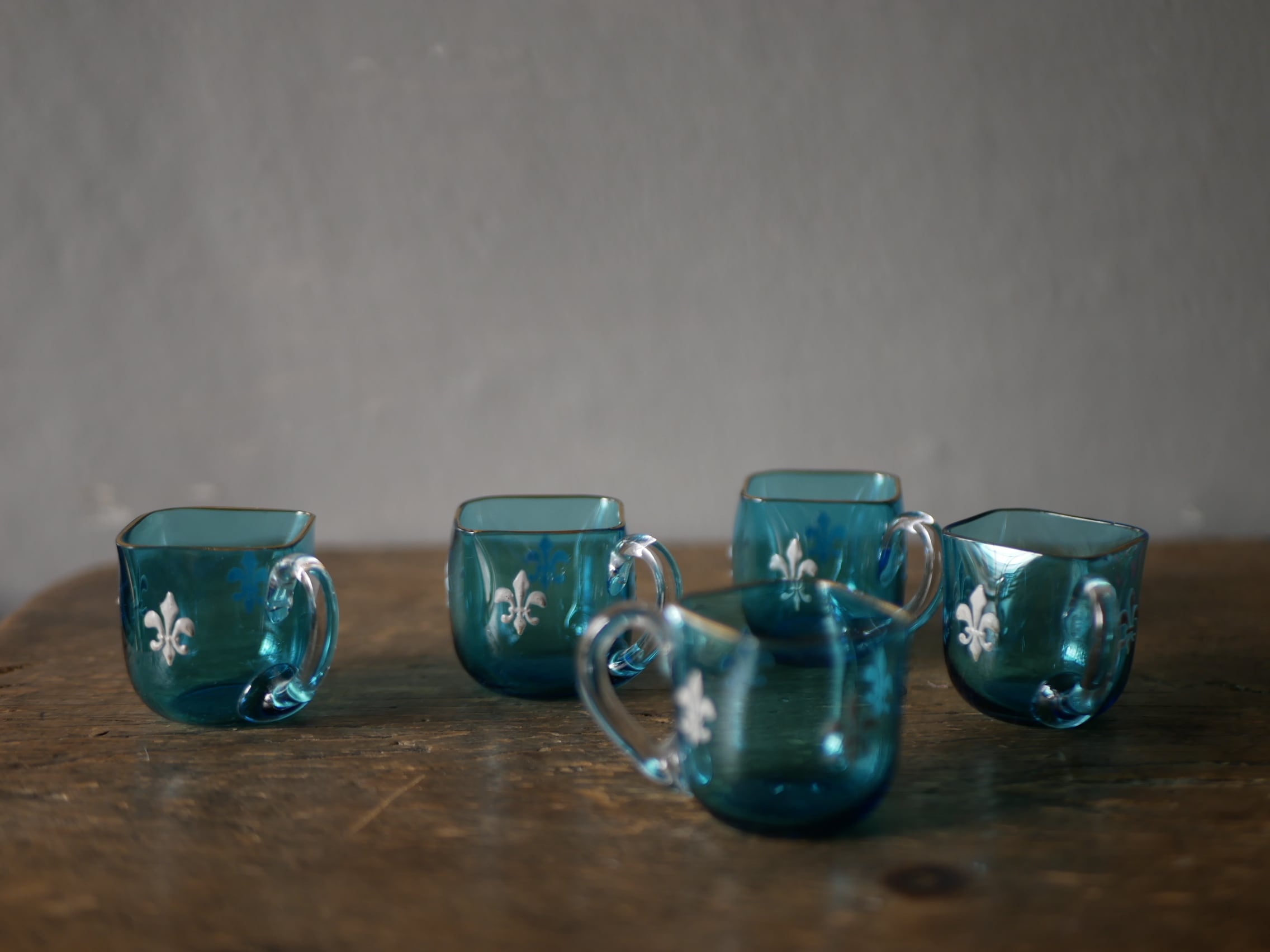 ブルーガラスに白のエナメル、それから金彩も素敵です。