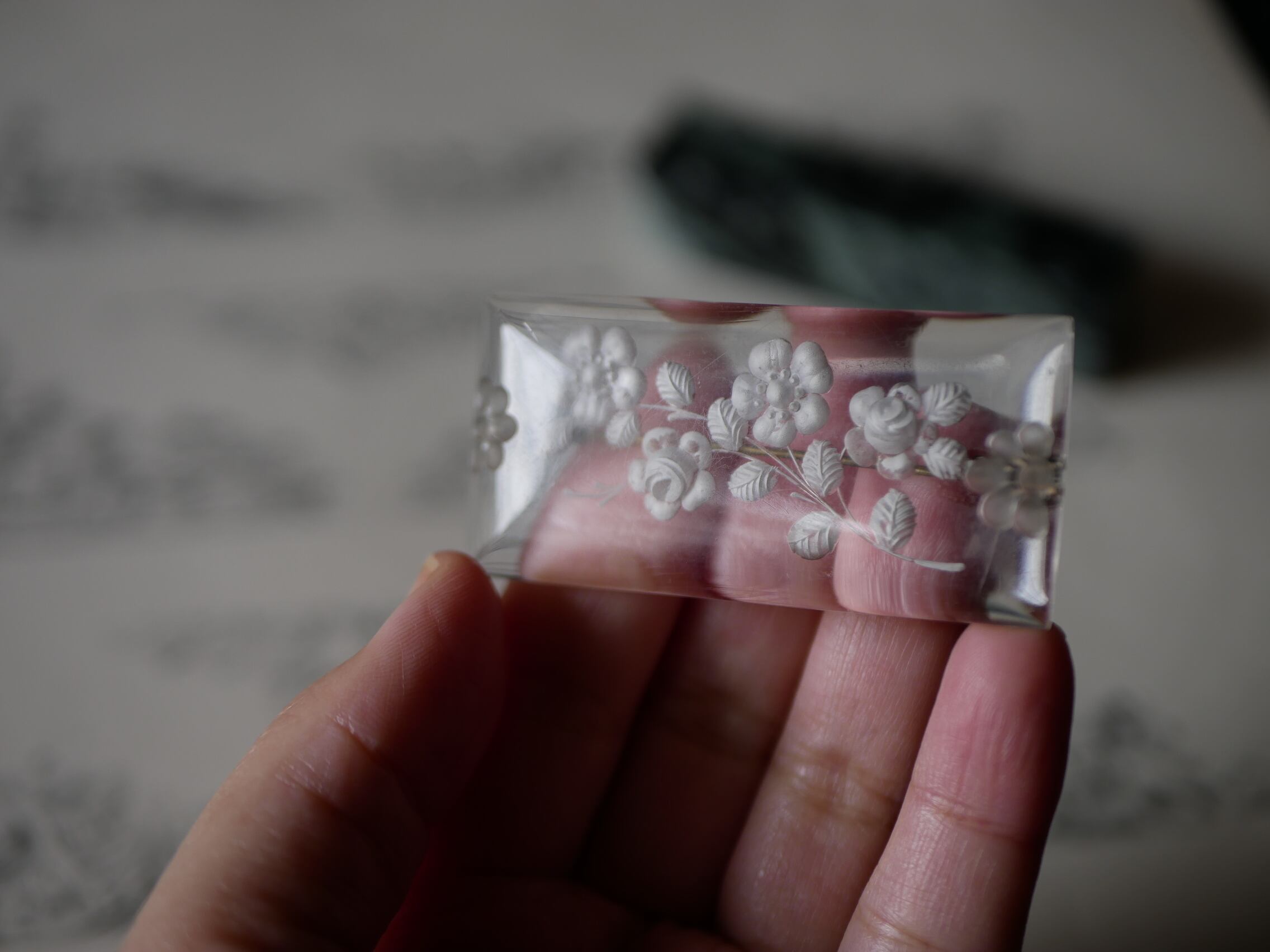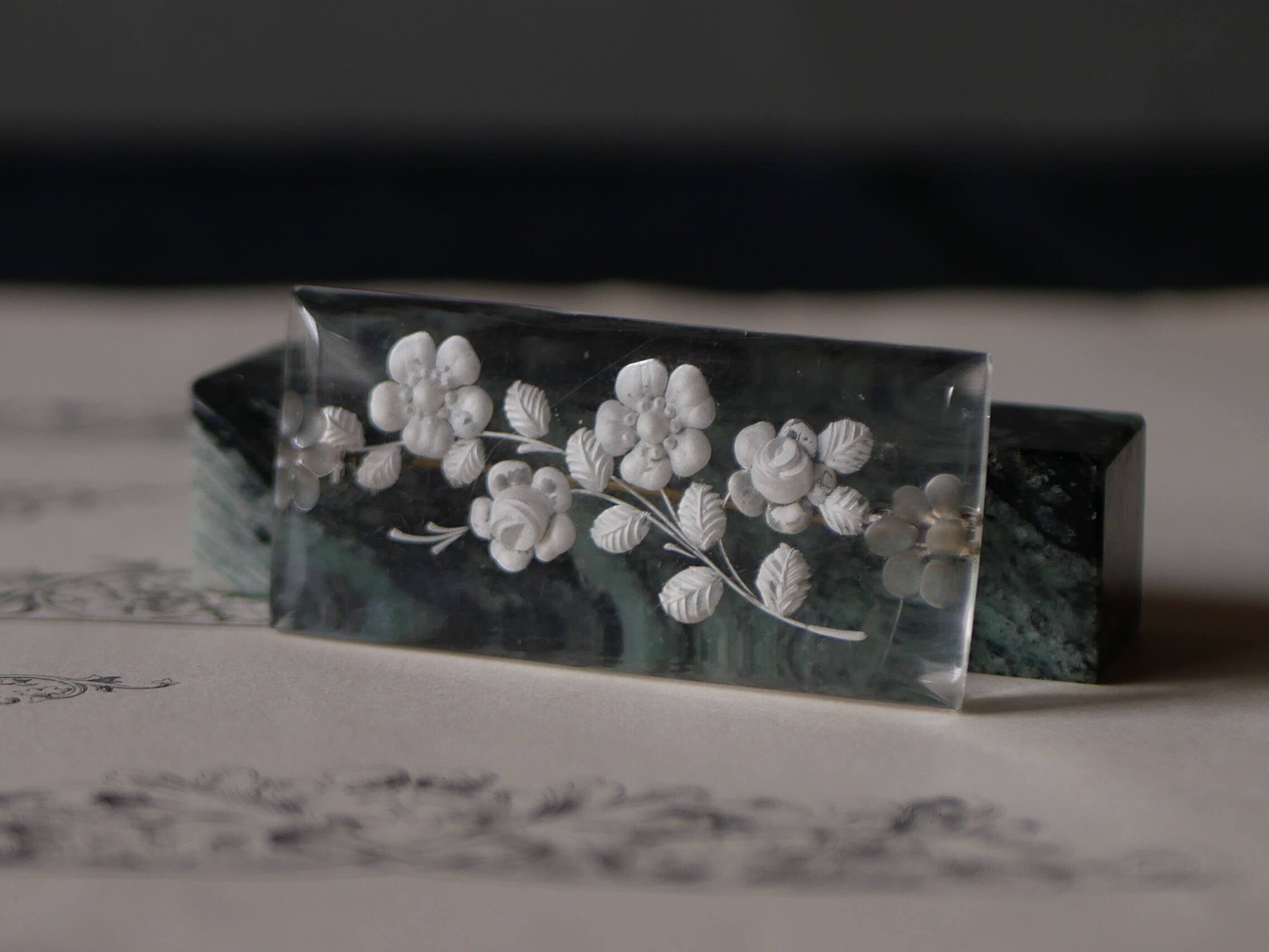枠がなく、なめらかな質感が素敵なルーサイトブローチです。