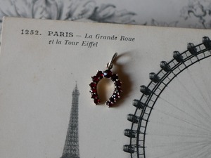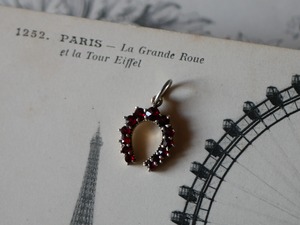 純銀 ホースシュー ガーネット ペンダントトップ ヨーロッパヴィンテージ ブロカント