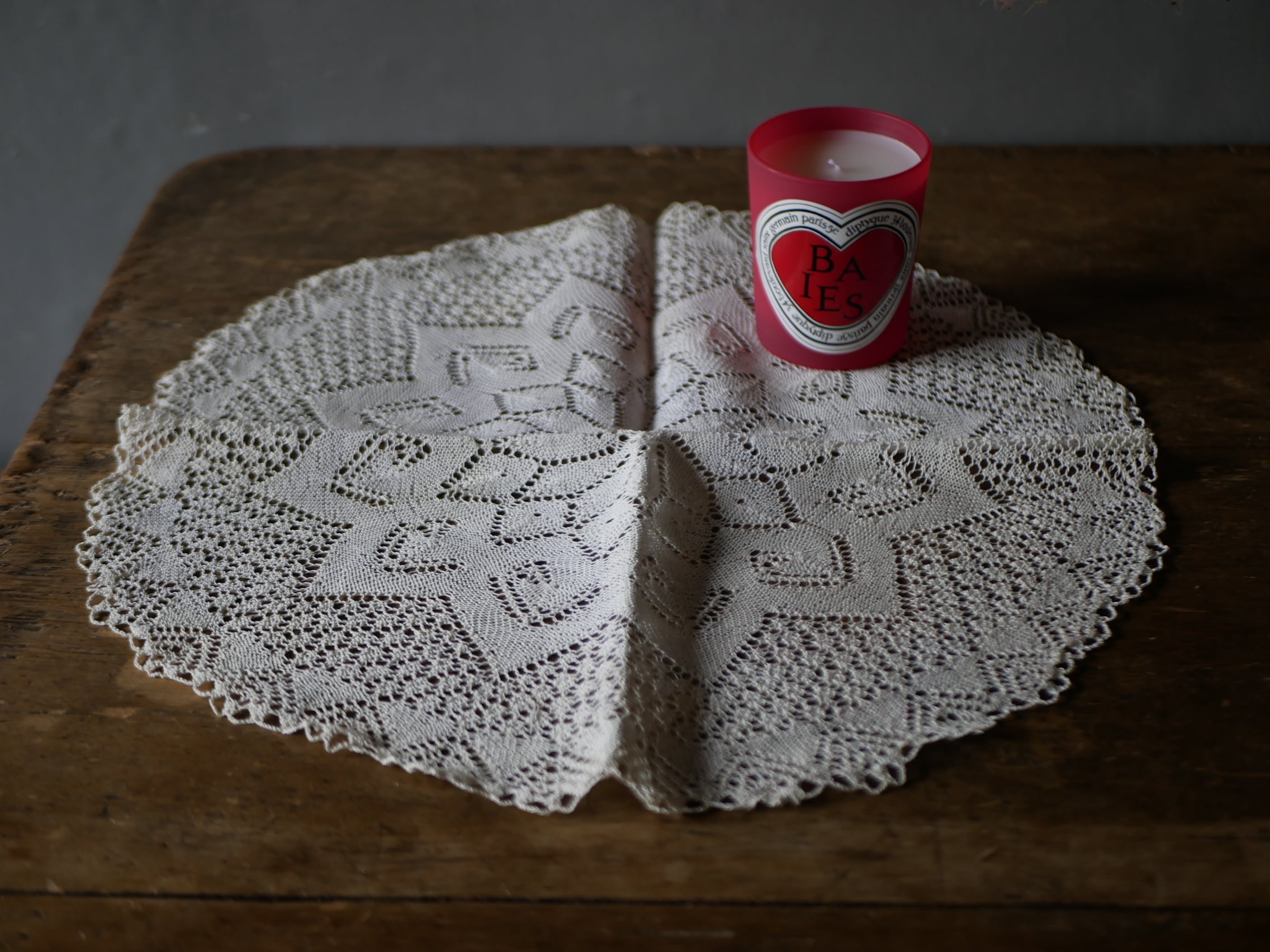 細かく編まれたレースのプレイスマット。