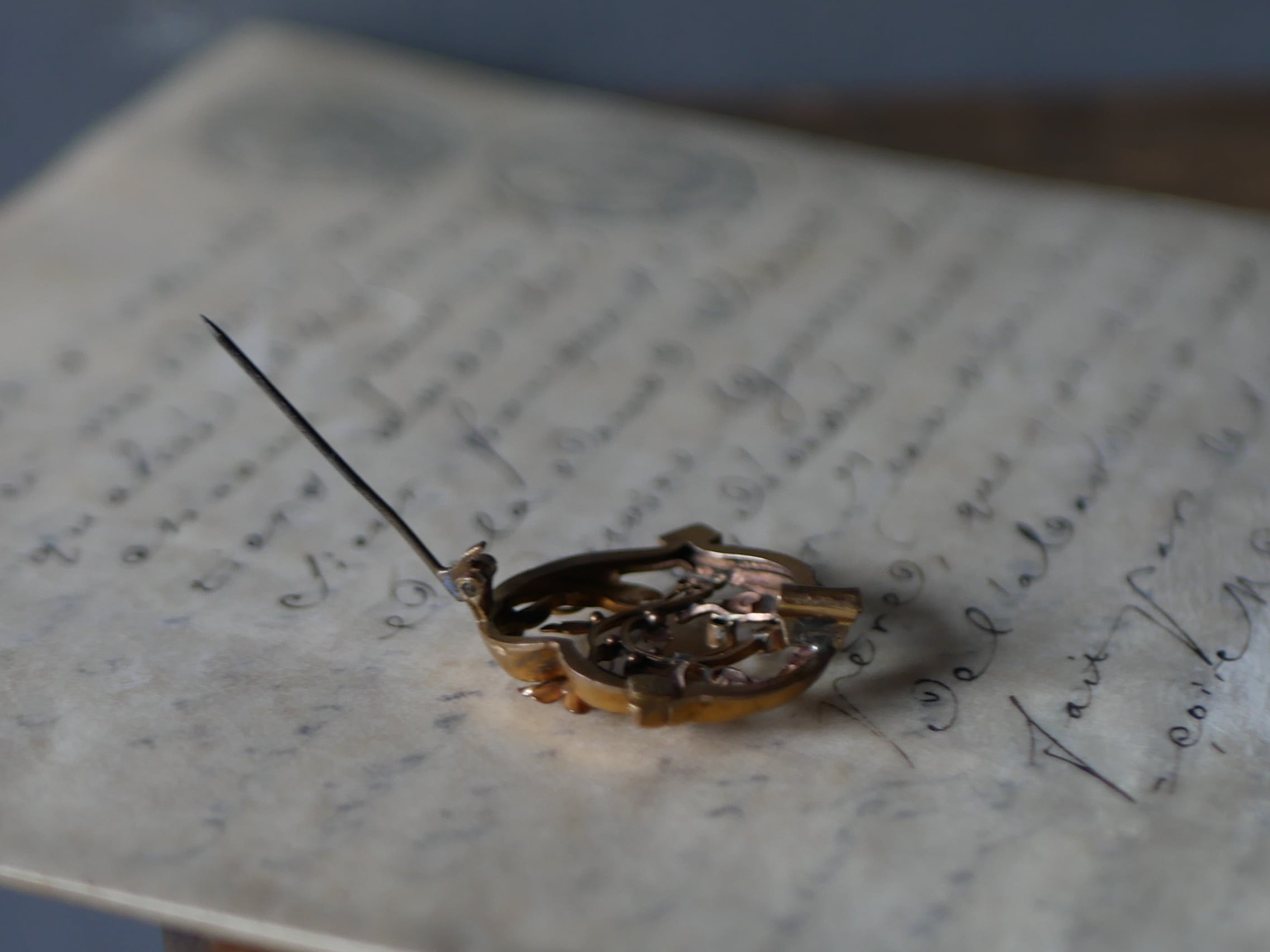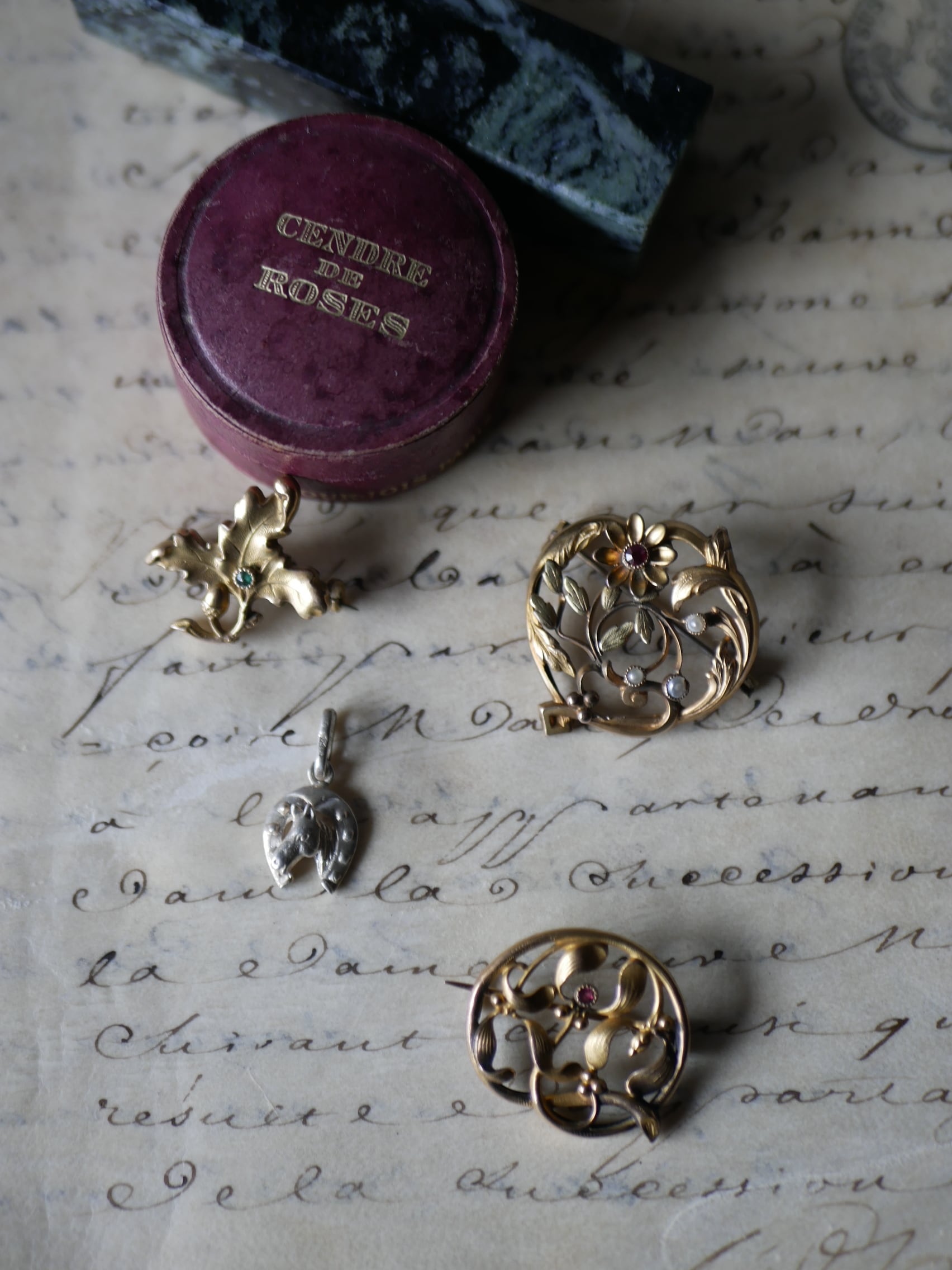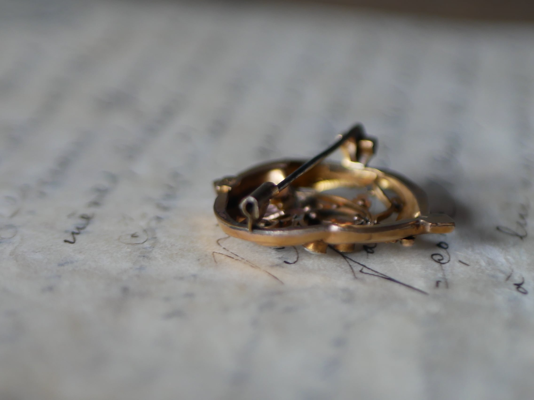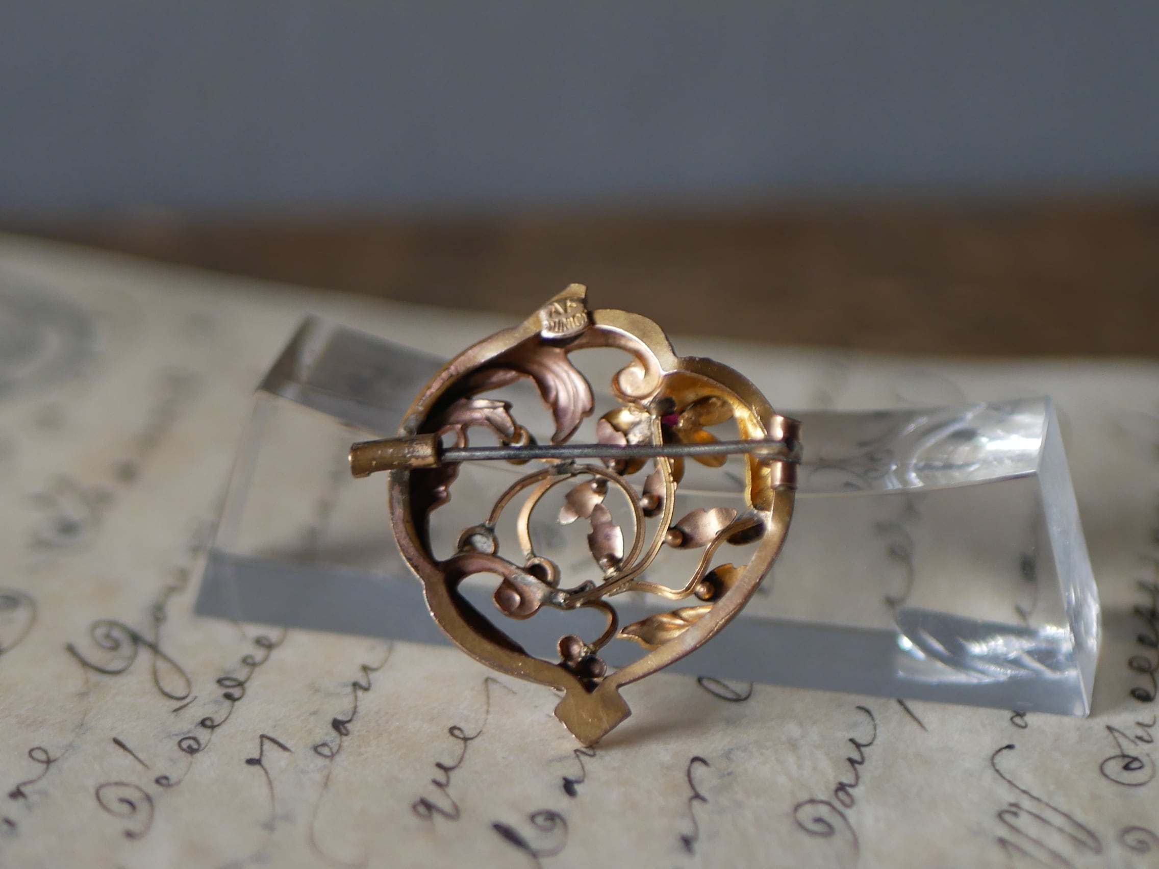ゴールドプレート 赤い石とシードパール ブローチ フランスアンティーク アンティークのある暮らし