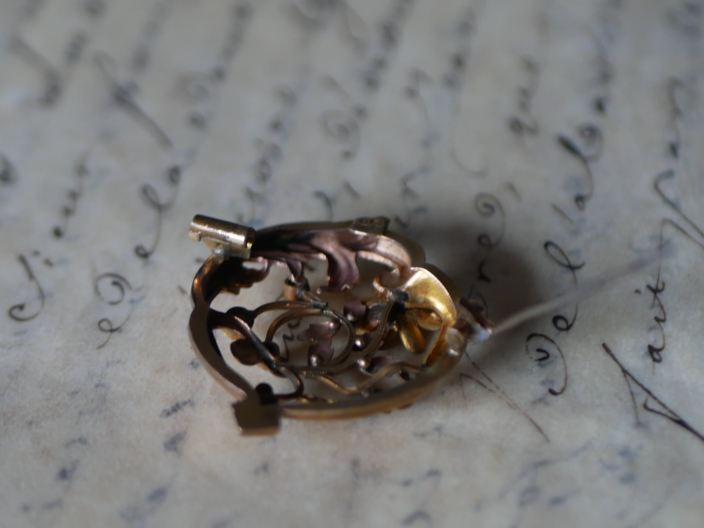ルーペで見ると真ん中のシードパールに僅かな欠けがみられますが、肉眼では分かりません。