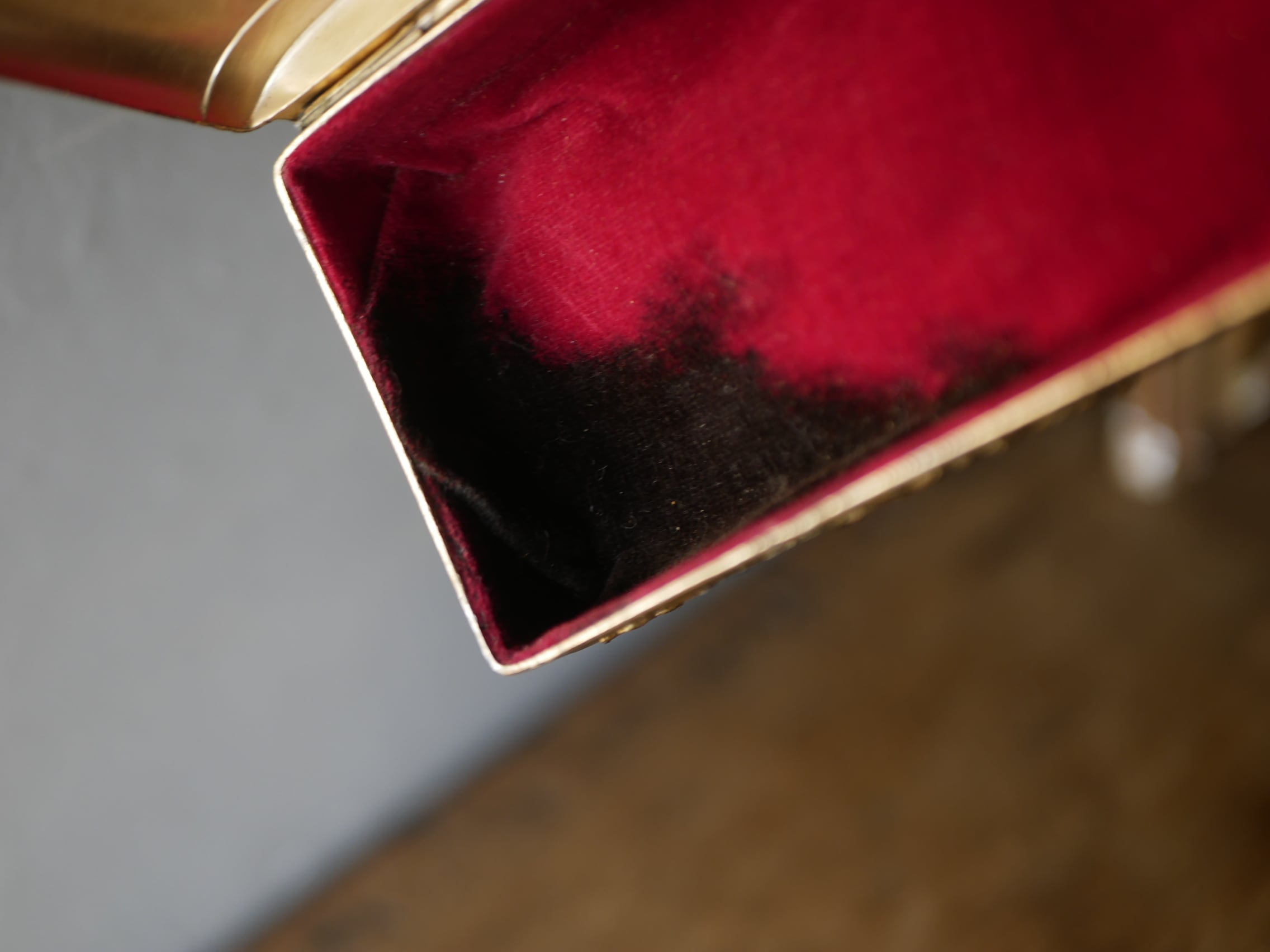 赤い内布が貼られていますが、黒い色になった部分があります。
