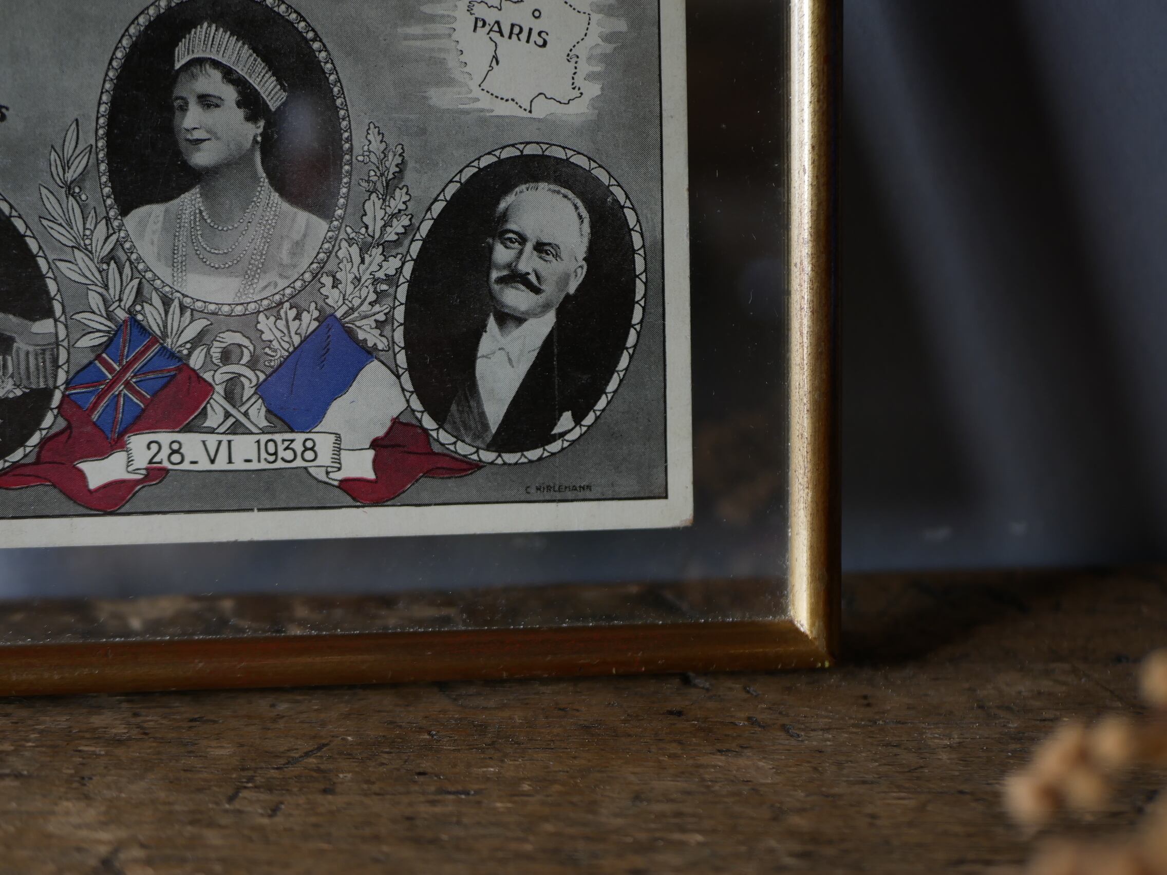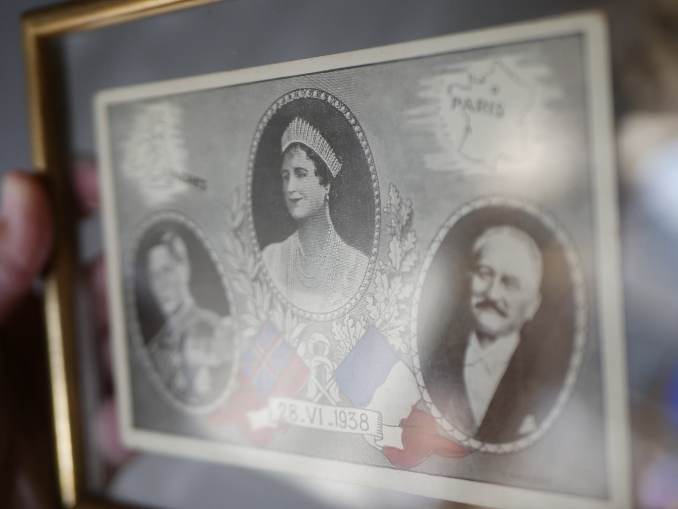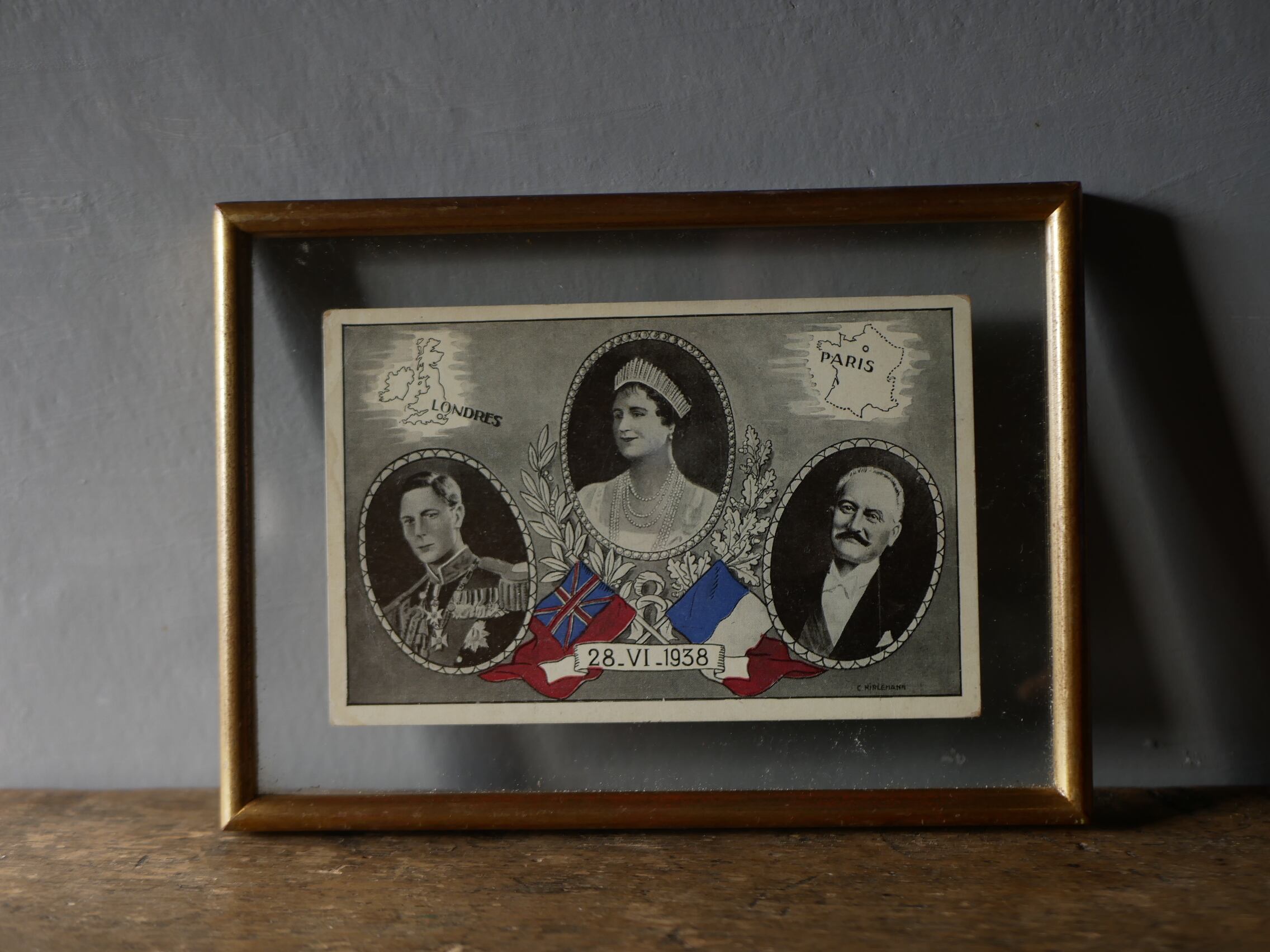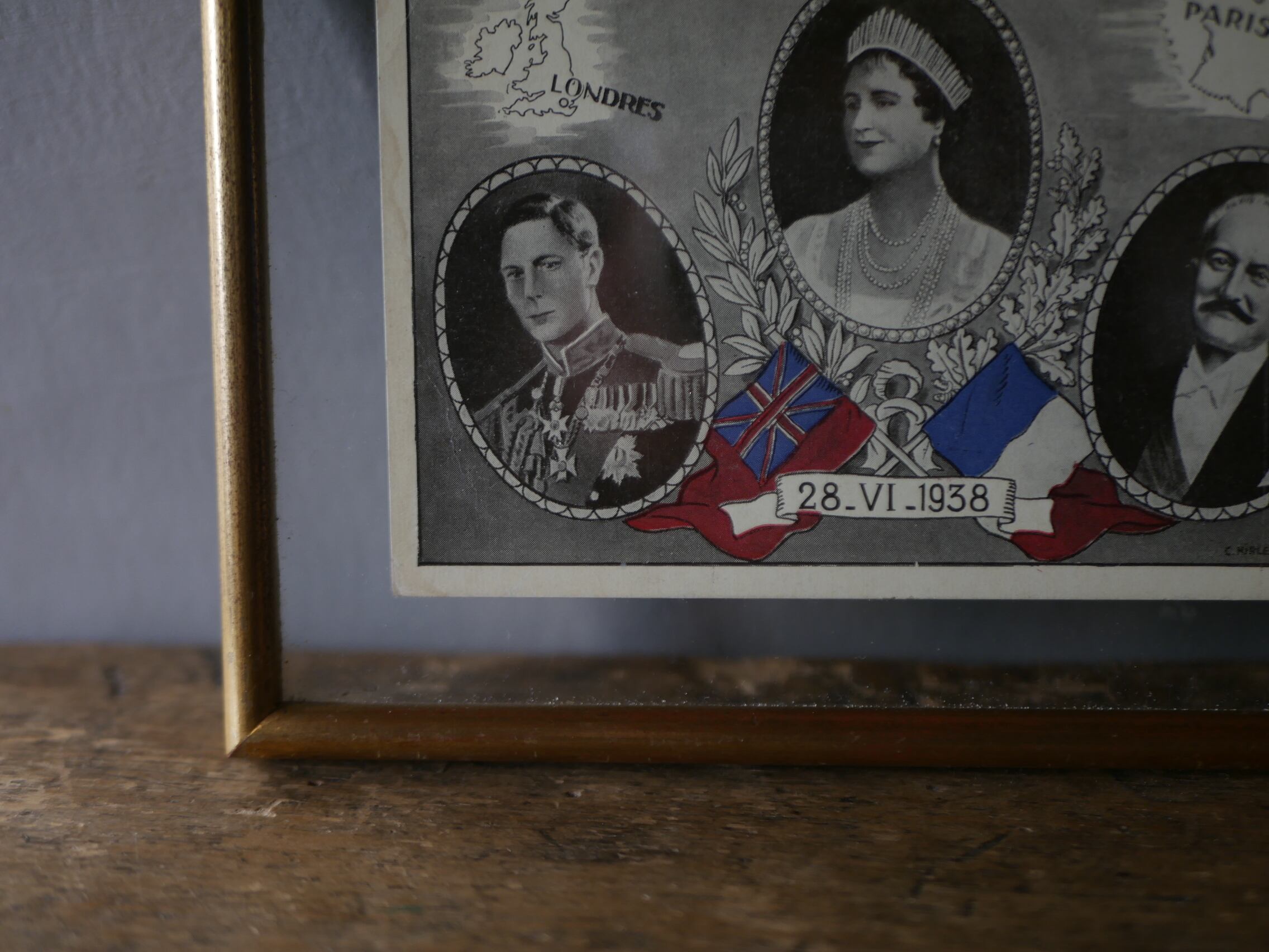 1938年6月28日、イギリス国王夫妻によるフランス公式訪問を記念して作成されたものだそうで、中央がエリザベス王妃、左はエリザベス王妃の夫ジョージ6世(当時はヨーク公アルバート王子)、