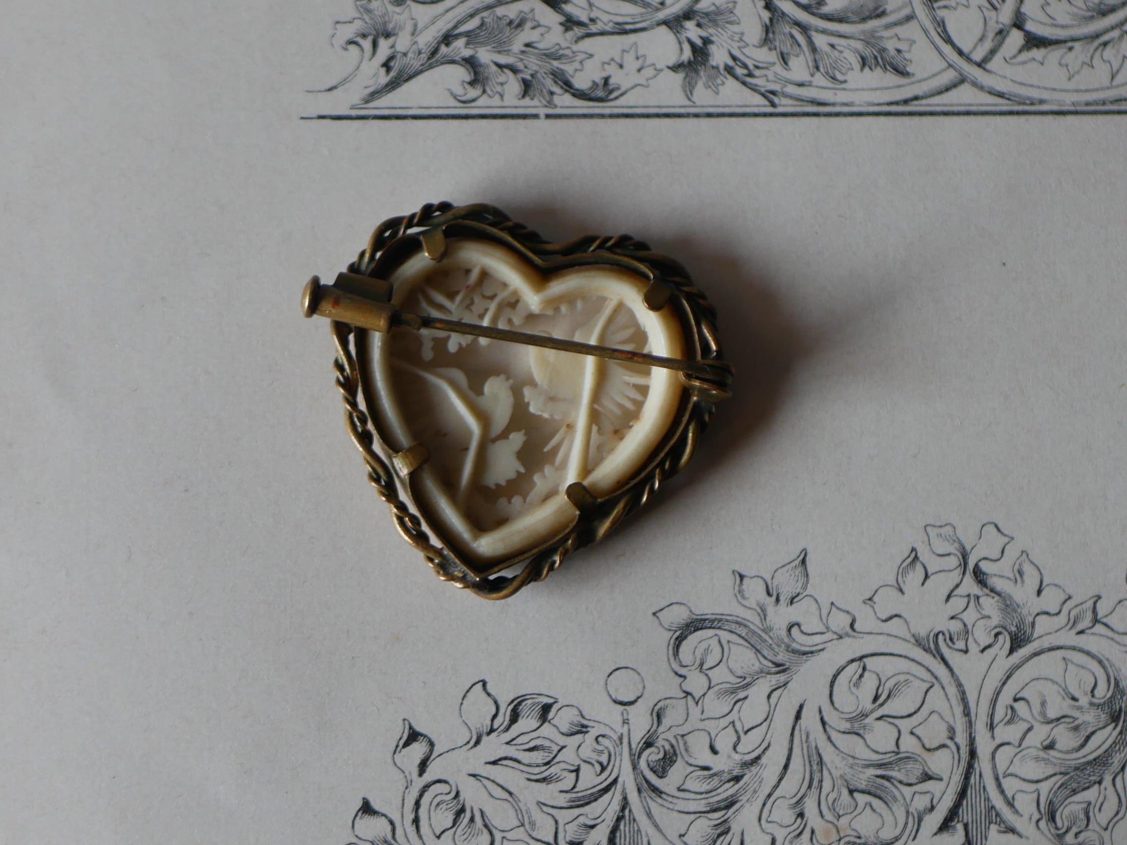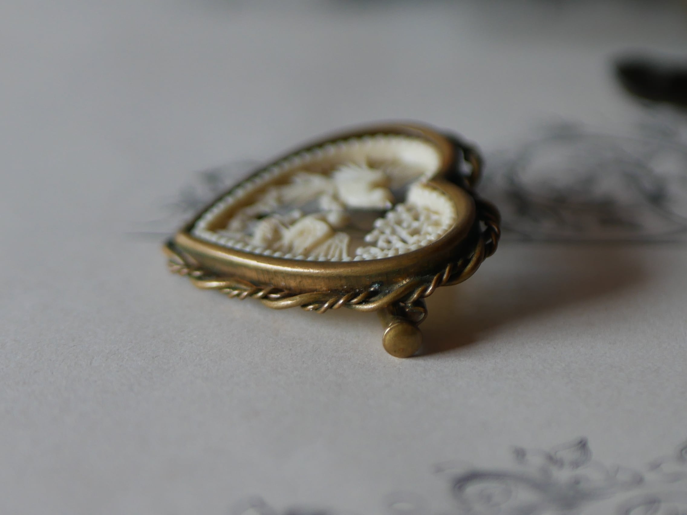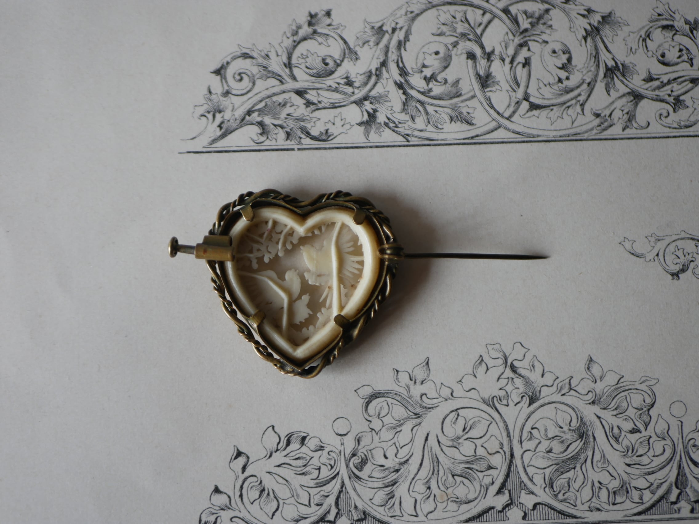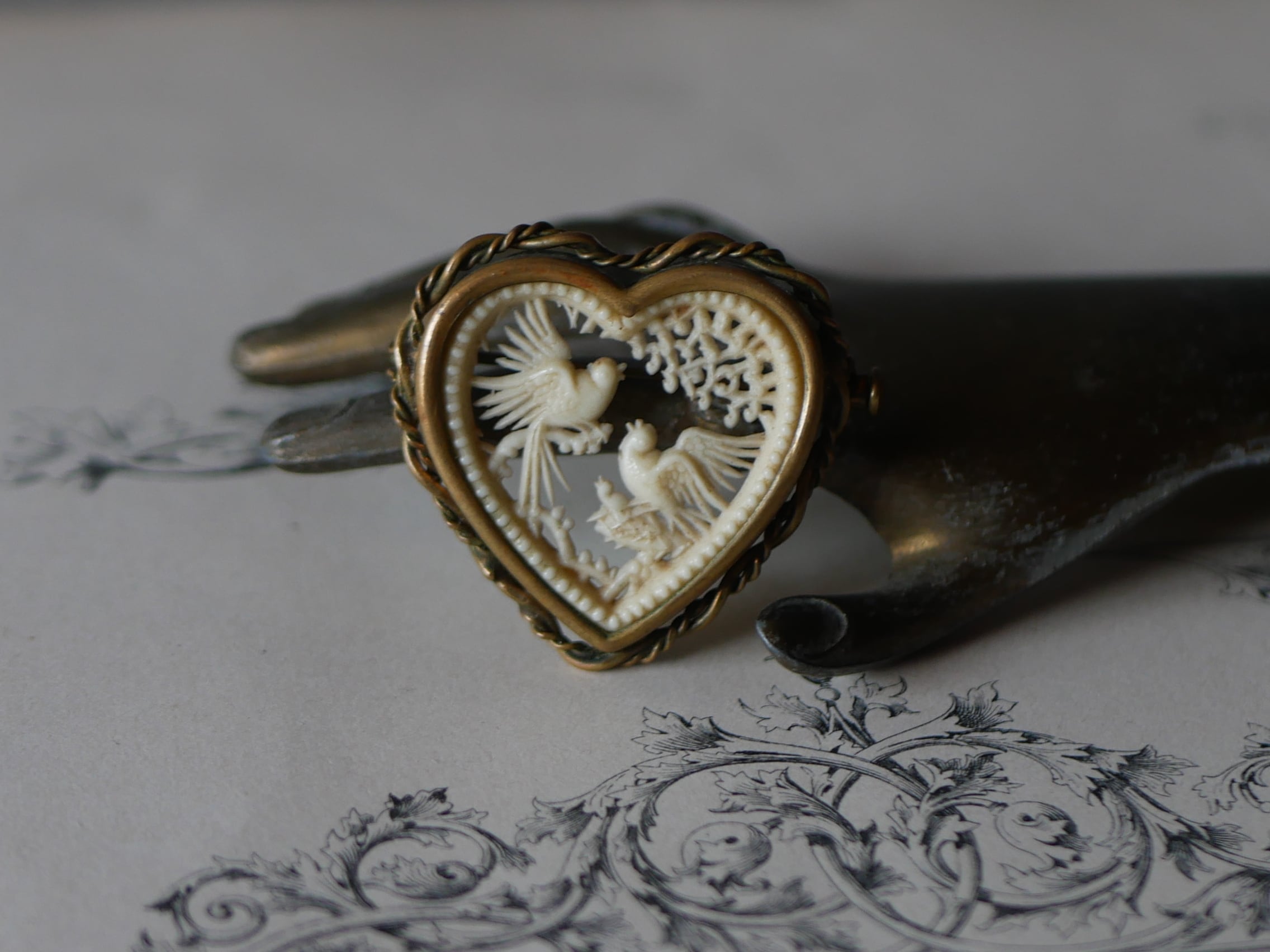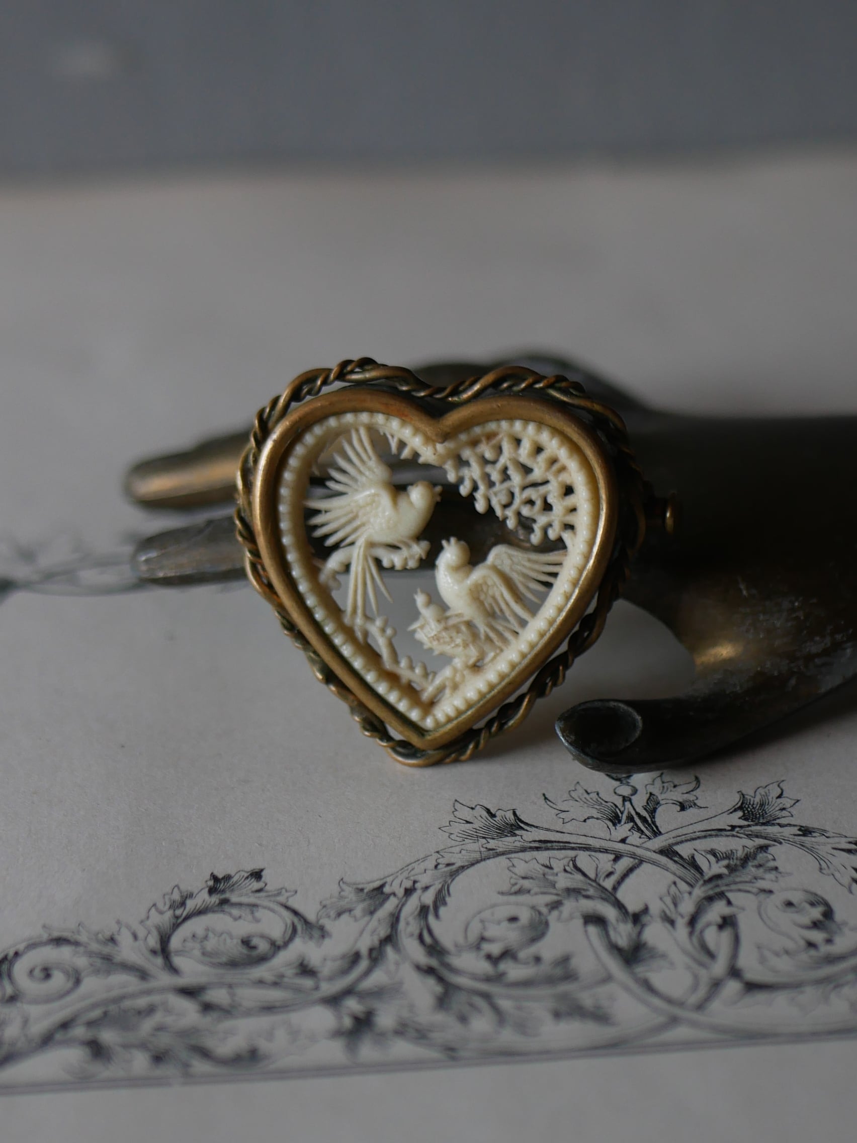 ハート形のヴィンテージブローチ バード 鳥 フランスヴィンテージ ブロカントのある暮らし