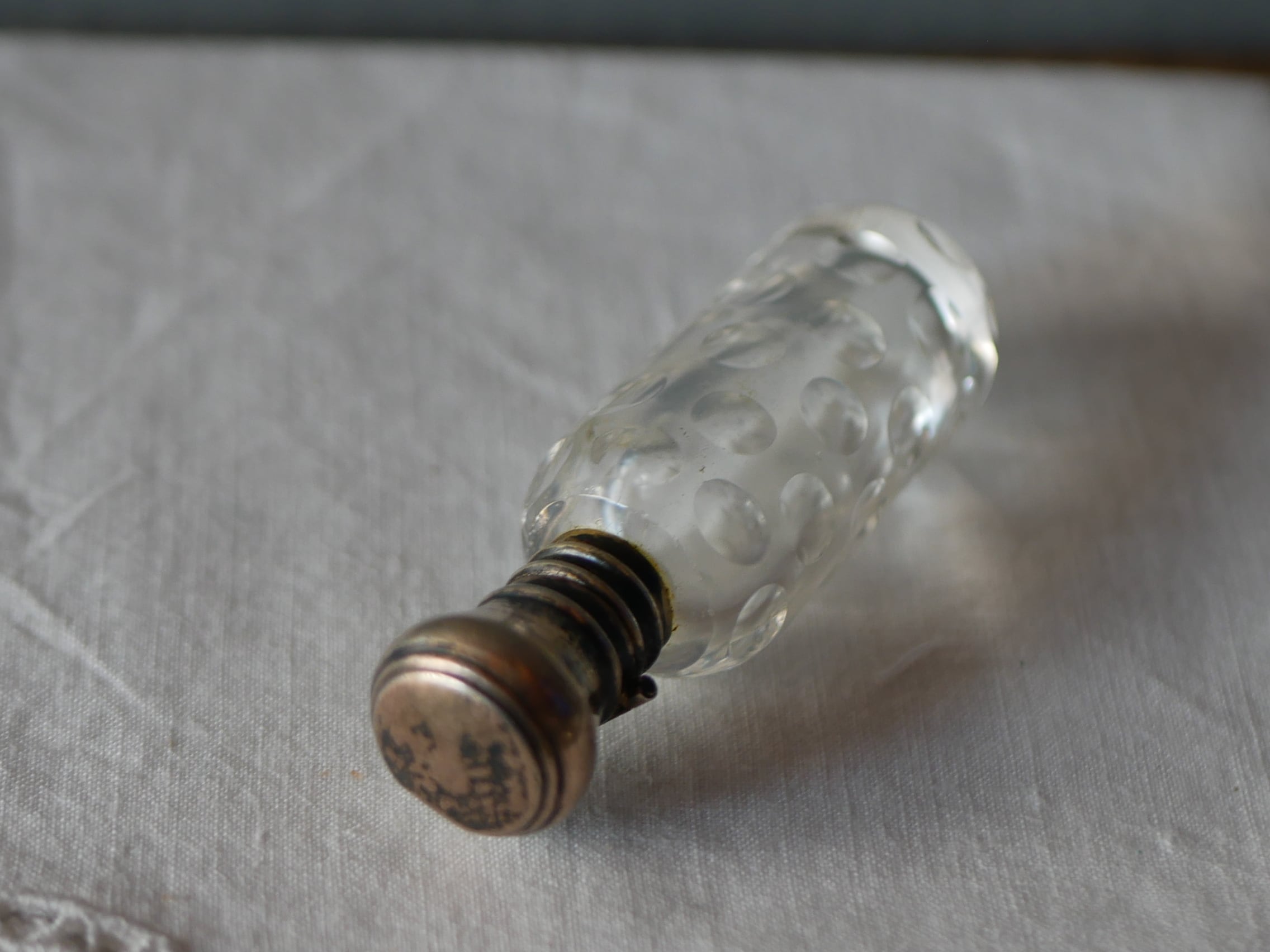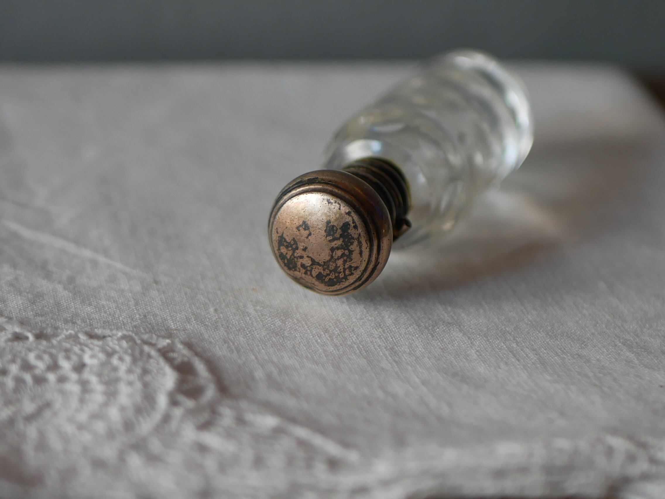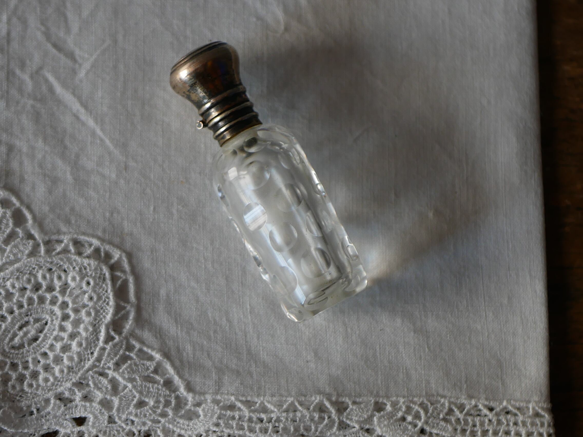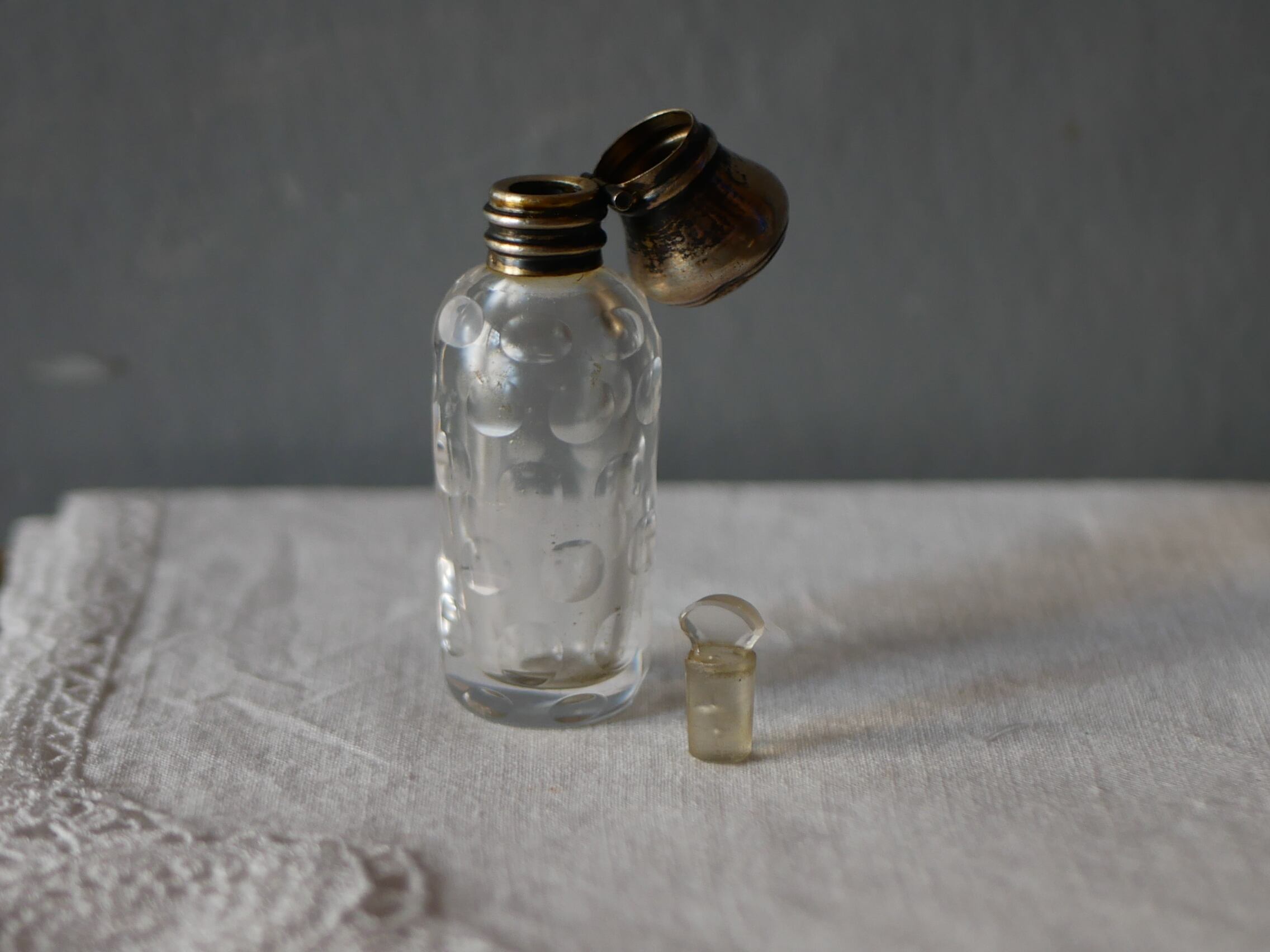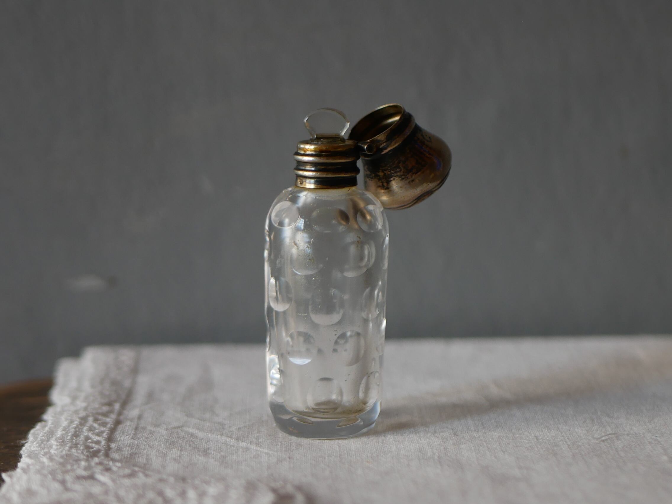 純銀製の蓋 小さなガラスの香水瓶 フランスアンティーク アンティークのある暮らし