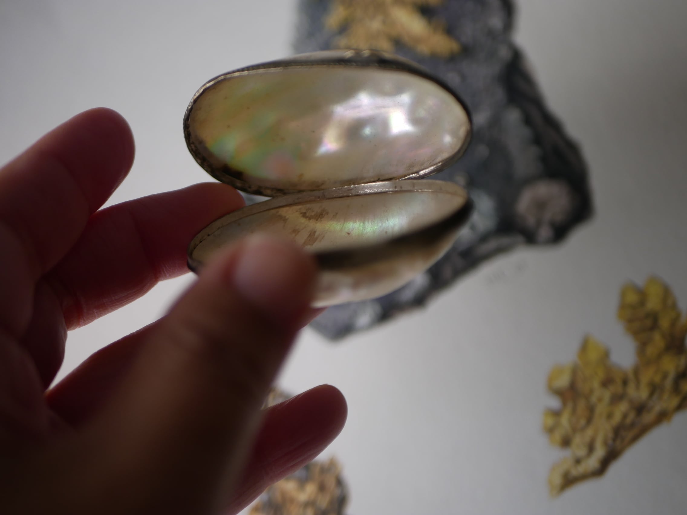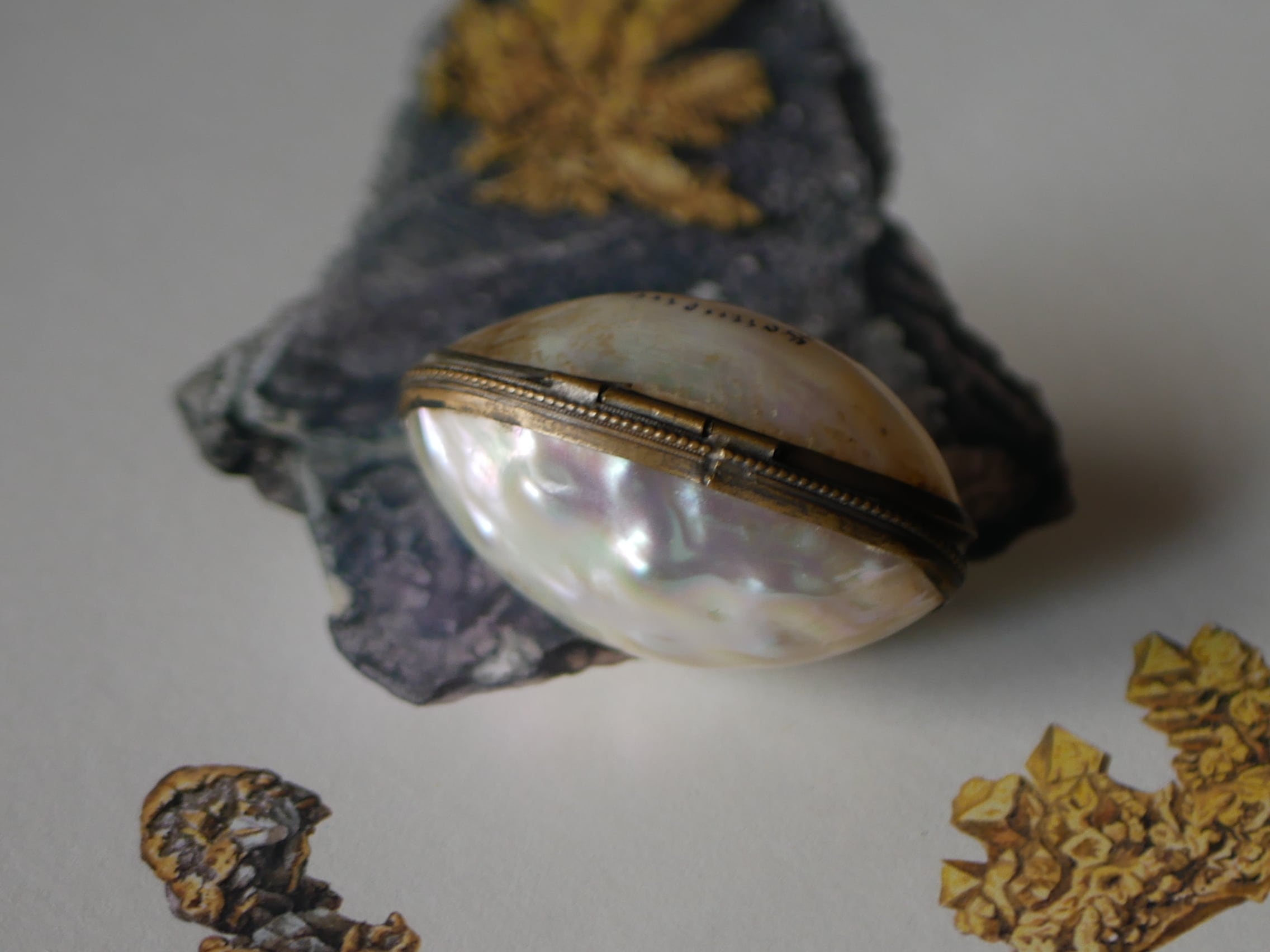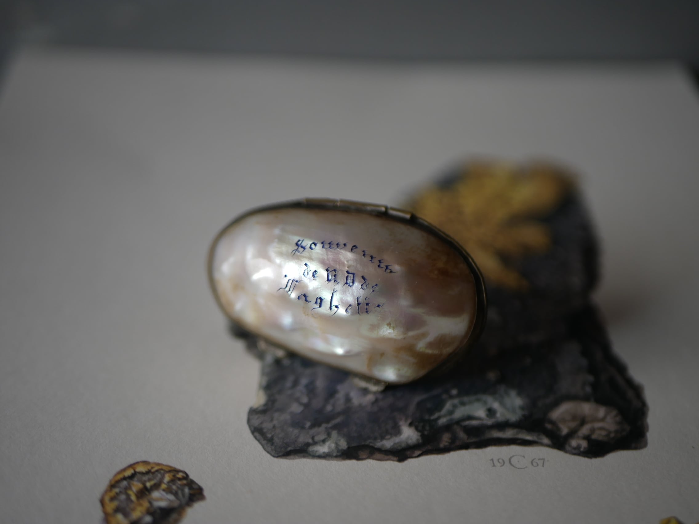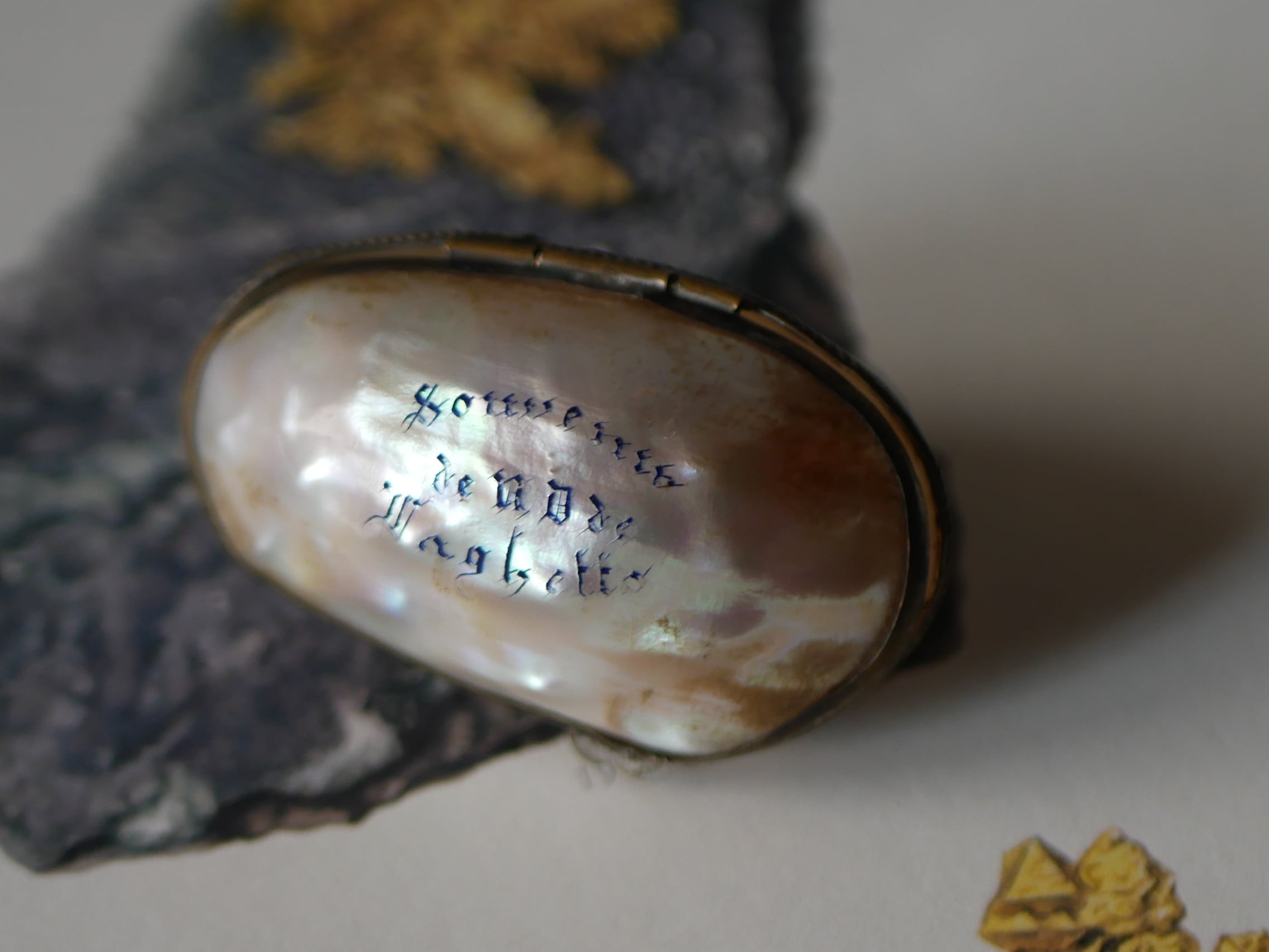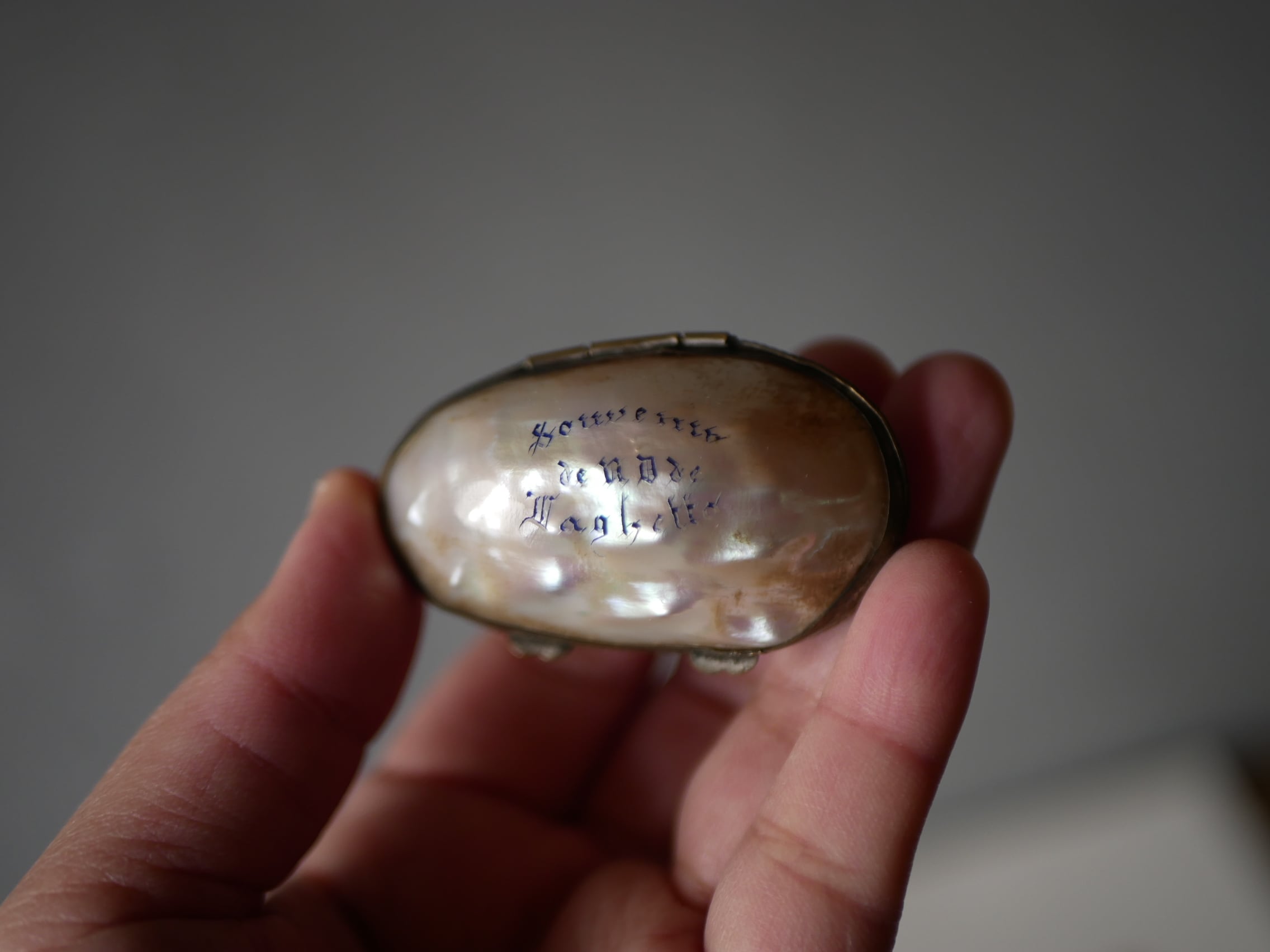 マザーオブパールに文字が入っているものは珍しいと思います。
