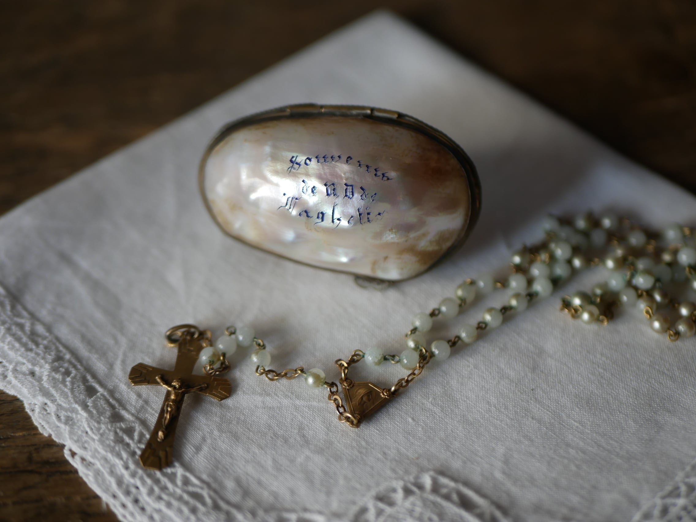 マザーオブパール ロザリオケースとロザリオ フランスアンティーク アンティークのある暮らし