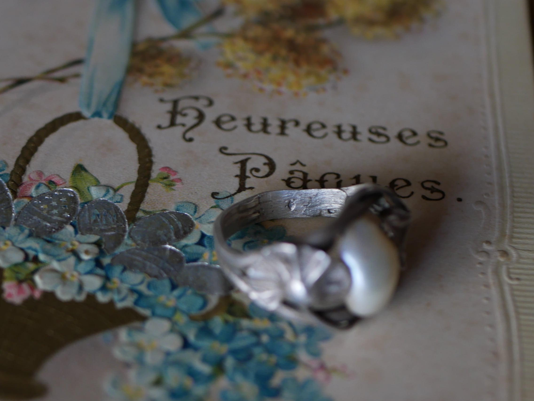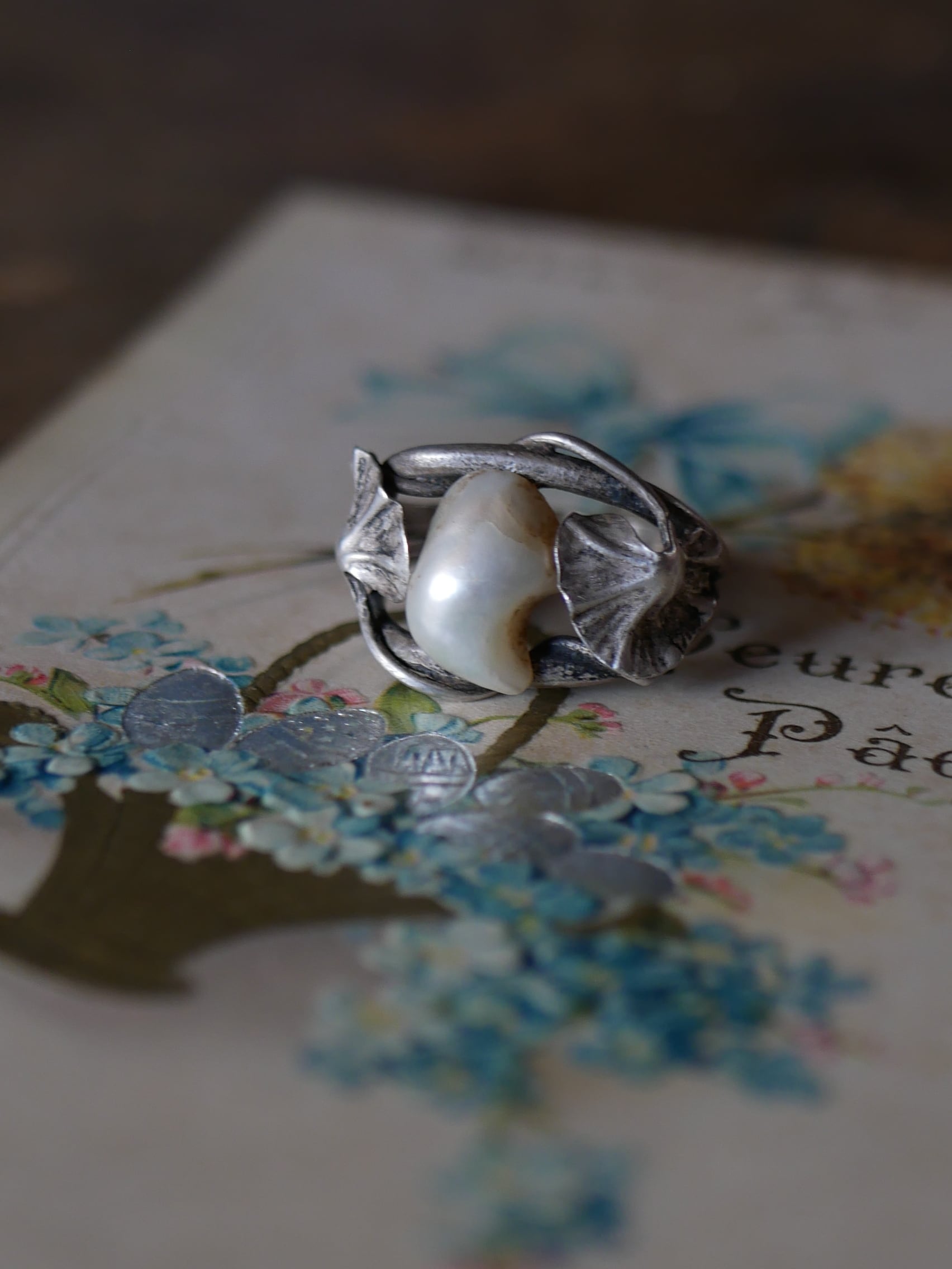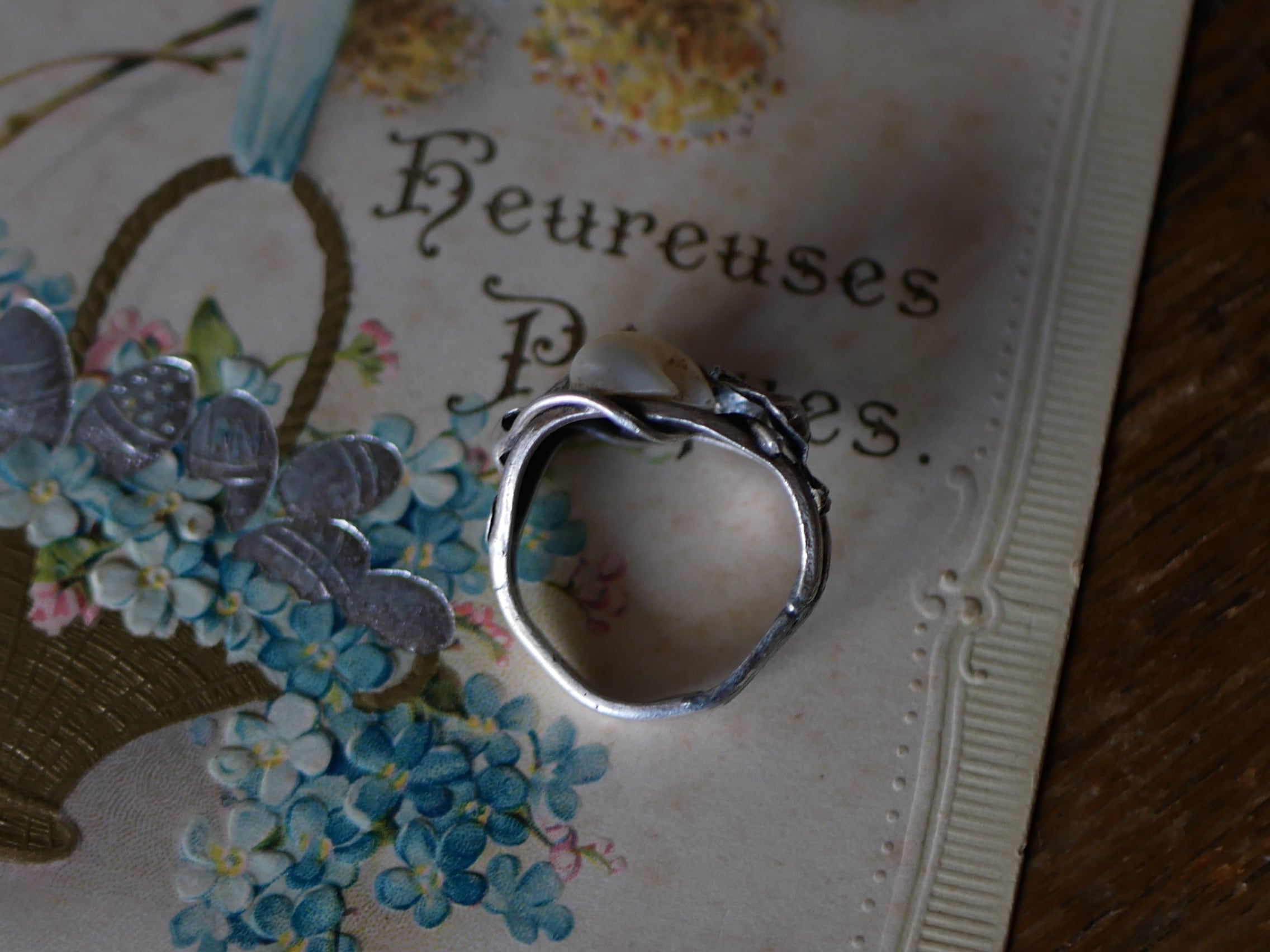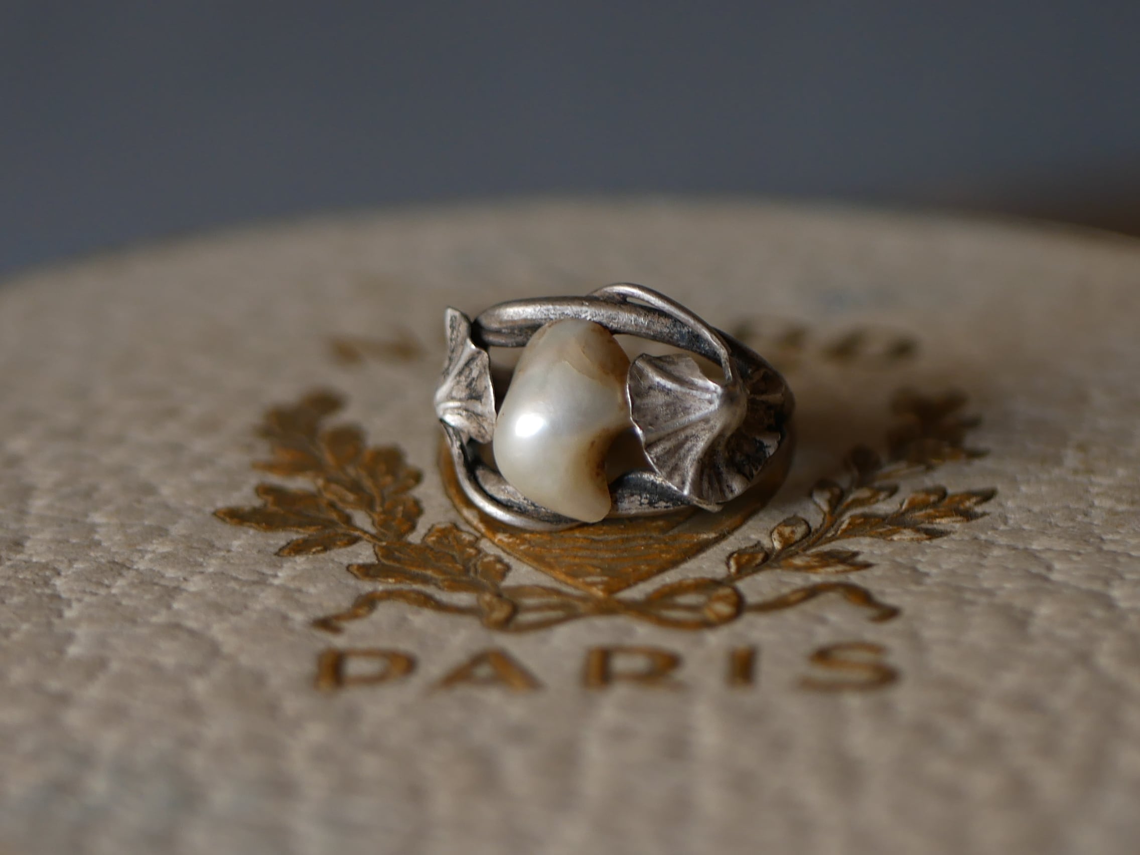 アールヌーヴォー ポール・デュモン パール シルバーリング アンティークリング フランスアンティーク