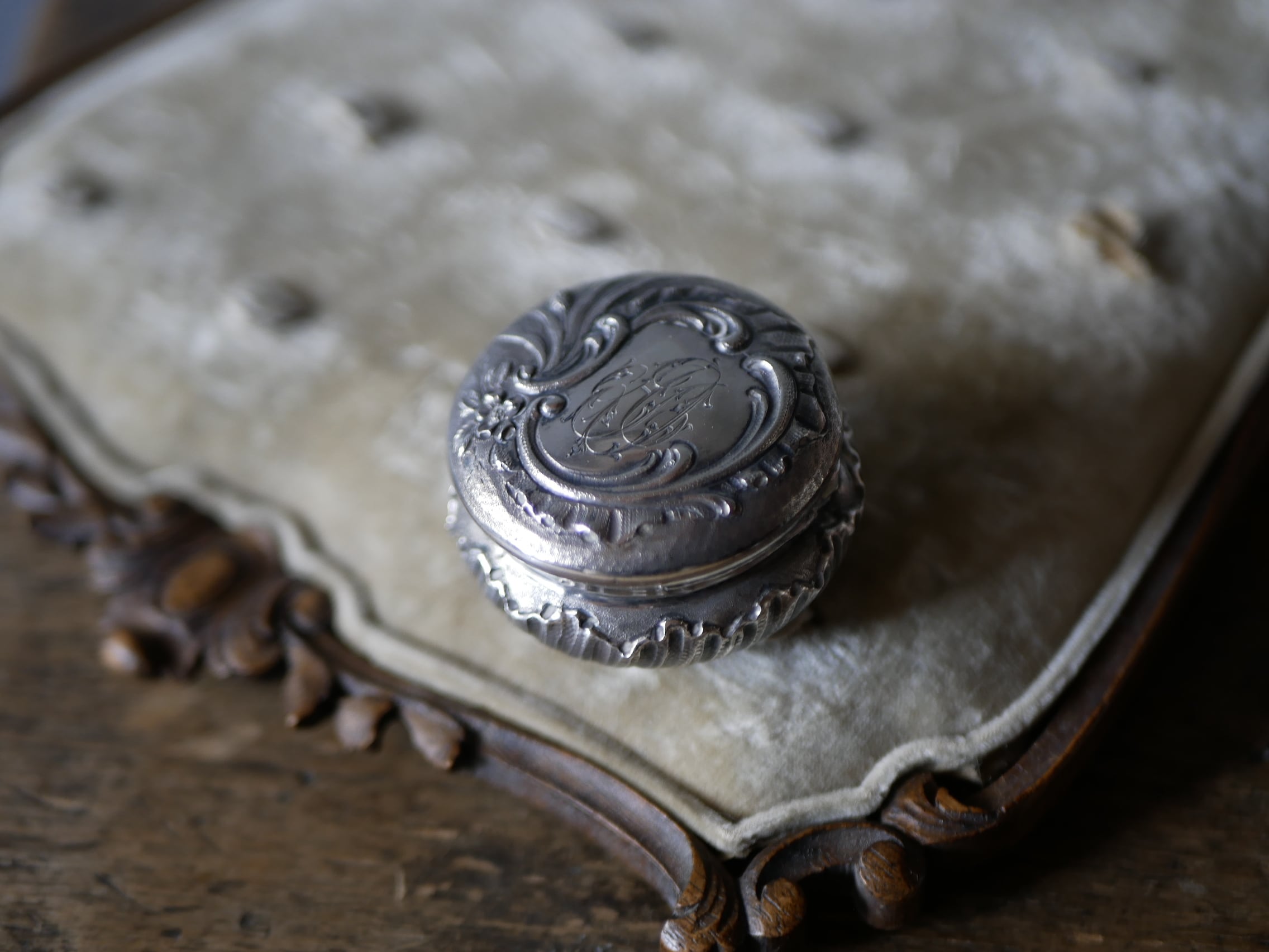 モノグラム入り 純銀 プドリエ パウダーケース フランスアンティーク アンティークのある暮らし