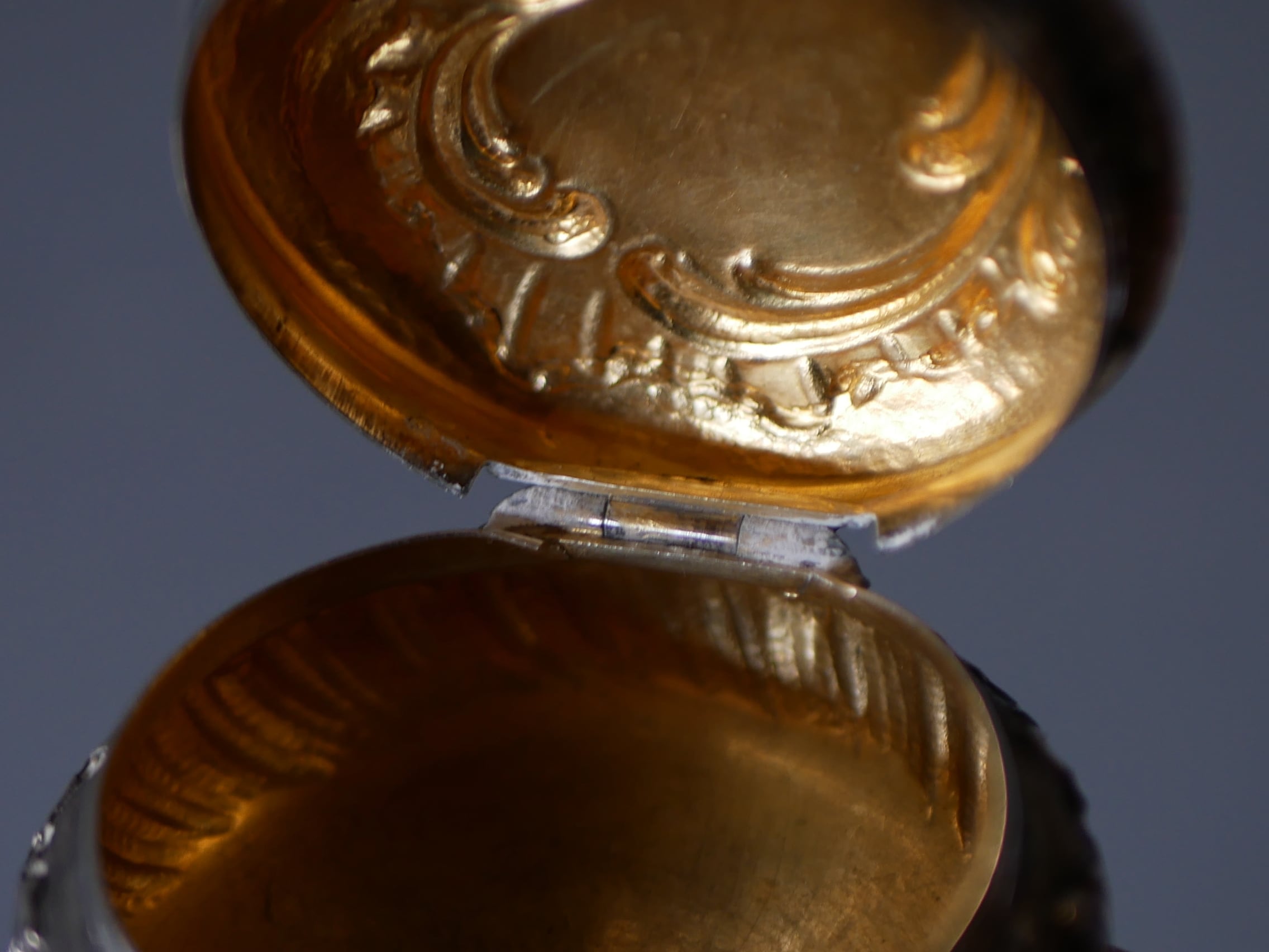 ロカイユ装飾が全体的にデザインされた存在感のあるケースです。