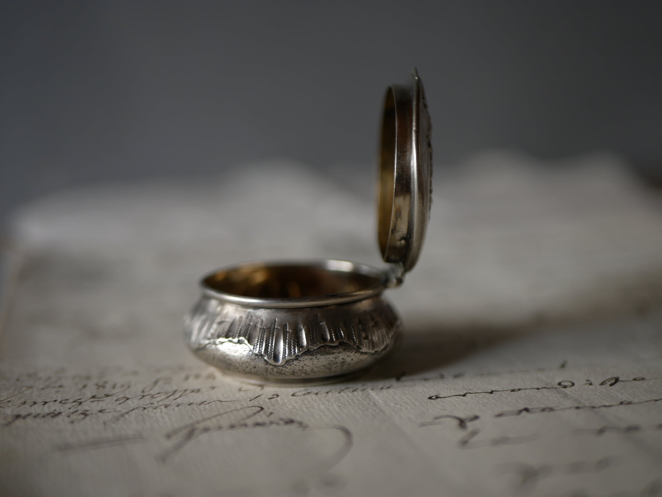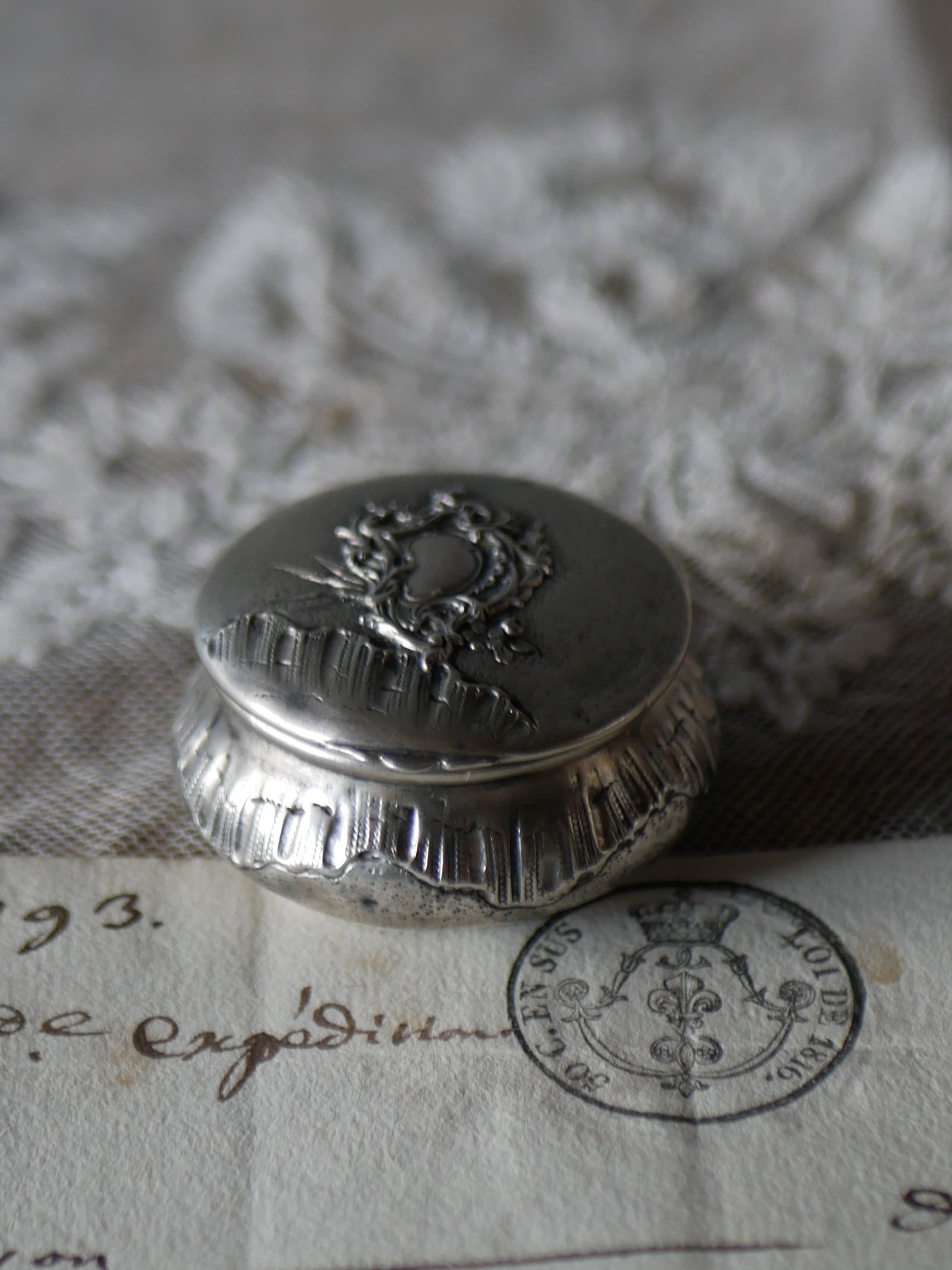 純銀製 ロカイユ プドリエ パウダーケース ピルケース フランスアンティーク