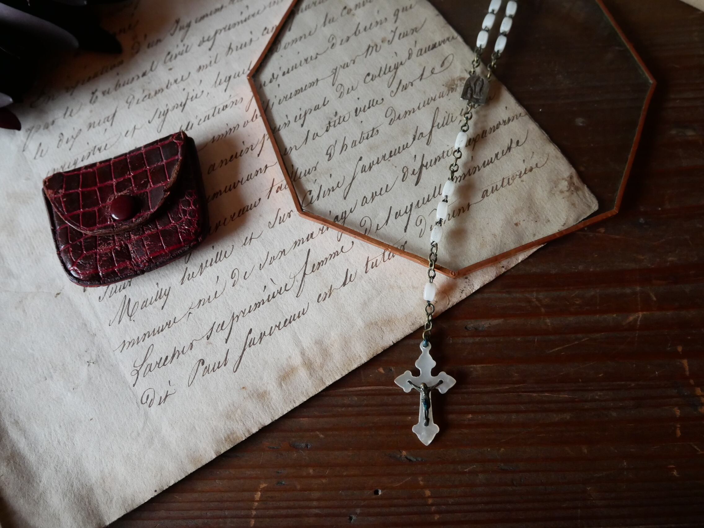 よーく見ると中心のマリア様の裏はまた違うデザインが施されています。裏は洞窟にいる少女とマリア様のようです。