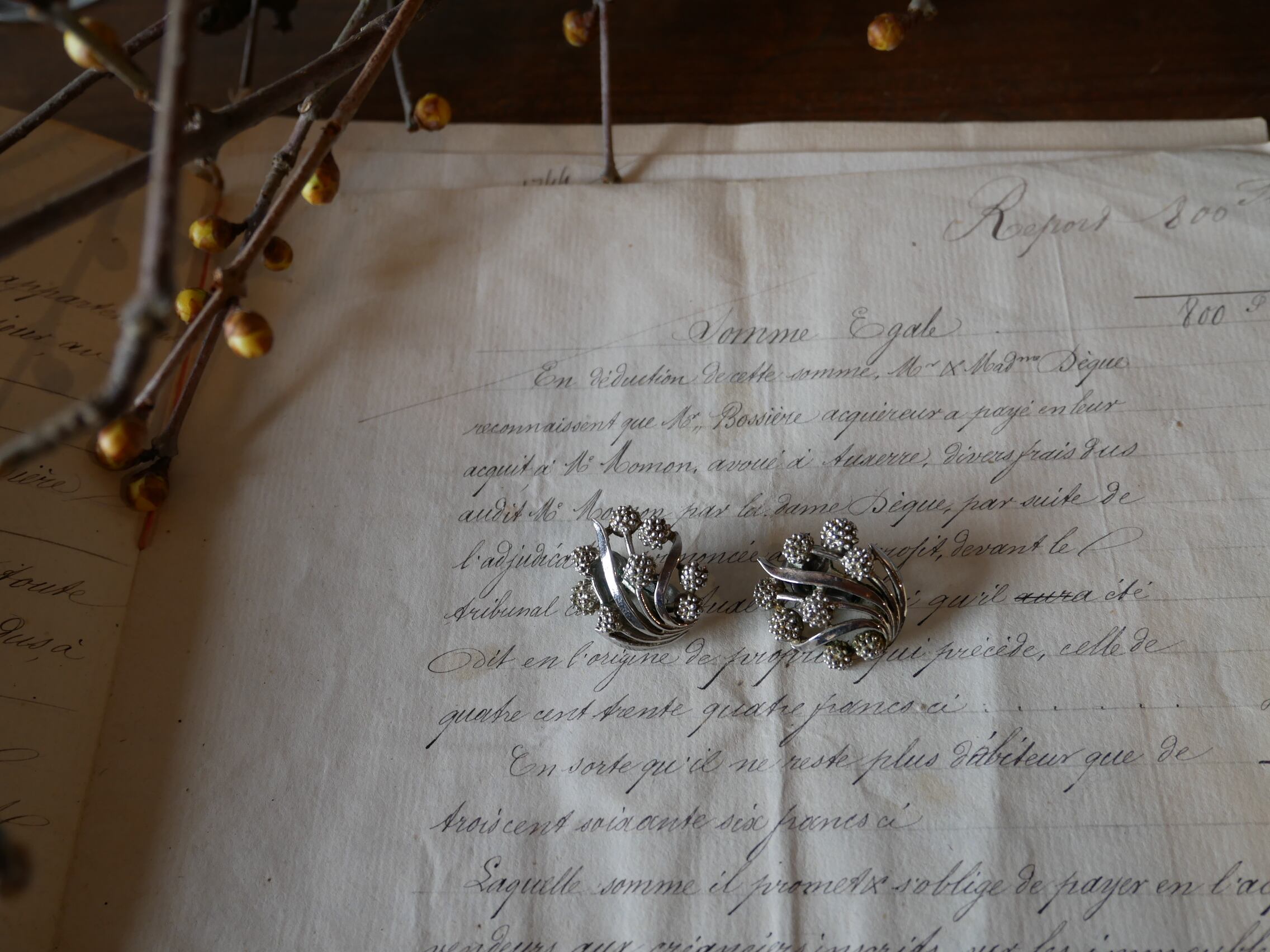 フランスアンティーク ミモザ イヤリング シルバー