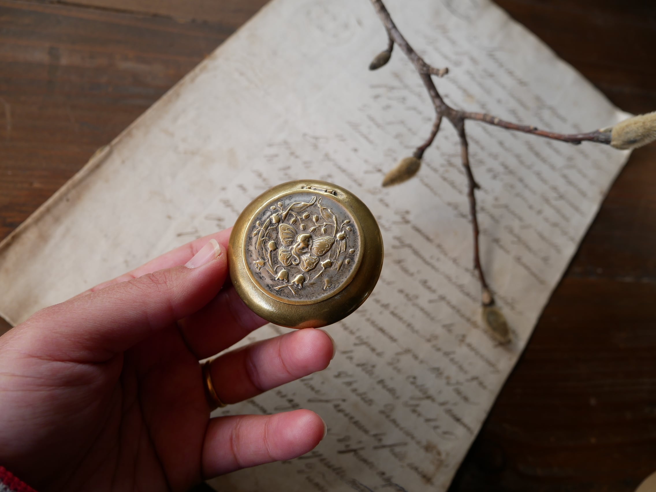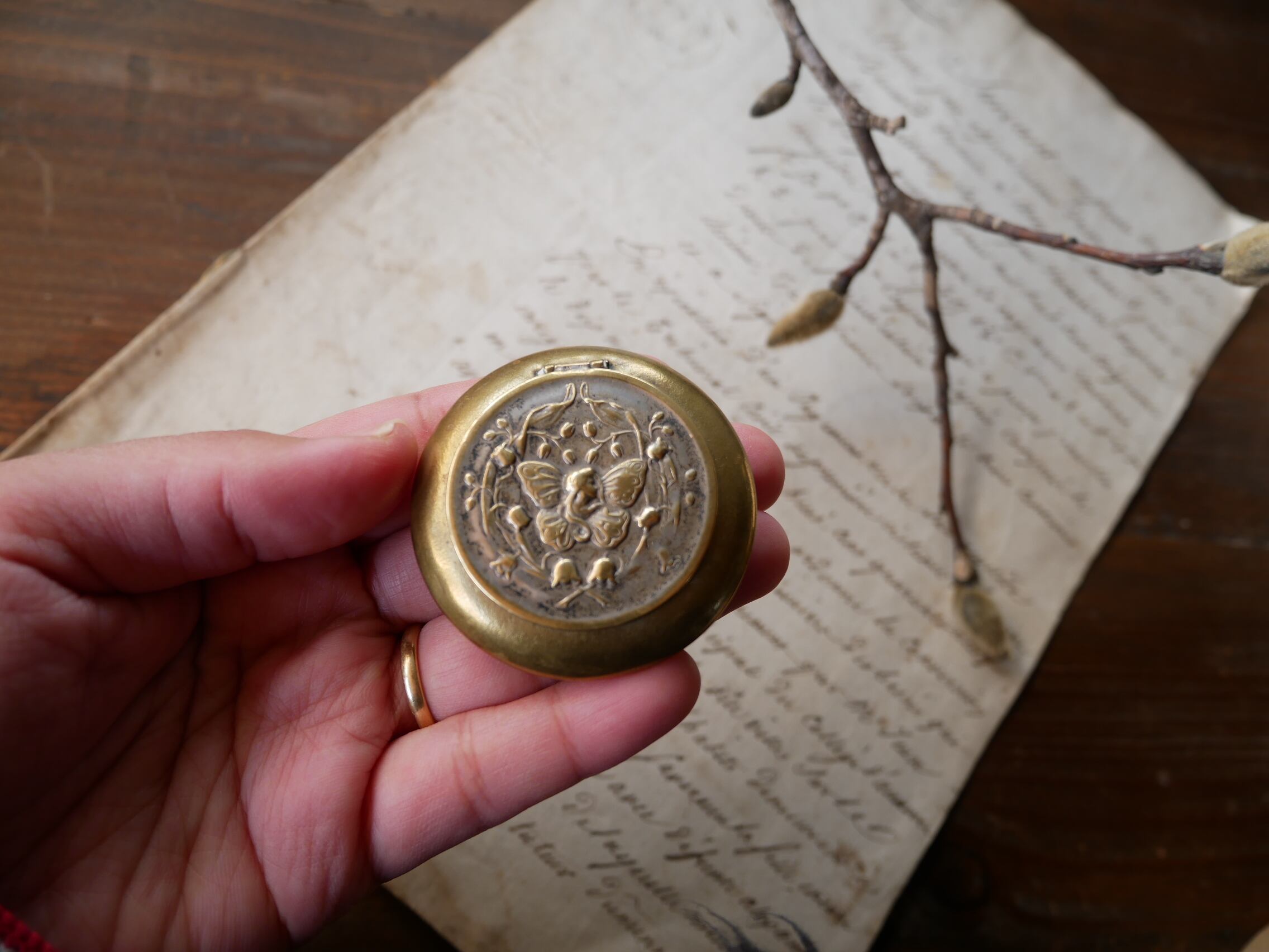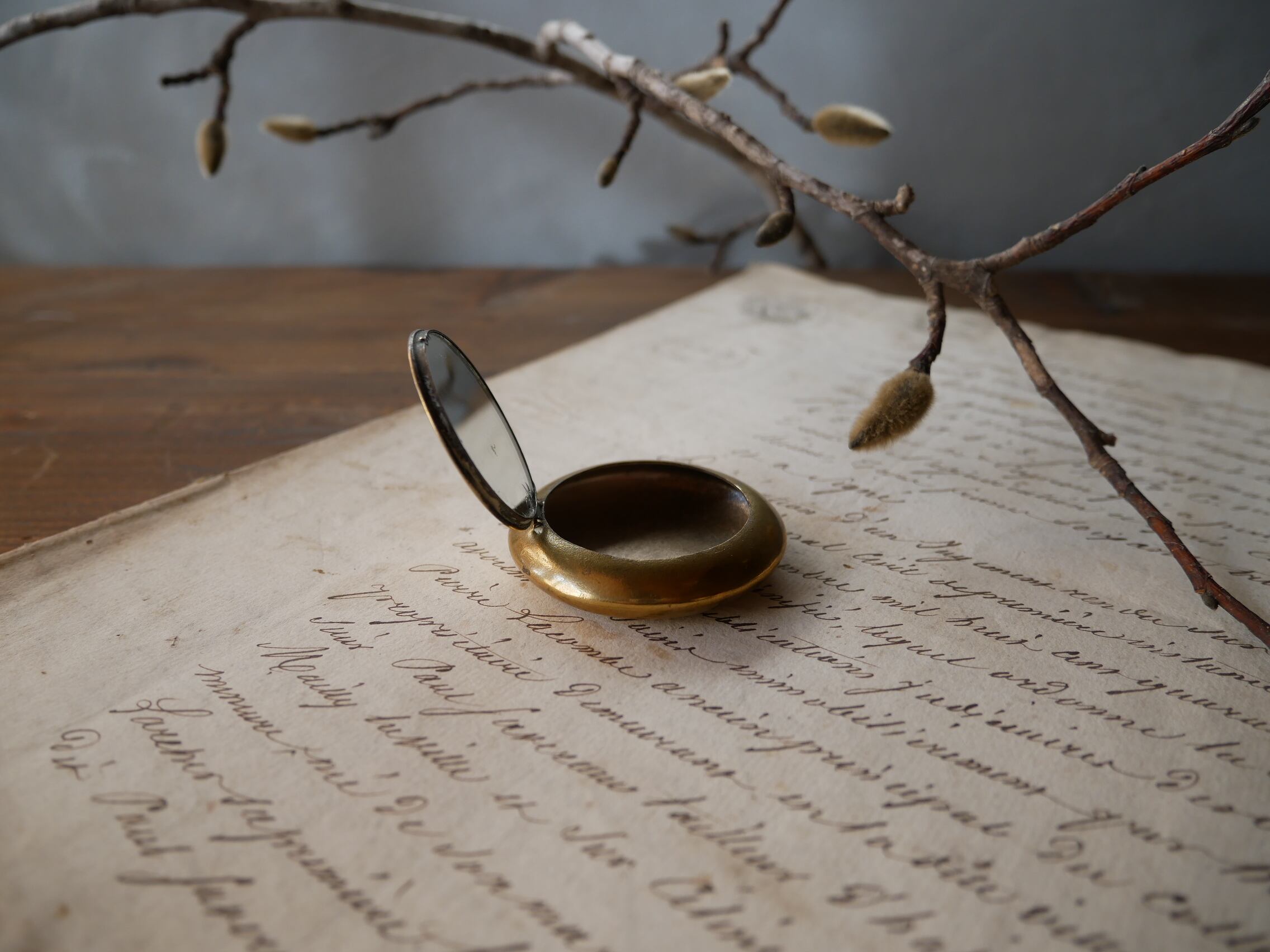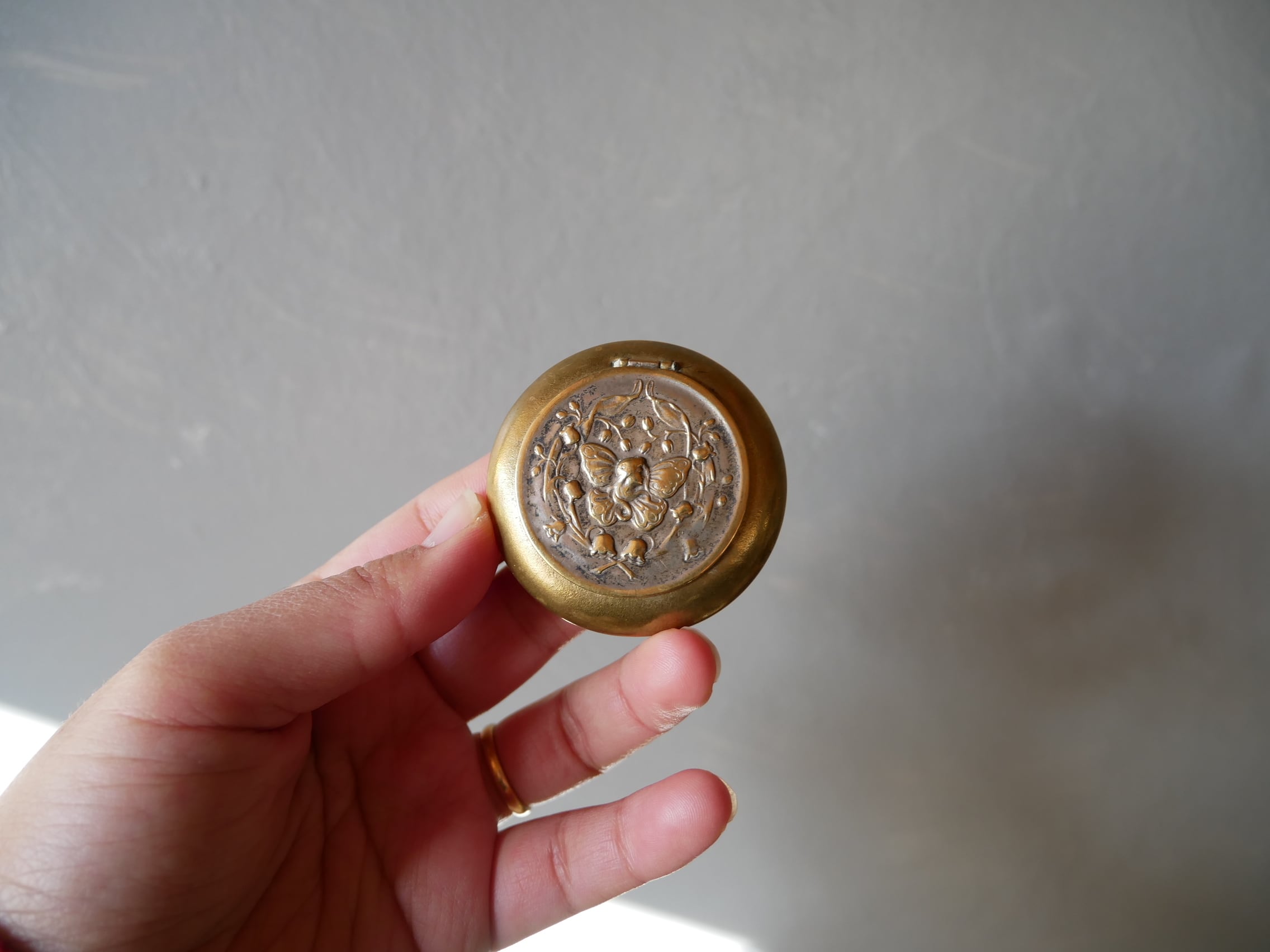 フランスアンティーク パウダーケース バタフライ すずらん コンパクトミラー