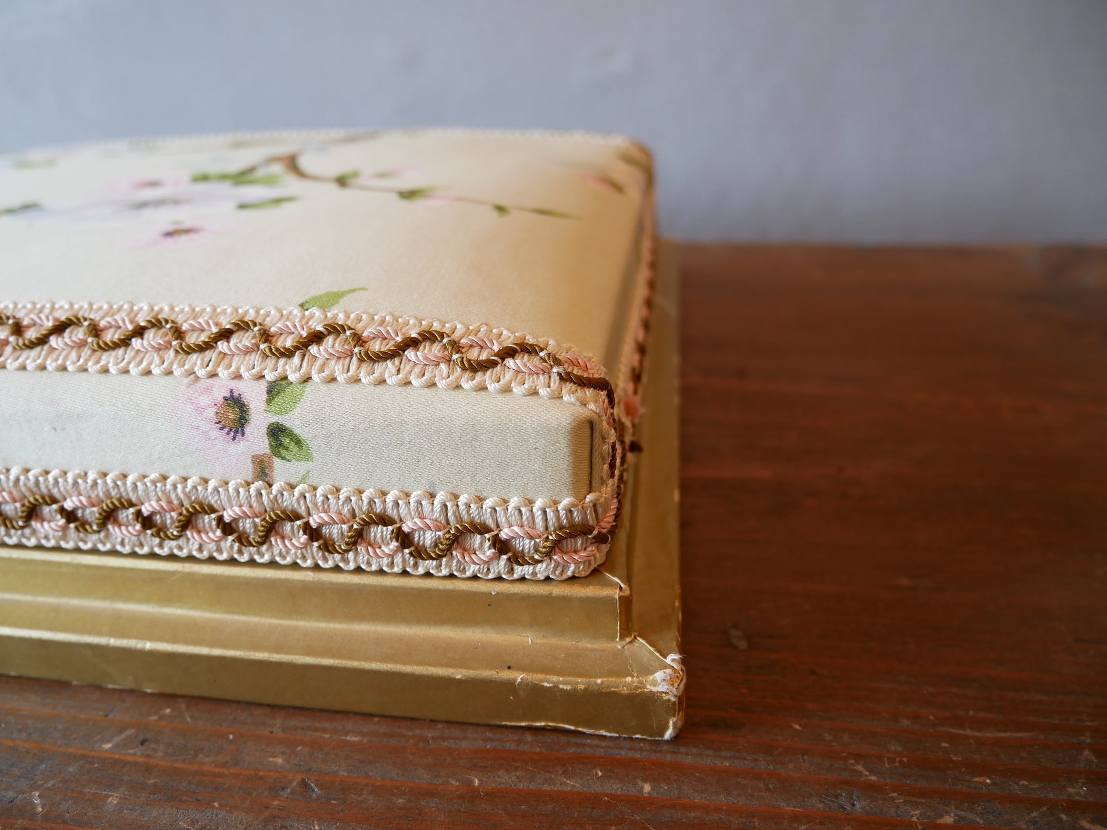蓋の表面はレースと光沢感あるクロスでつくられています。