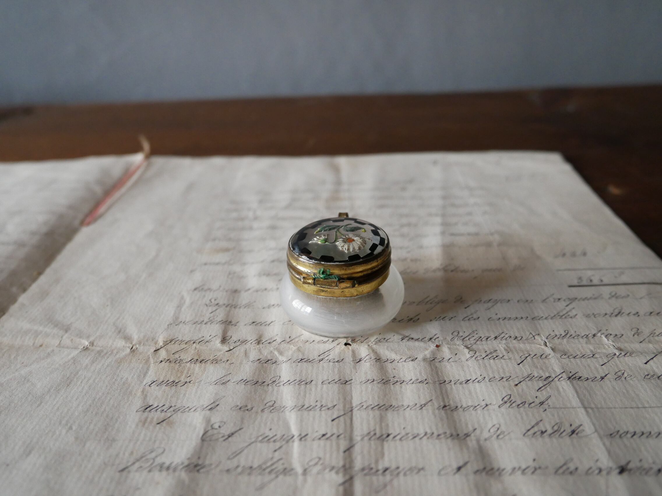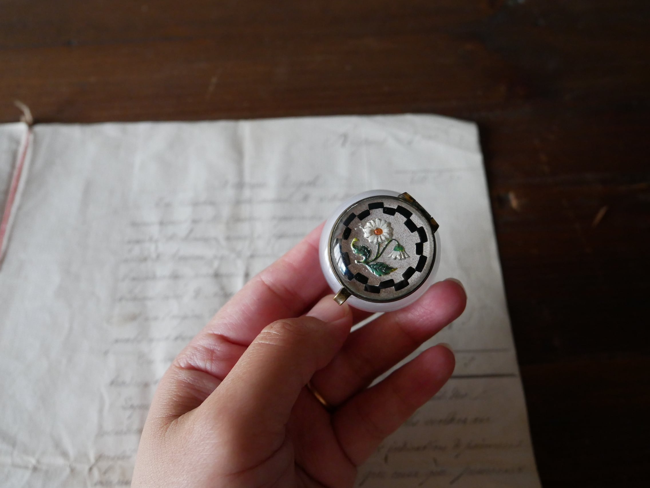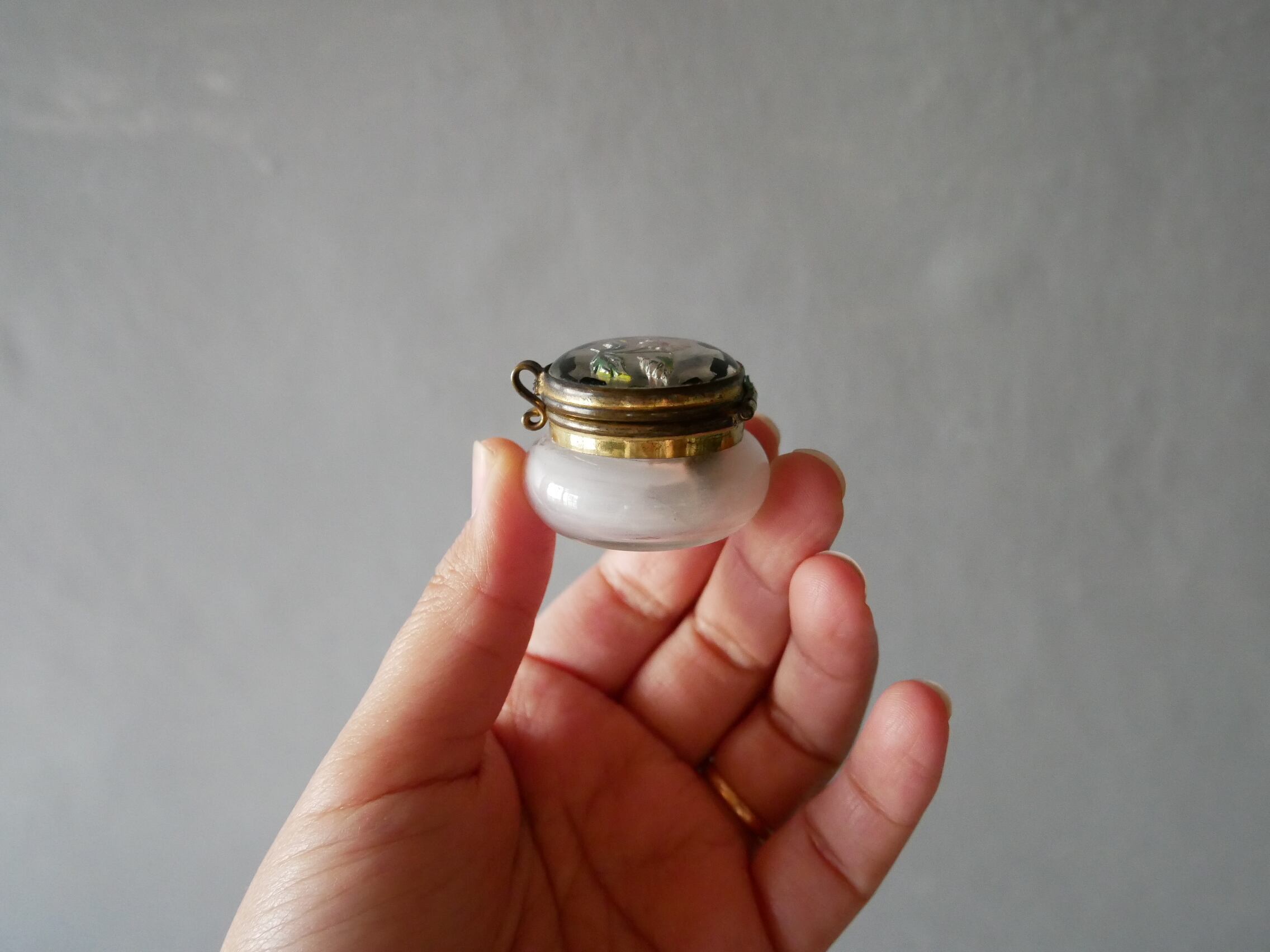 小さな曇りガラスのケース コンパクトミラー フランスアンティーク