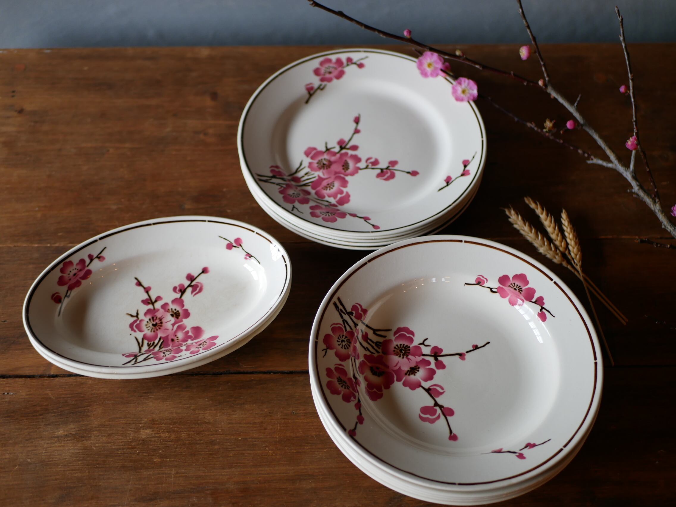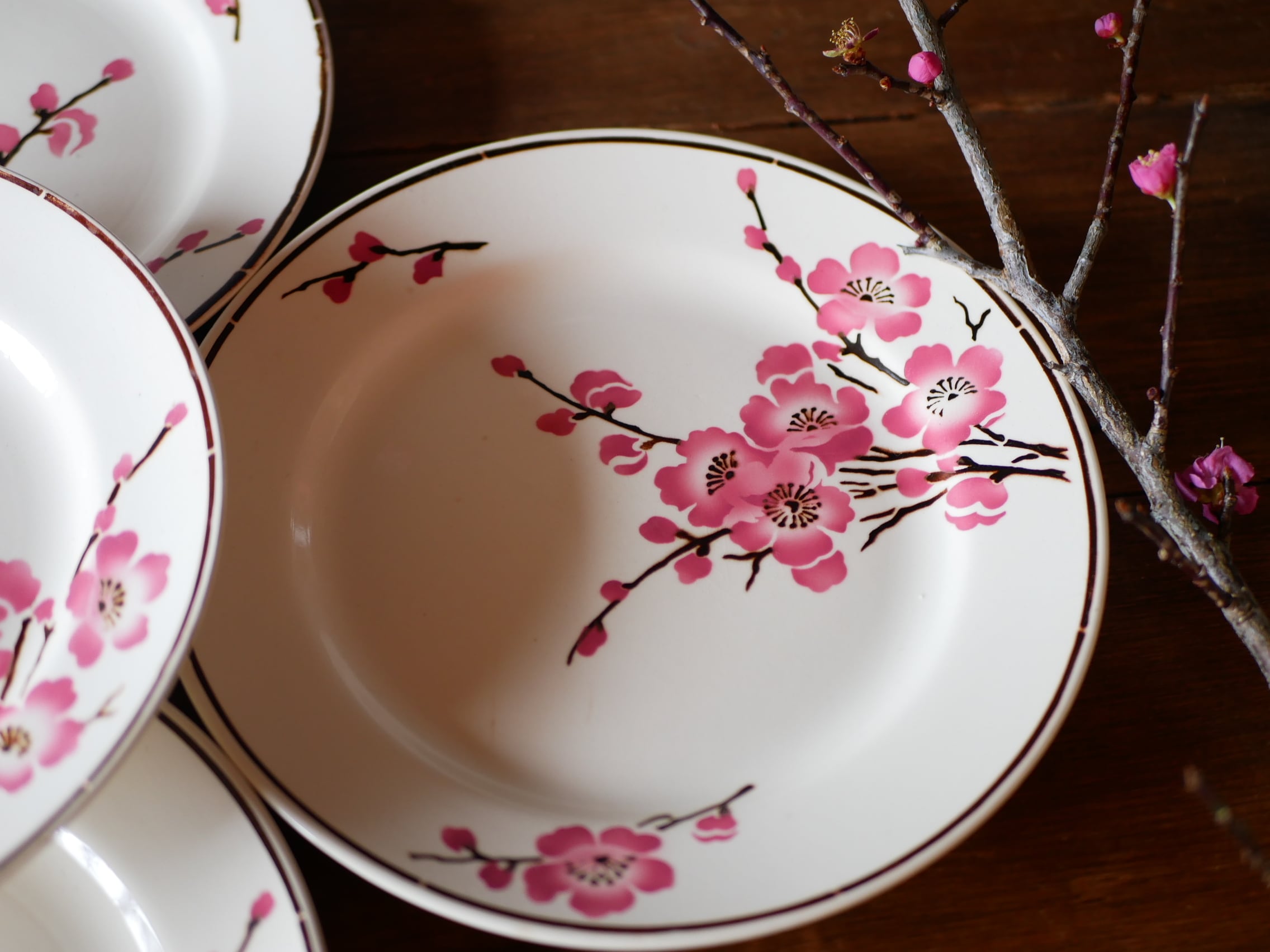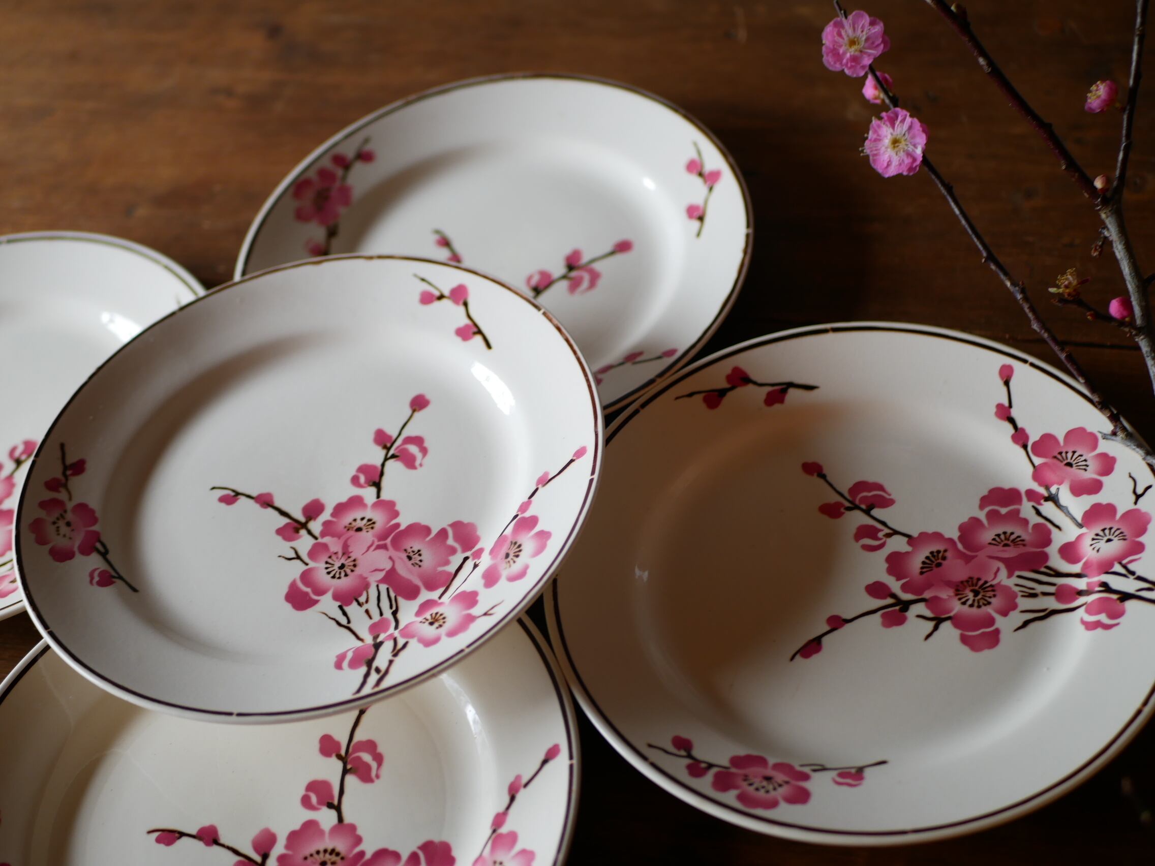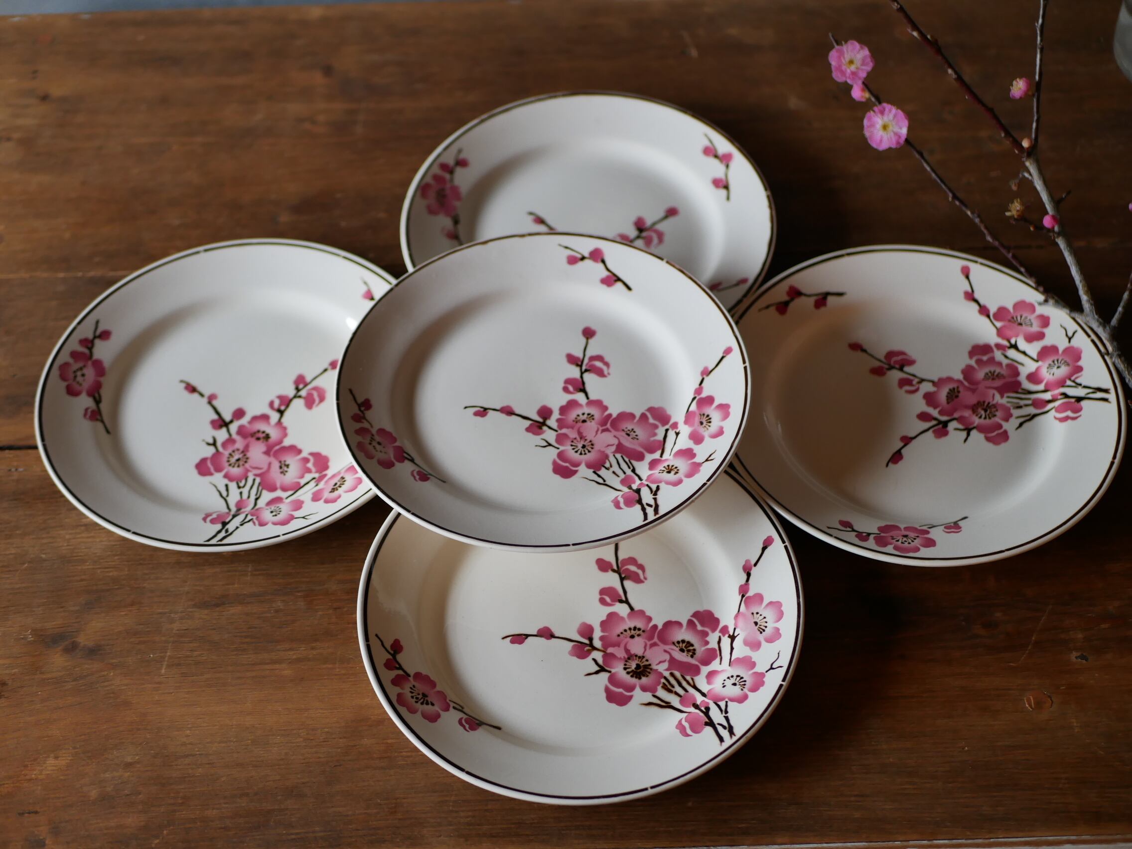 在庫→1 Fleurs de pêche 【桃の花】平皿 フランスアンティーク