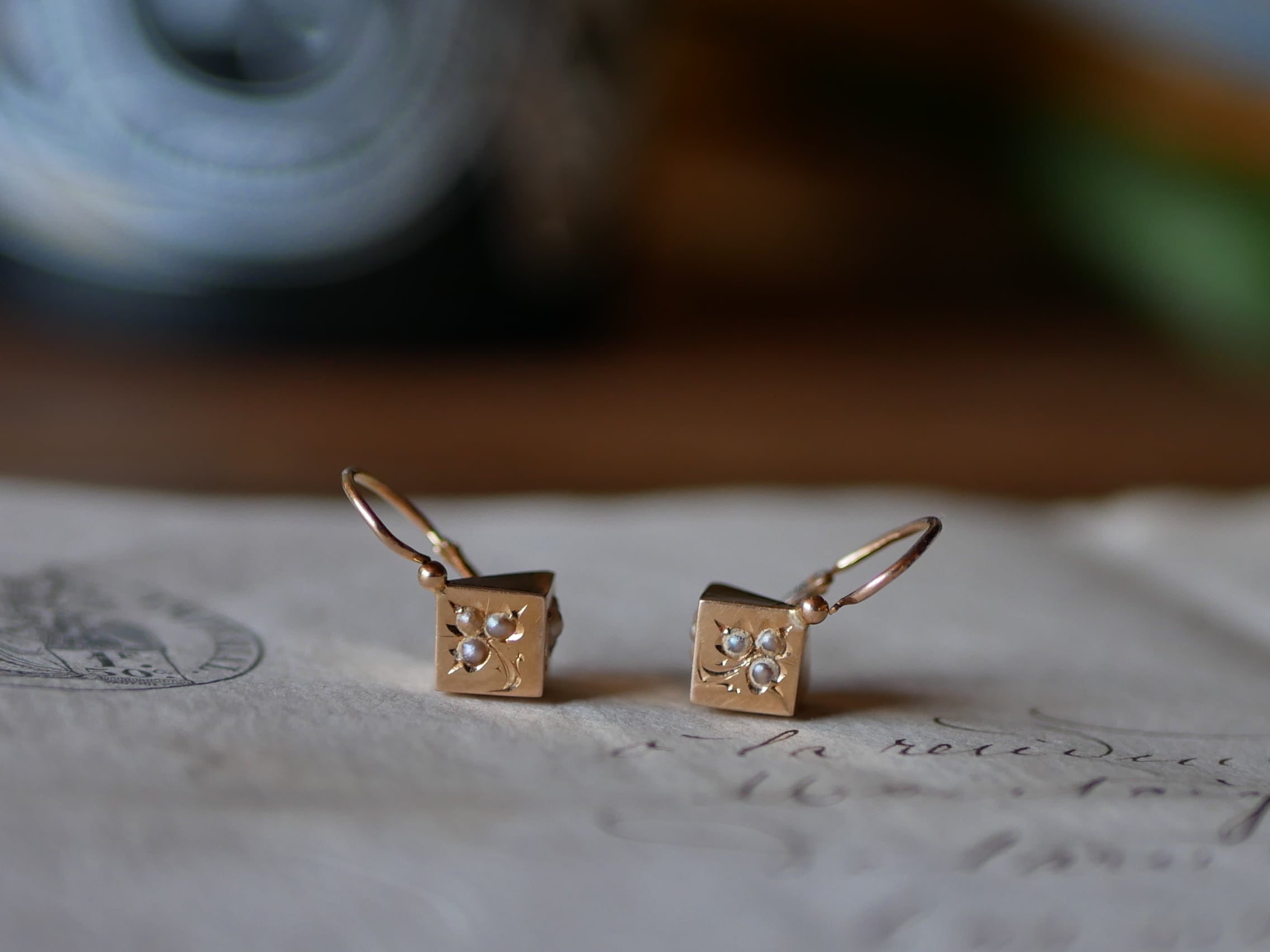 FE-05 シャムロックのサイコロピアス 18K フランスアンティーク