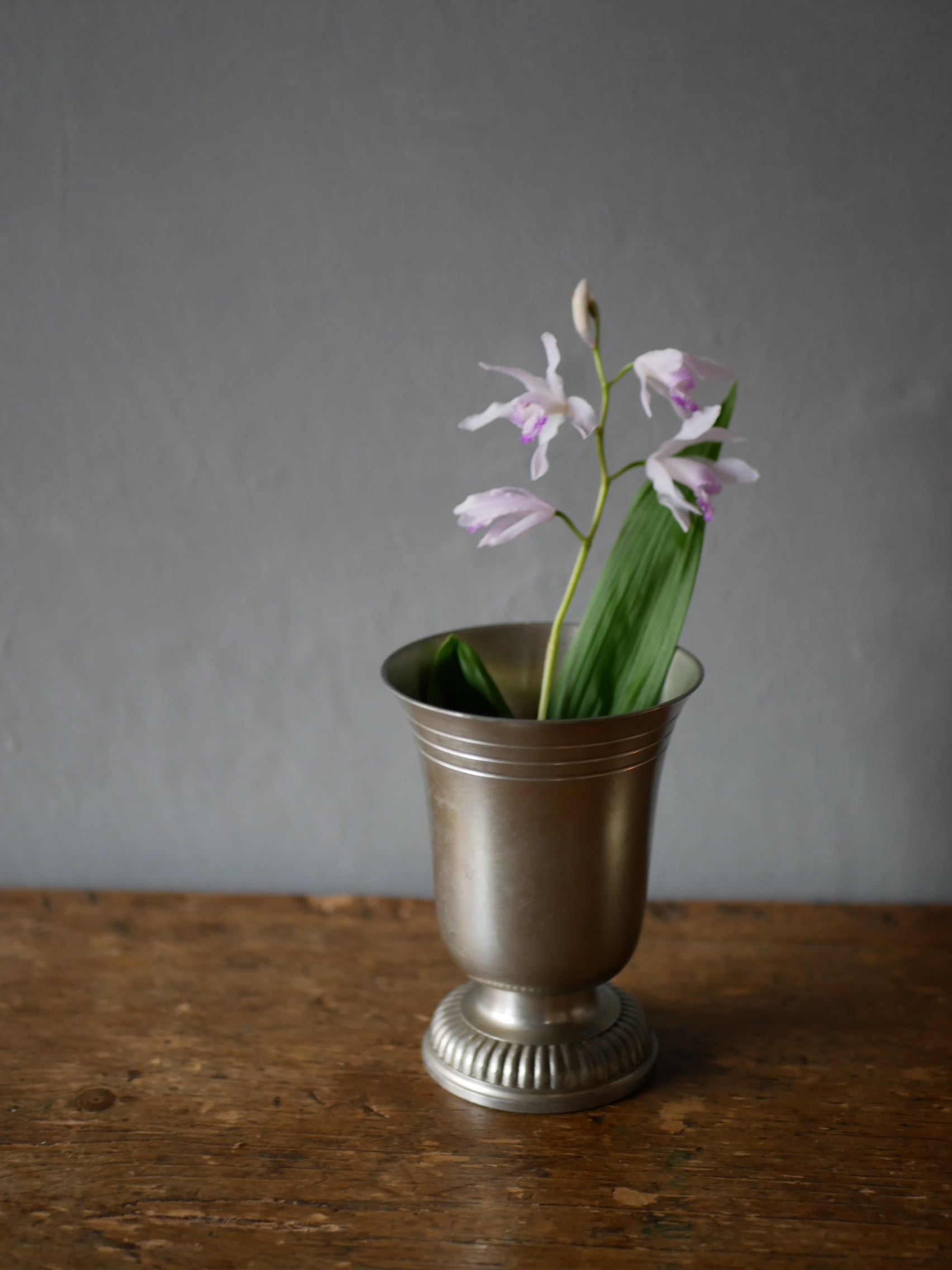 フラワーベースにちょうど良いピューター製のゴブレットです。