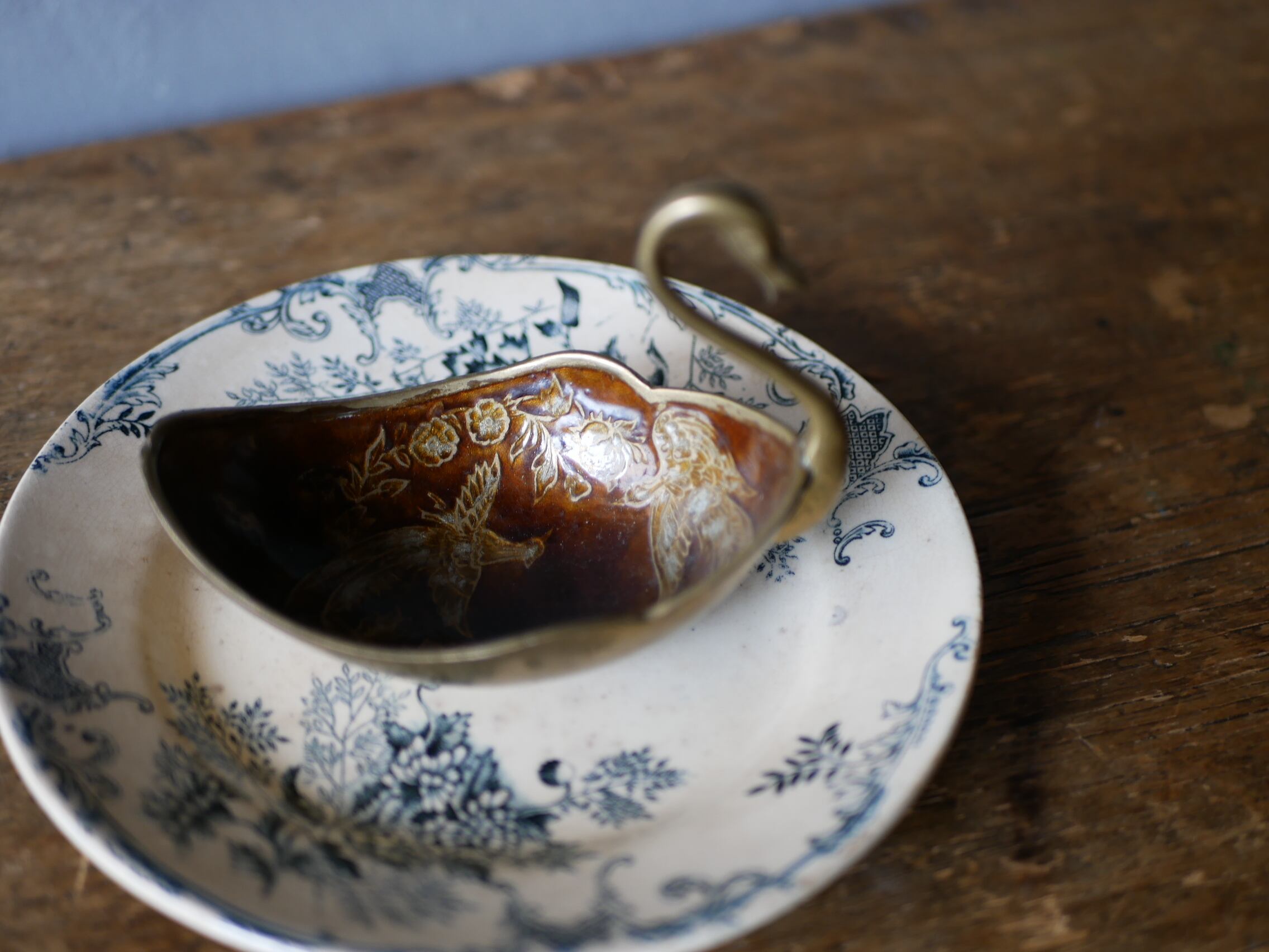 内側にはシノワズリな鳳凰と植物がブラウンベースに描かれています。